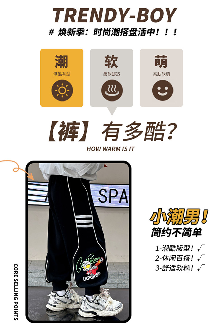 Children's Ultraman Clothing Boys' Fleece Pants 2026 New Thickened One-Piece Fleece Outerwear Sports Trousers