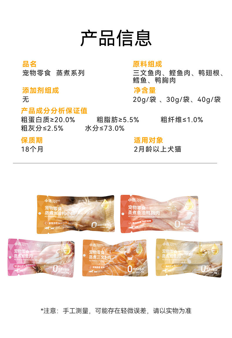 Food Taste Raw Salmon 20g,Original Cut Cod 20g,Original Cut Bonito 20g,Original Cut Duck Breast 30g,Whole Duck Shank 40g