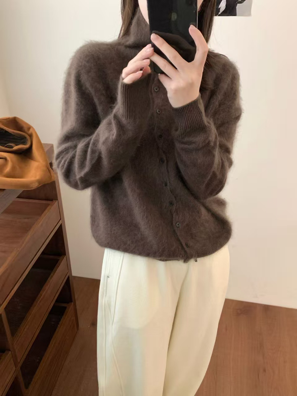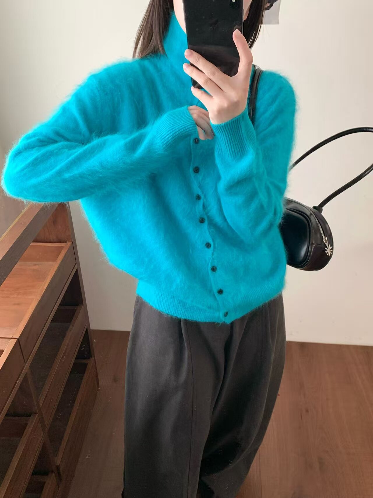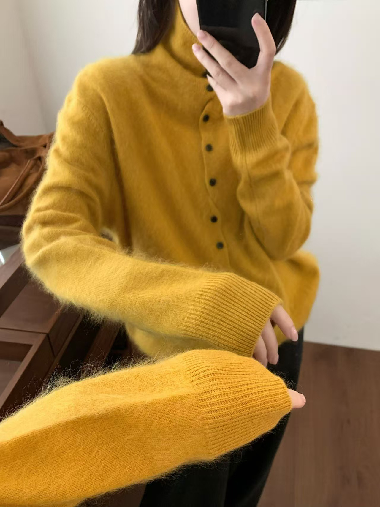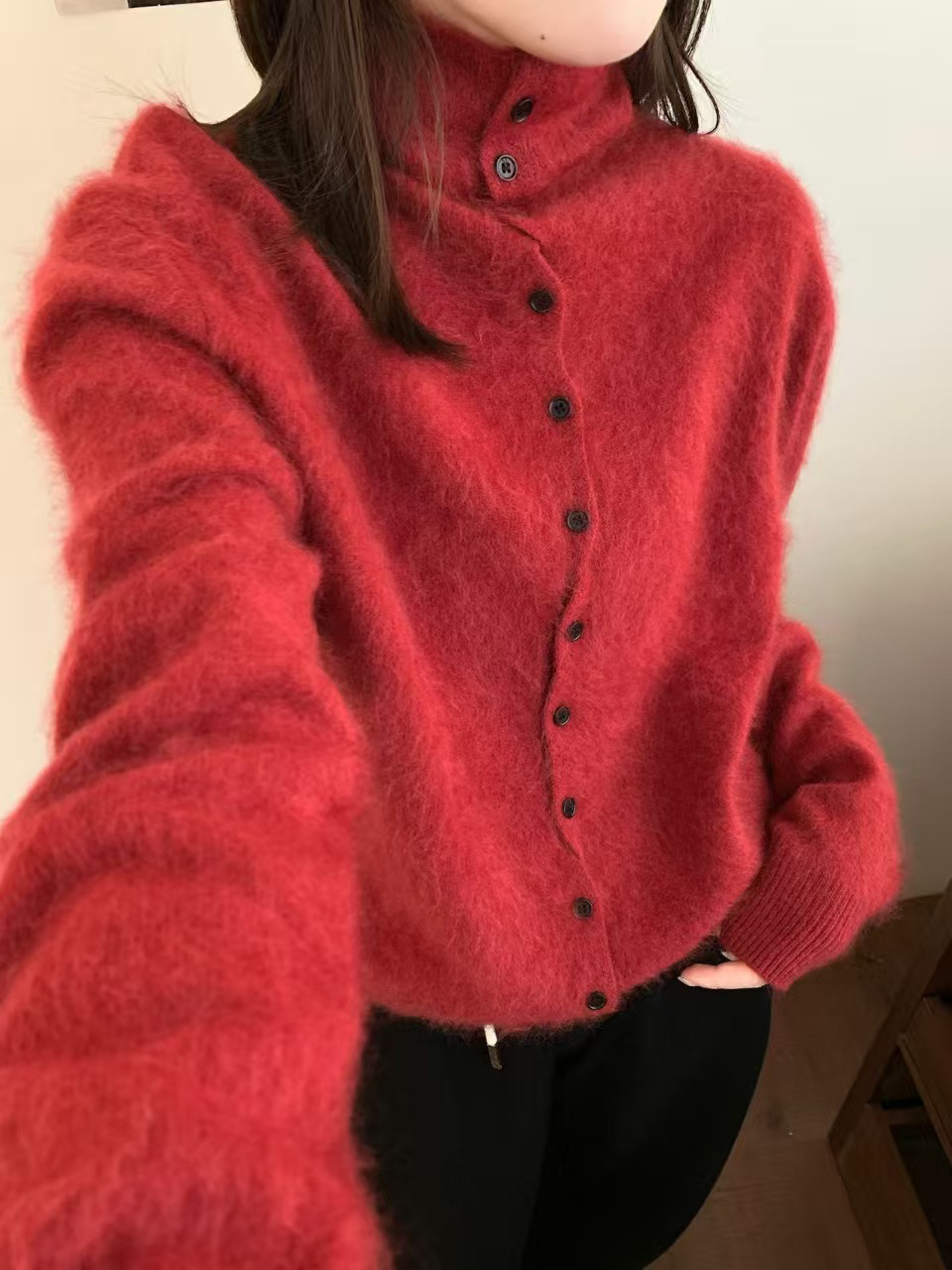 Long-Haired Turtleneck Wool Sweater for Women in Winter, Unique Single-Breasted Long-Sleeved Soft Knitted Cardigan, Loose Sweater