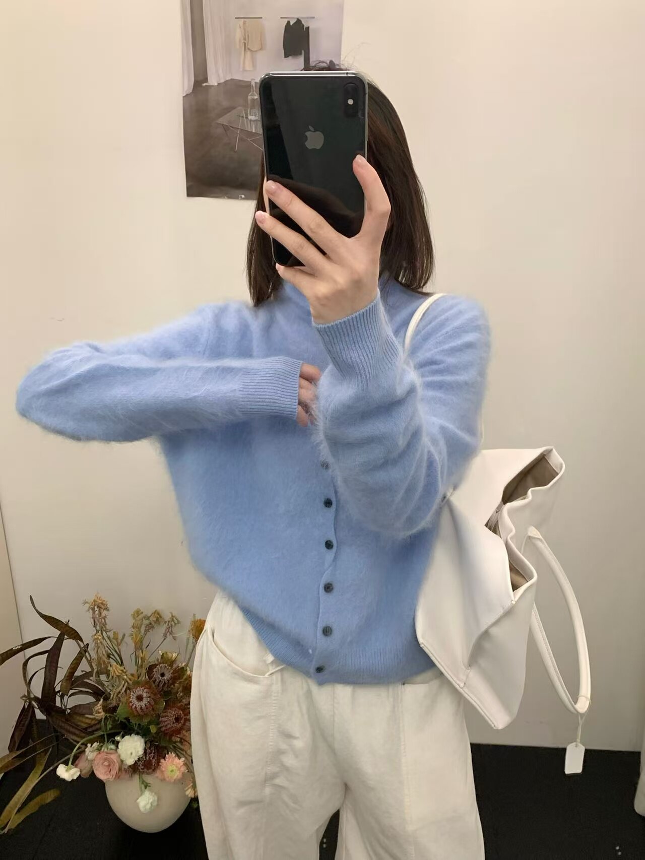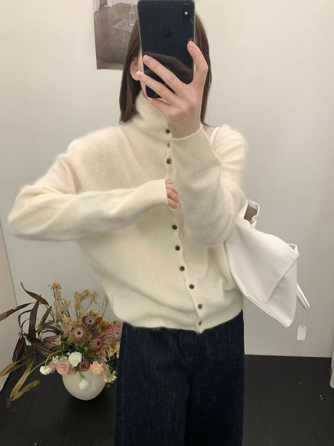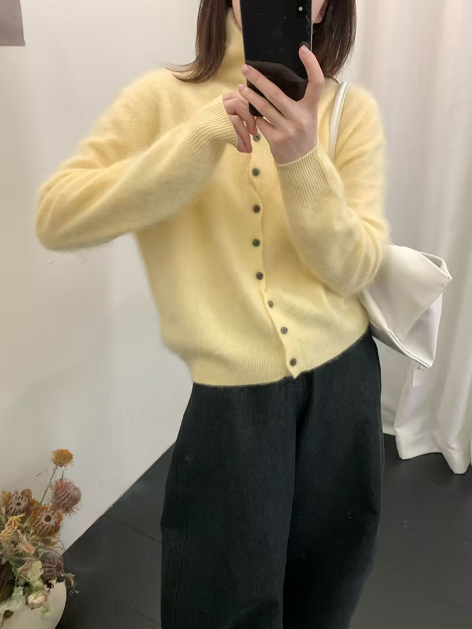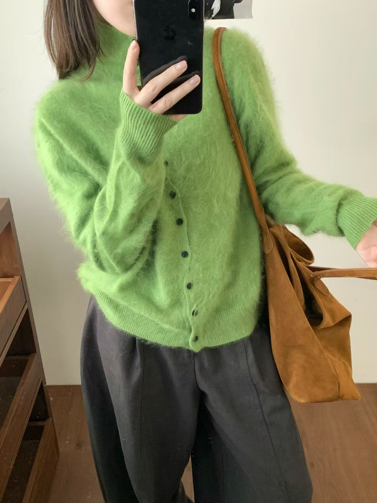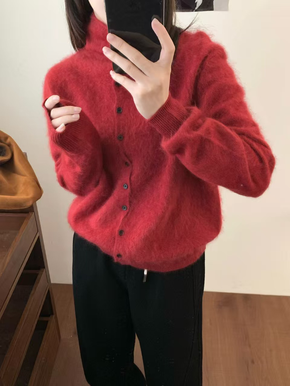 Long-Haired Turtleneck Wool Sweater for Women in Winter, Unique Single-Breasted Long-Sleeved Soft Knitted Cardigan, Loose Sweater