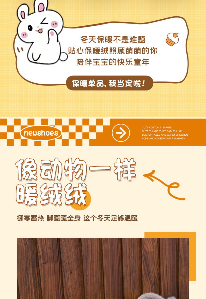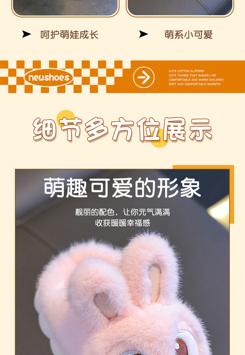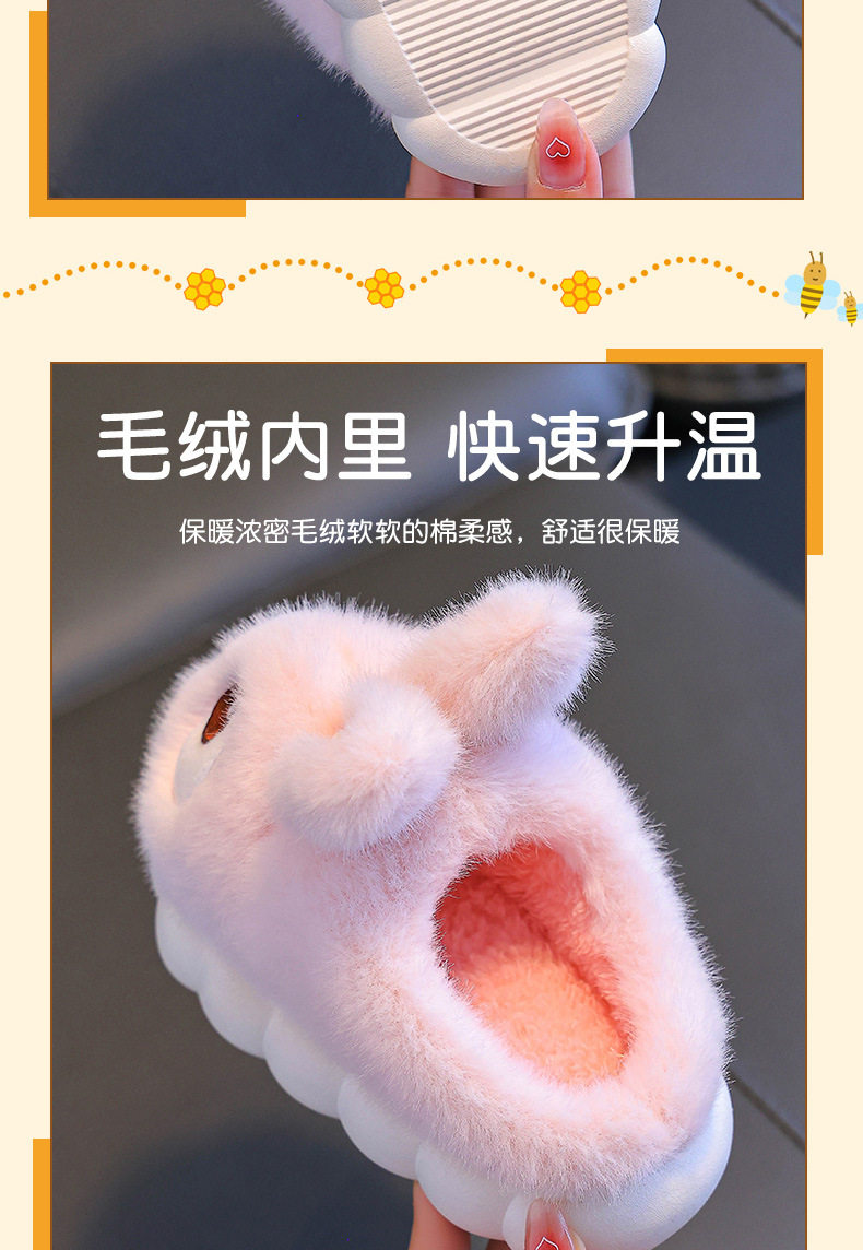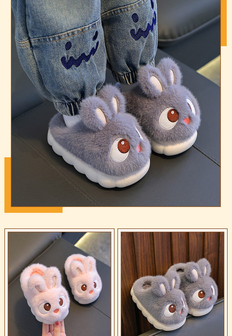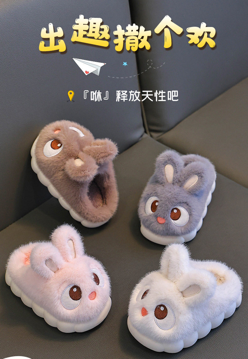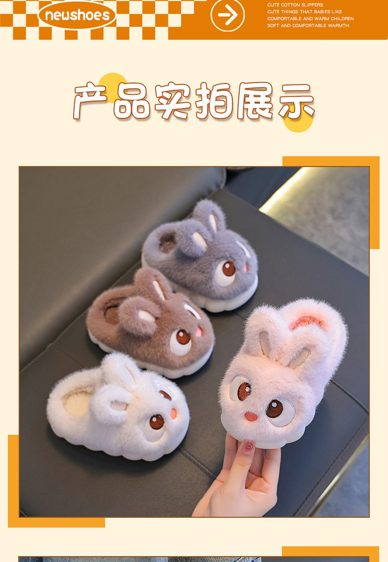 Children's Cotton Slippers for Girls, Winter Cute Rabbit Design, Warm and Fleece-Lined, Parent-Child Matching, Boys' Non-Slip Baby Cotton Shoes, Furry Shoes