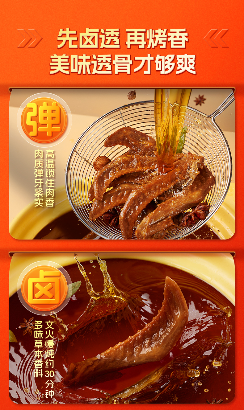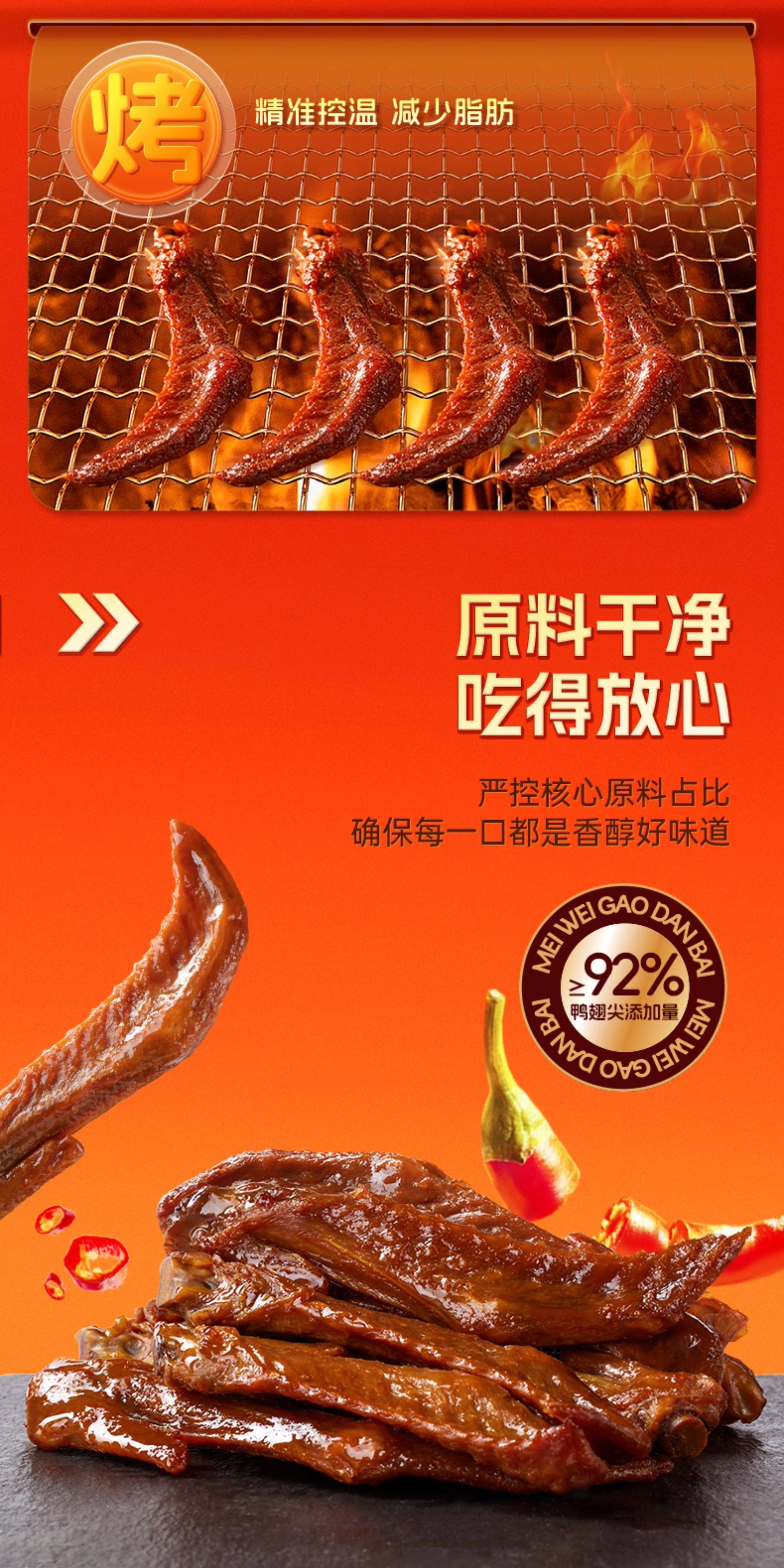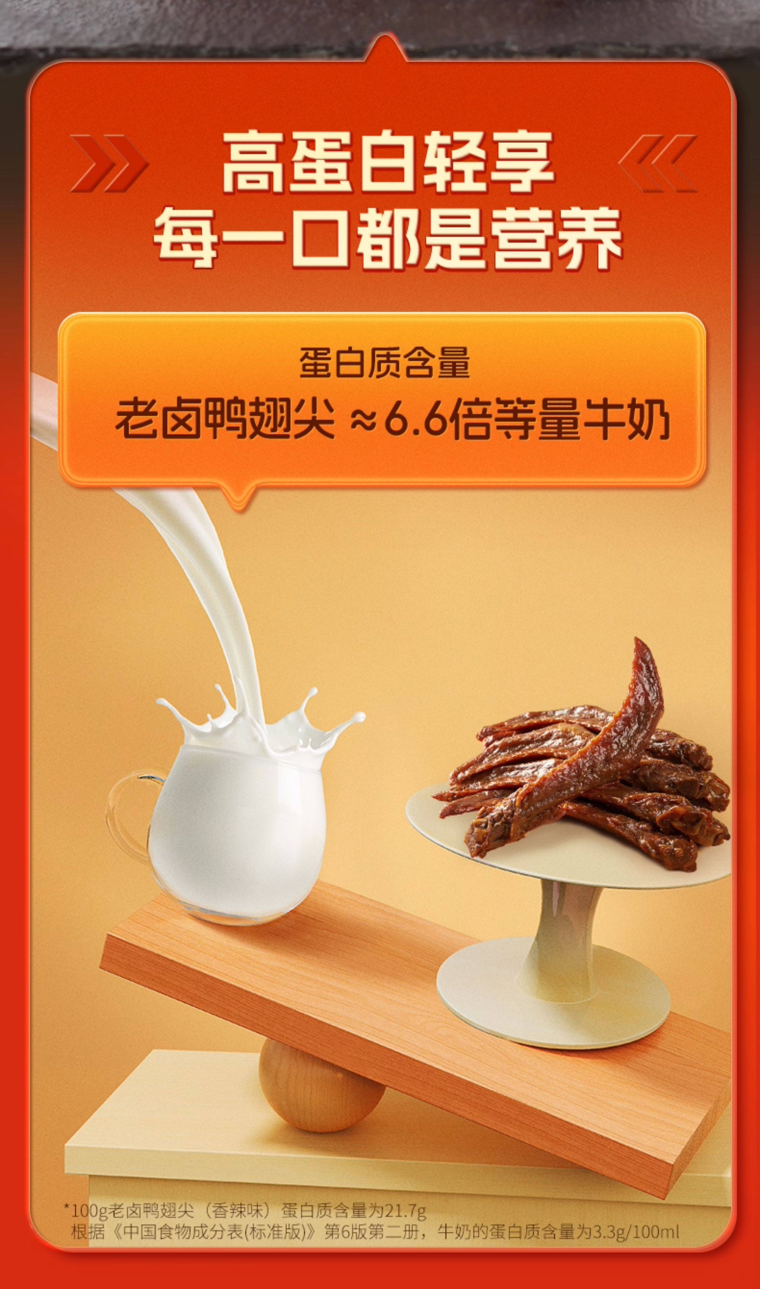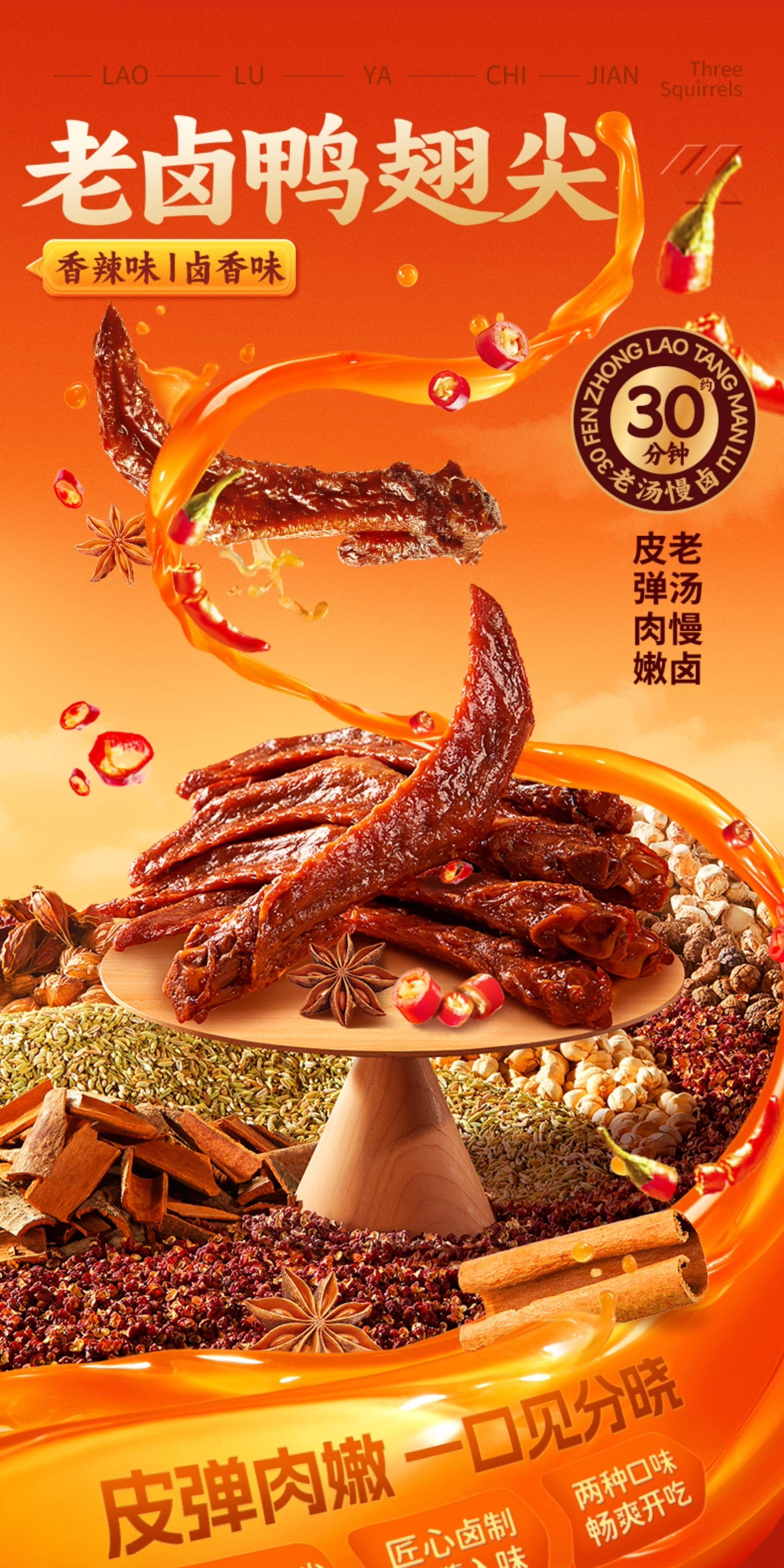 Three Squirrels Braised Duck Wing Tips 205g, Slow-Braised with Traditional Broth, Chewy Skin, Tender Meat, High Protein, Satisfying Snack, Ready-To-Eat Snack