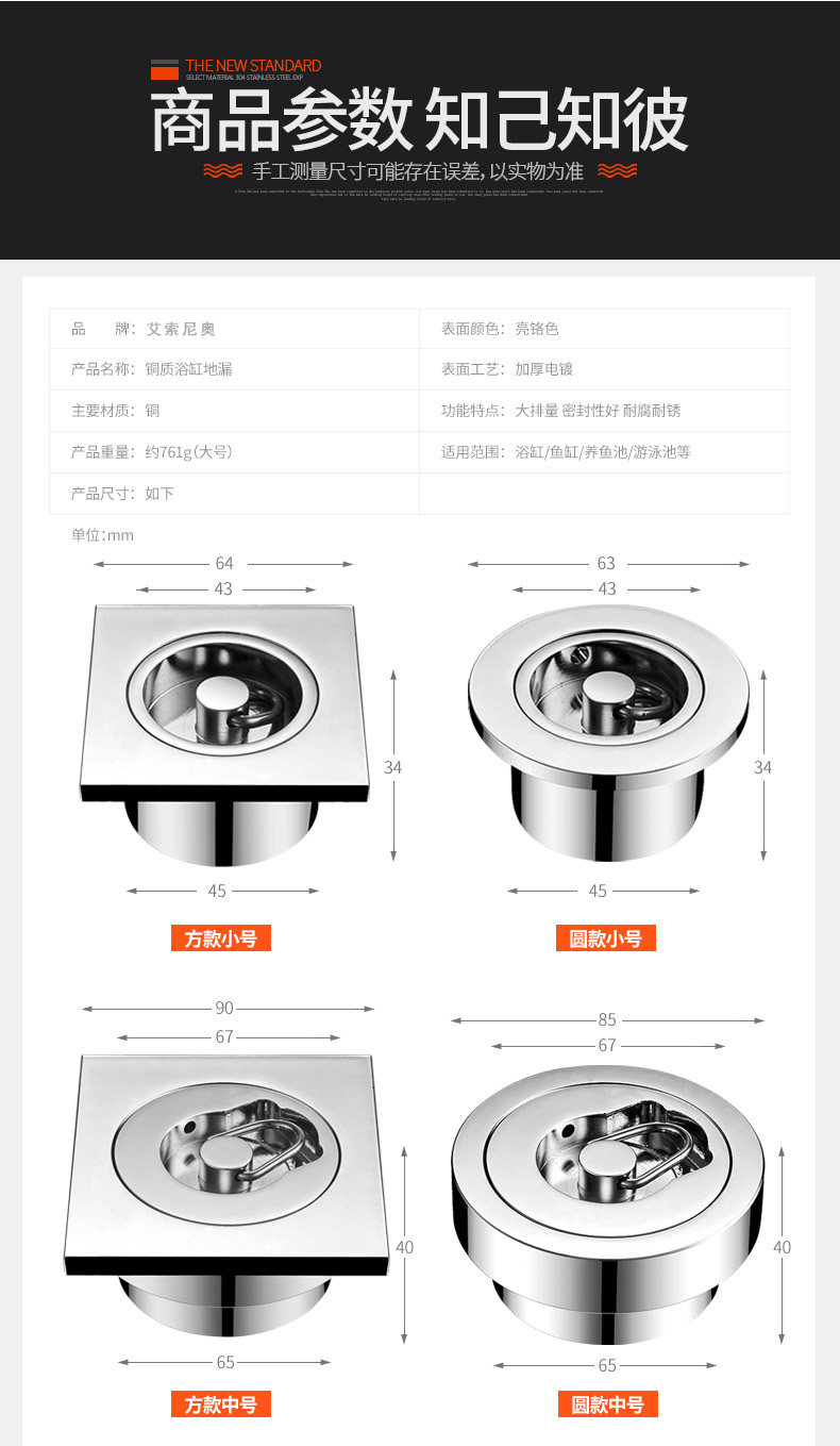 Aisonio Swimming Pool Bathtub Fish Pond Dedicated Drain Outlet Pool Drain Valve Soaking Pool Mop Pool Bath Pool
