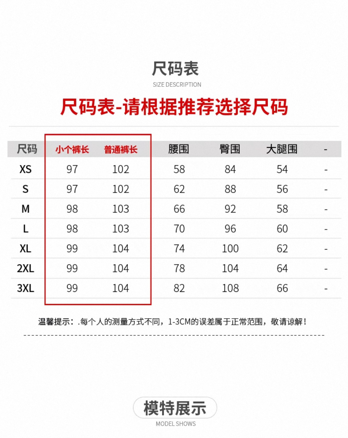 Outseam (cm) 99 cm 101.5 cm 104 cm 106.5 cm 109 cm
