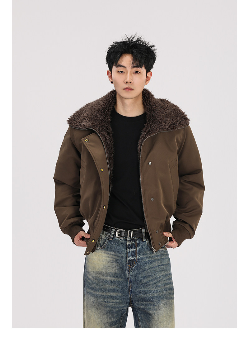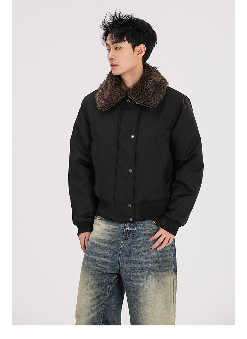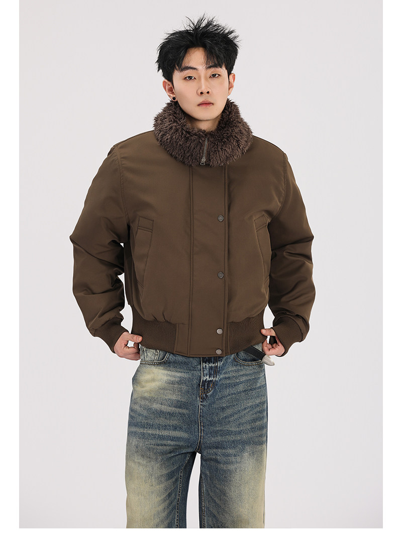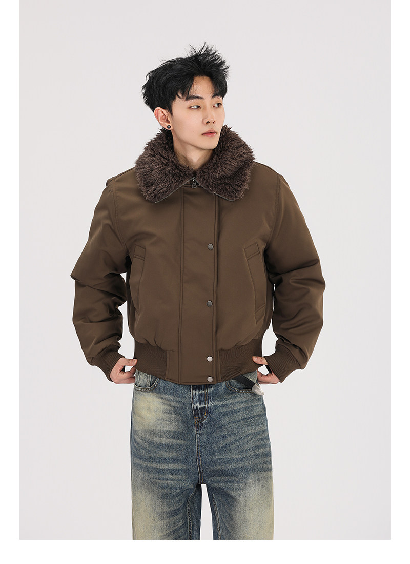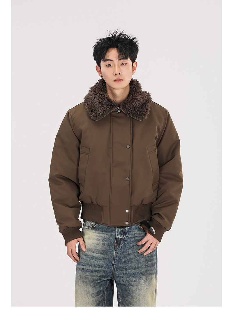 A Carton American Retro Winter Padded Jacket with a Fur Collar for Men and Women, Thickened for Warmth, with a High-End Feel