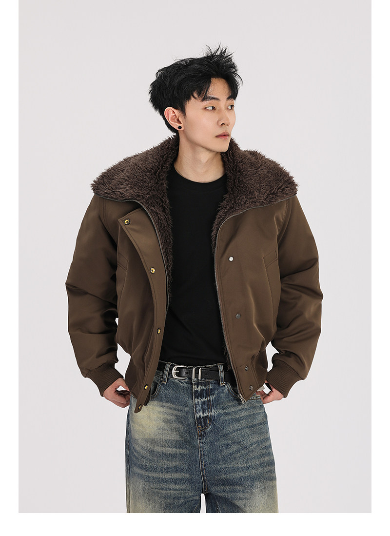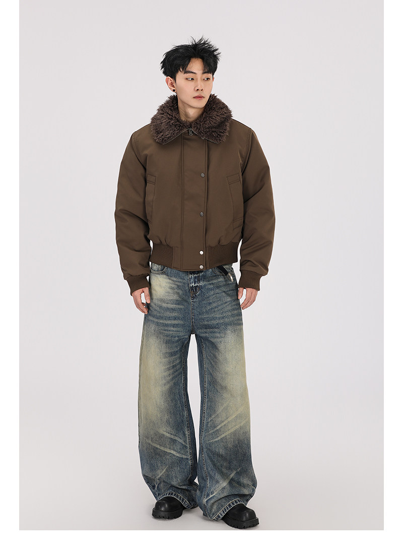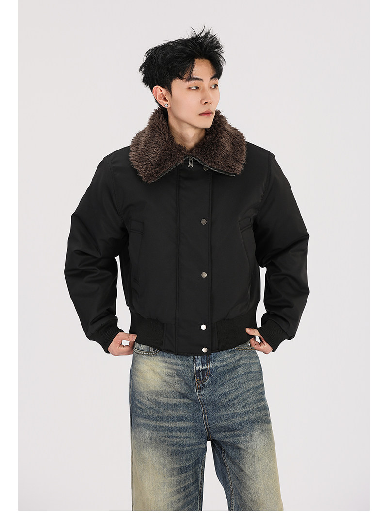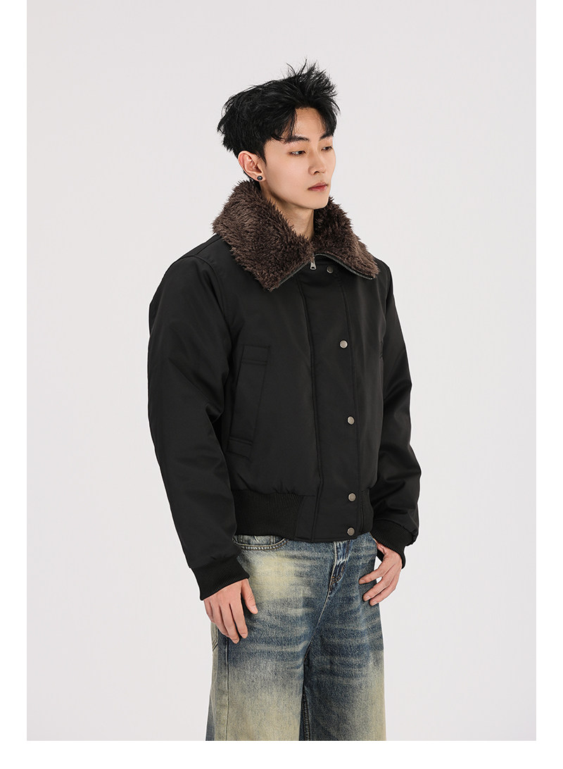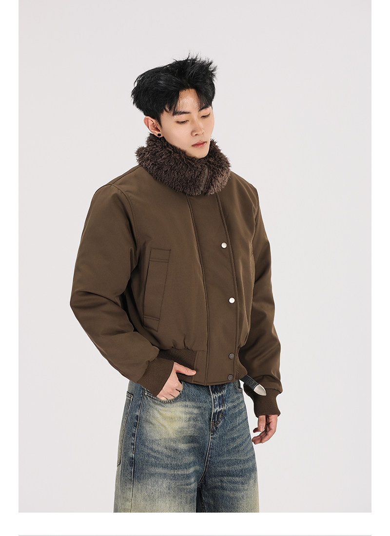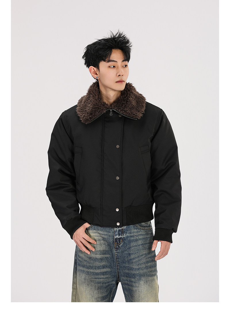 A Carton American Retro Winter Padded Jacket with a Fur Collar for Men and Women, Thickened for Warmth, with a High-End Feel