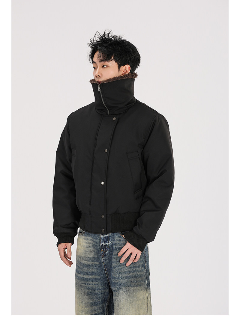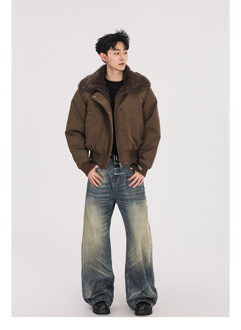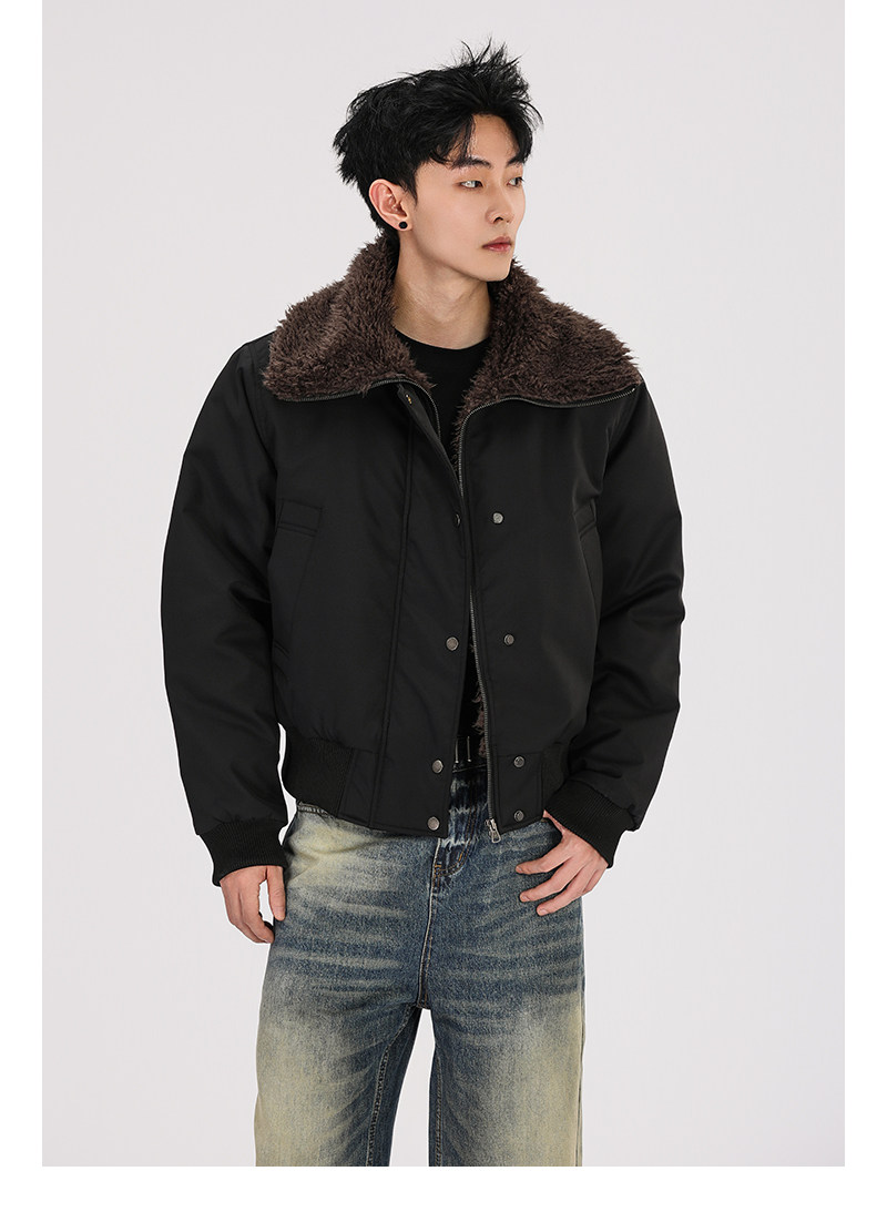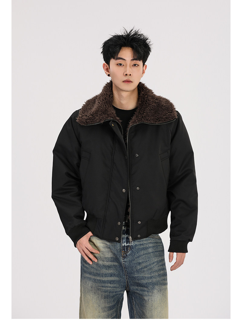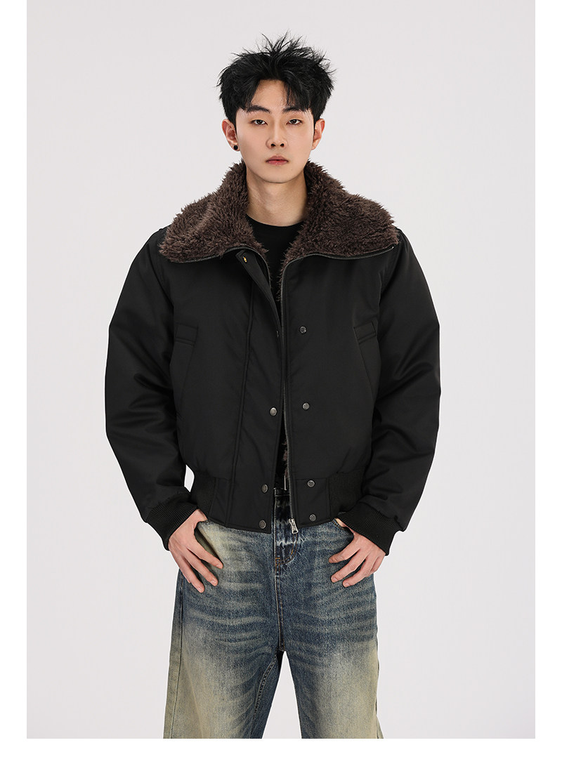 A Carton American Retro Winter Padded Jacket with a Fur Collar for Men and Women, Thickened for Warmth, with a High-End Feel