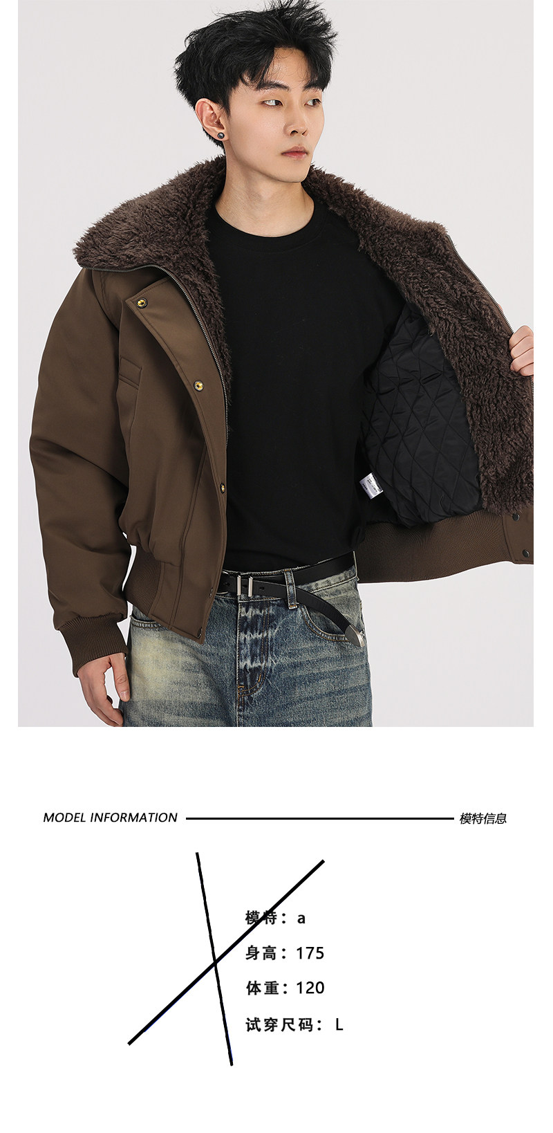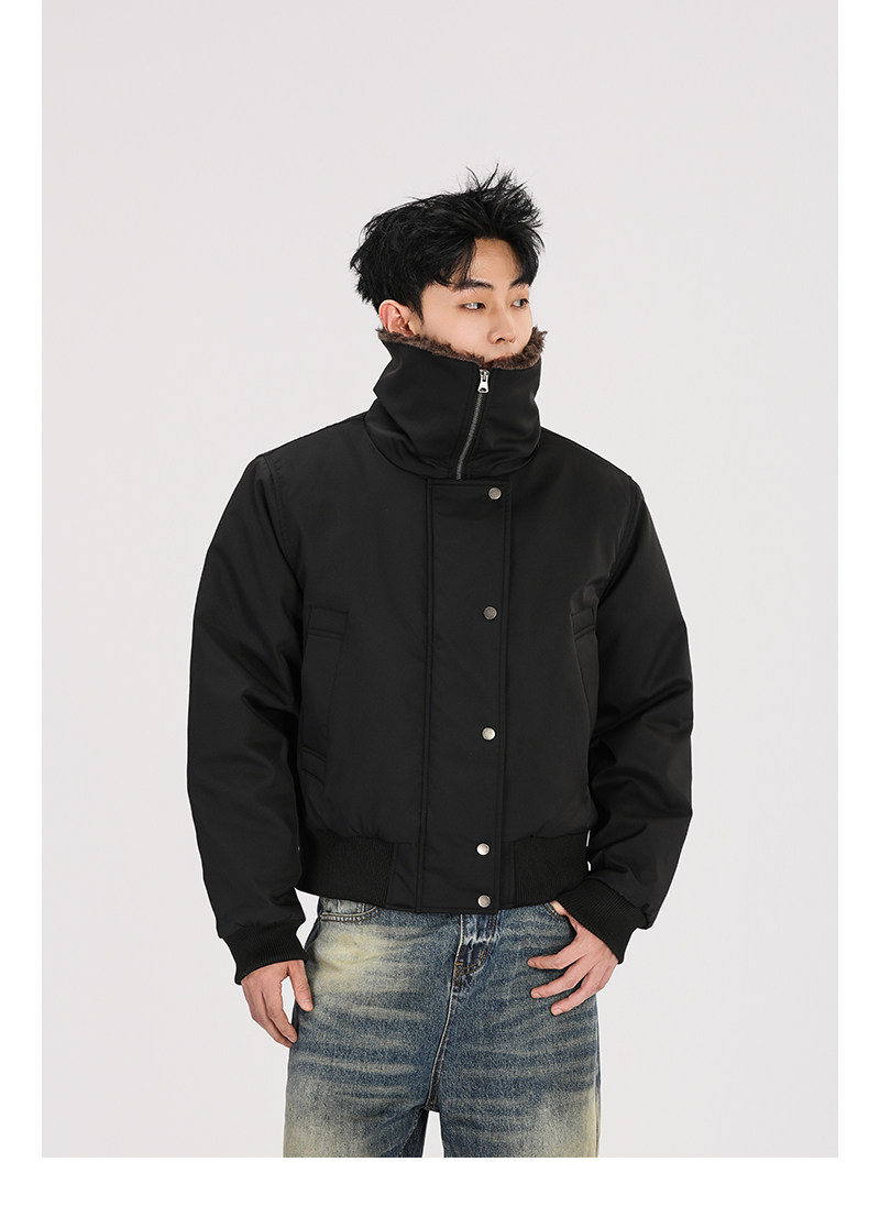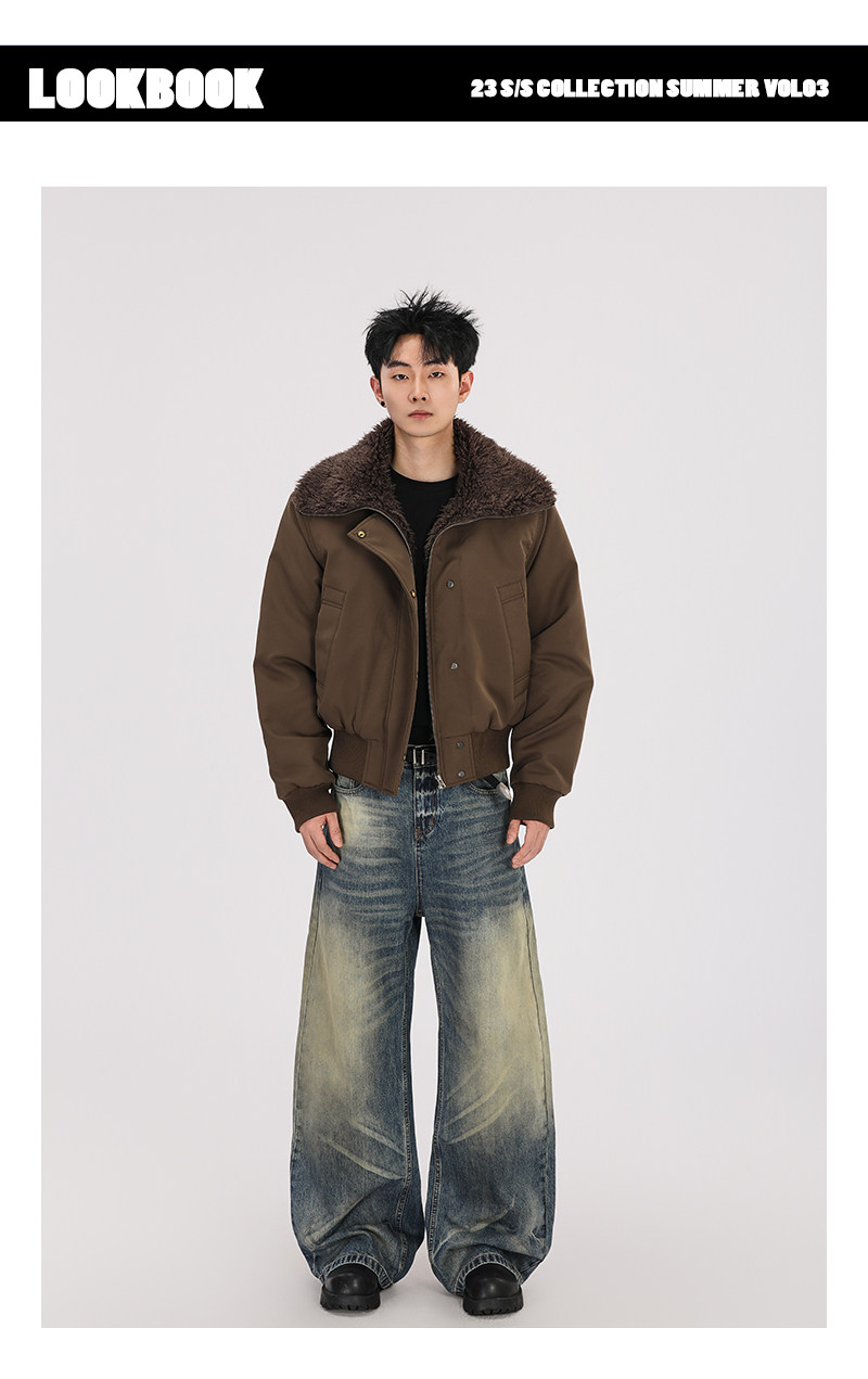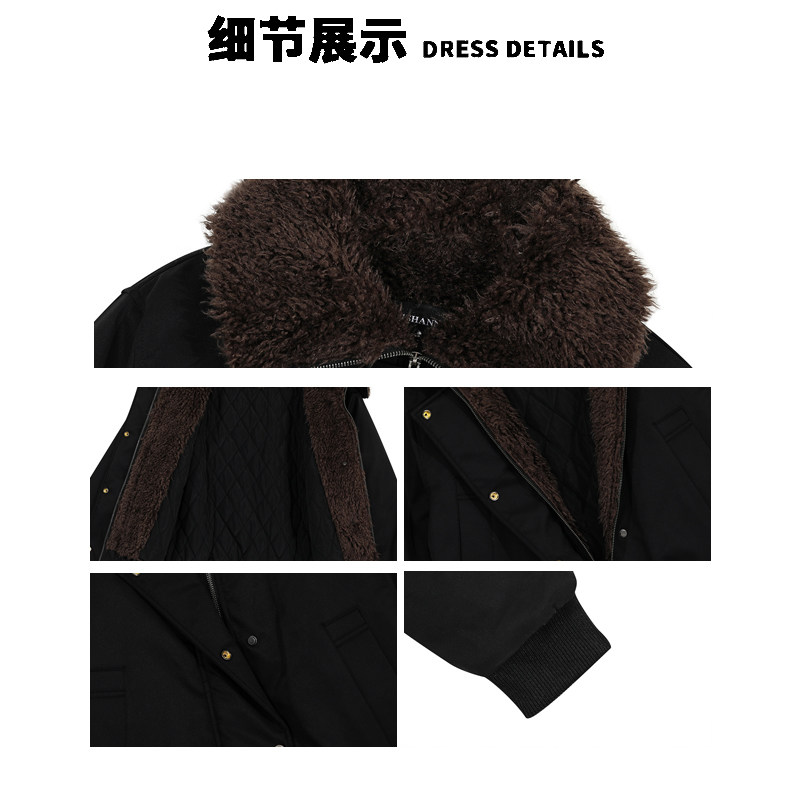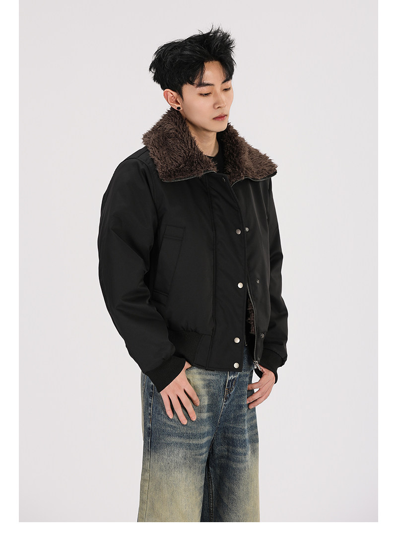 A Carton American Retro Winter Padded Jacket with a Fur Collar for Men and Women, Thickened for Warmth, with a High-End Feel