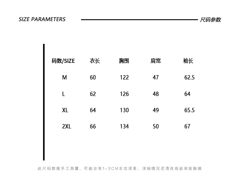 China (cm) 165 / 88-90 170 / 96-98 175 / 108-110 180 / 118-122 185 / 126-130