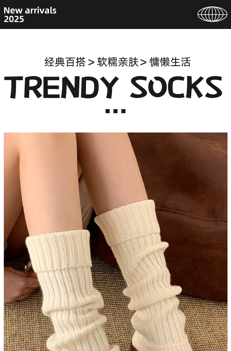 Wool Sock Covers, Slouch Socks for Autumn and Winter, Slimming Calf Socks, Y2K Style, Warm White Leg Warmers, Long Tube Socks to Pair with Birkenstock Shoes