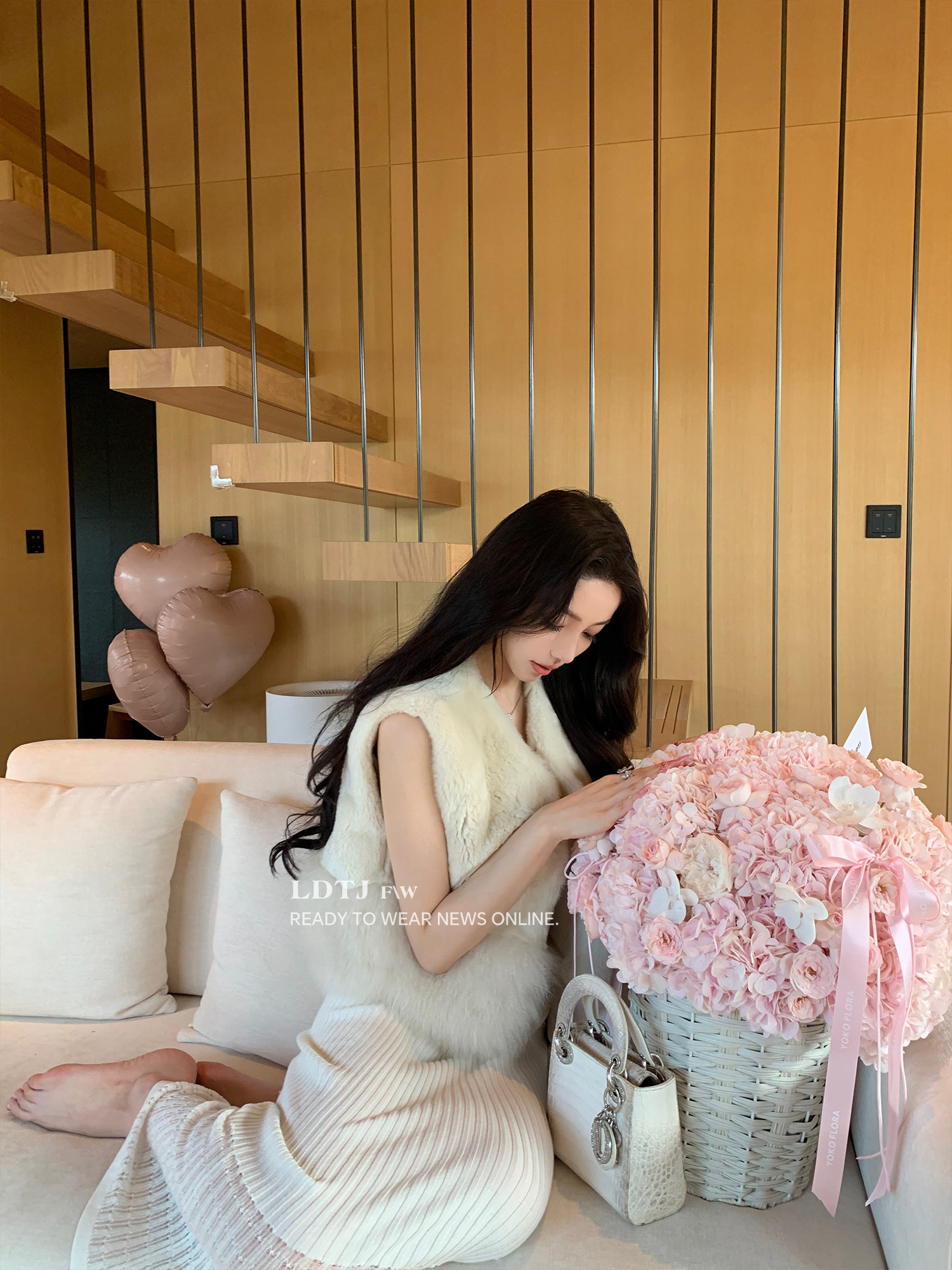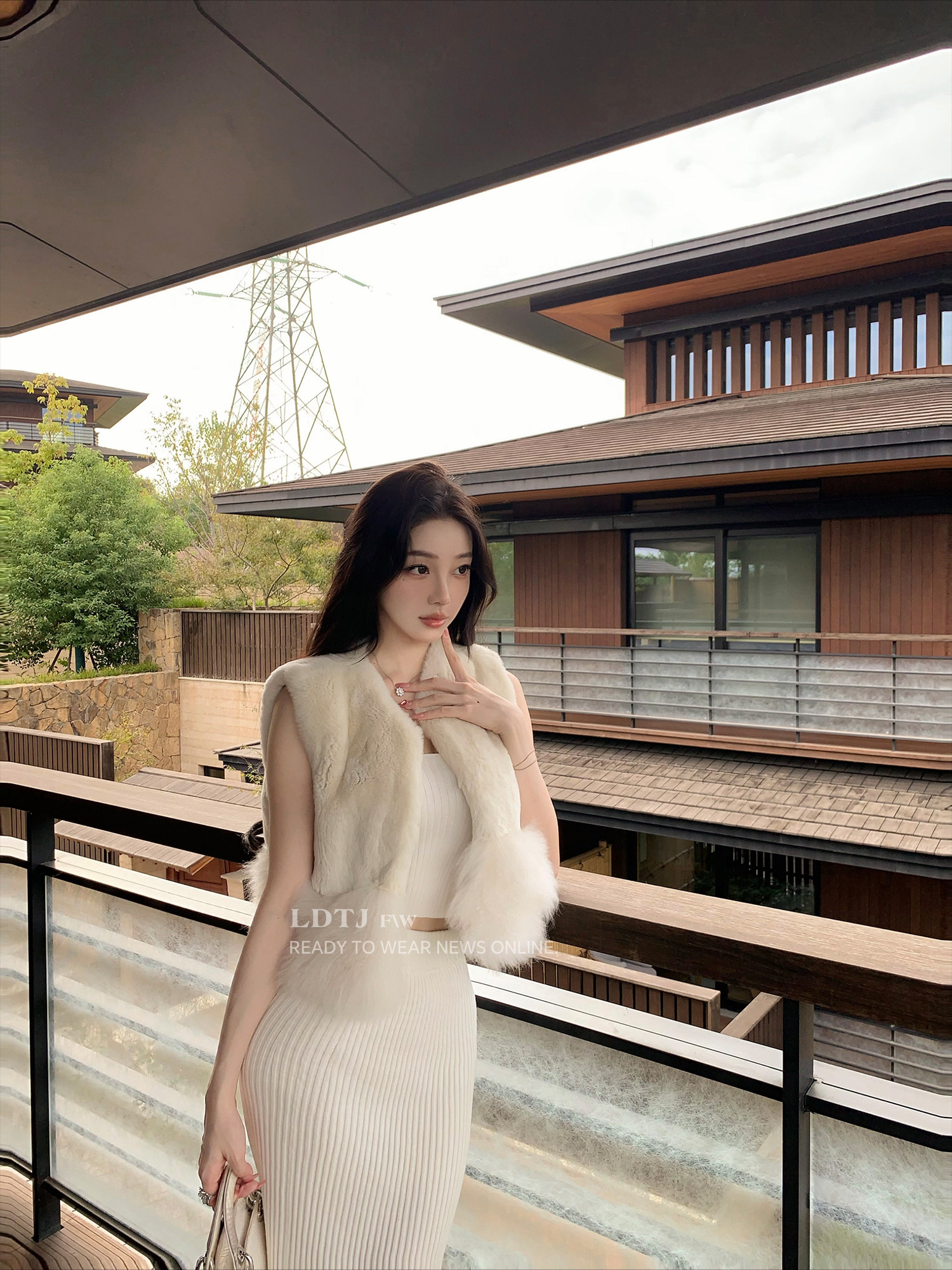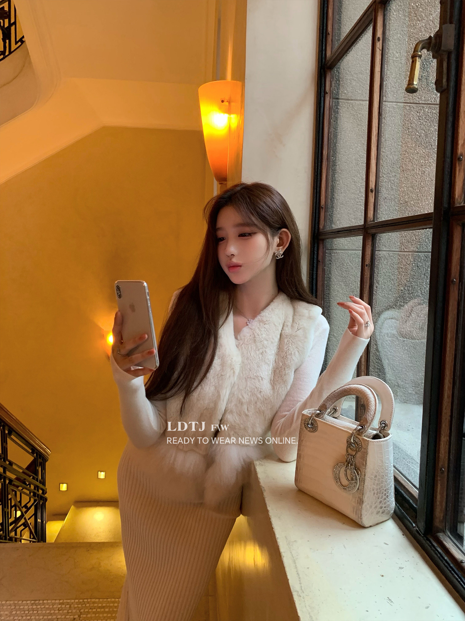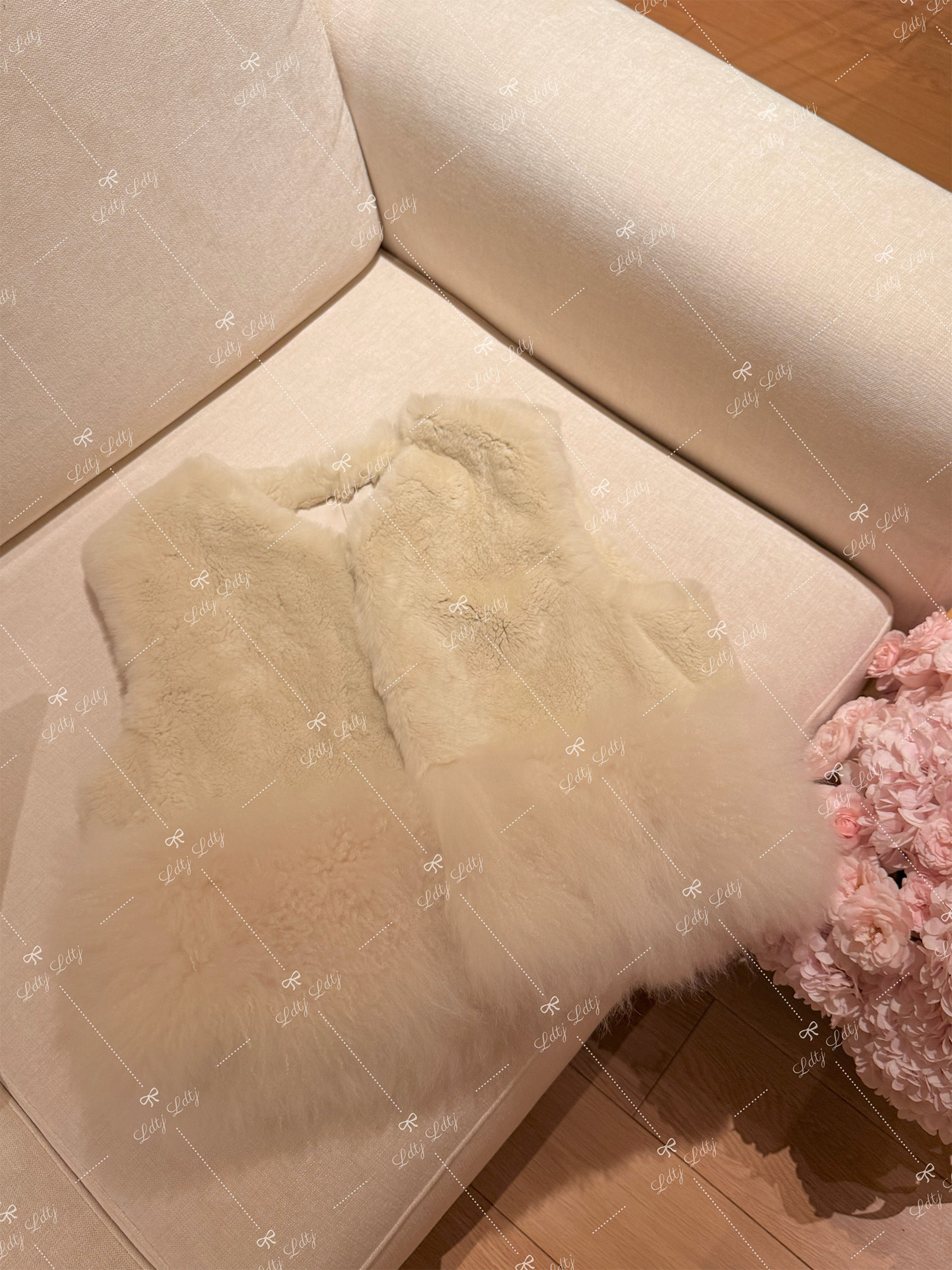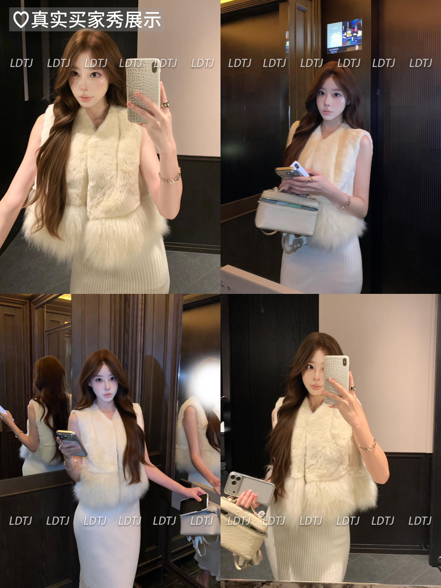 Ldtj Haute Couture "Kyoto Socialite" High-End Imported Rex Rabbit Fur and Lamb Wool Curly Fur Vest Coat