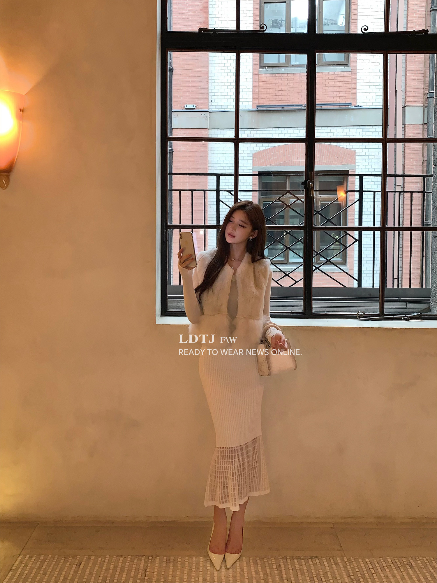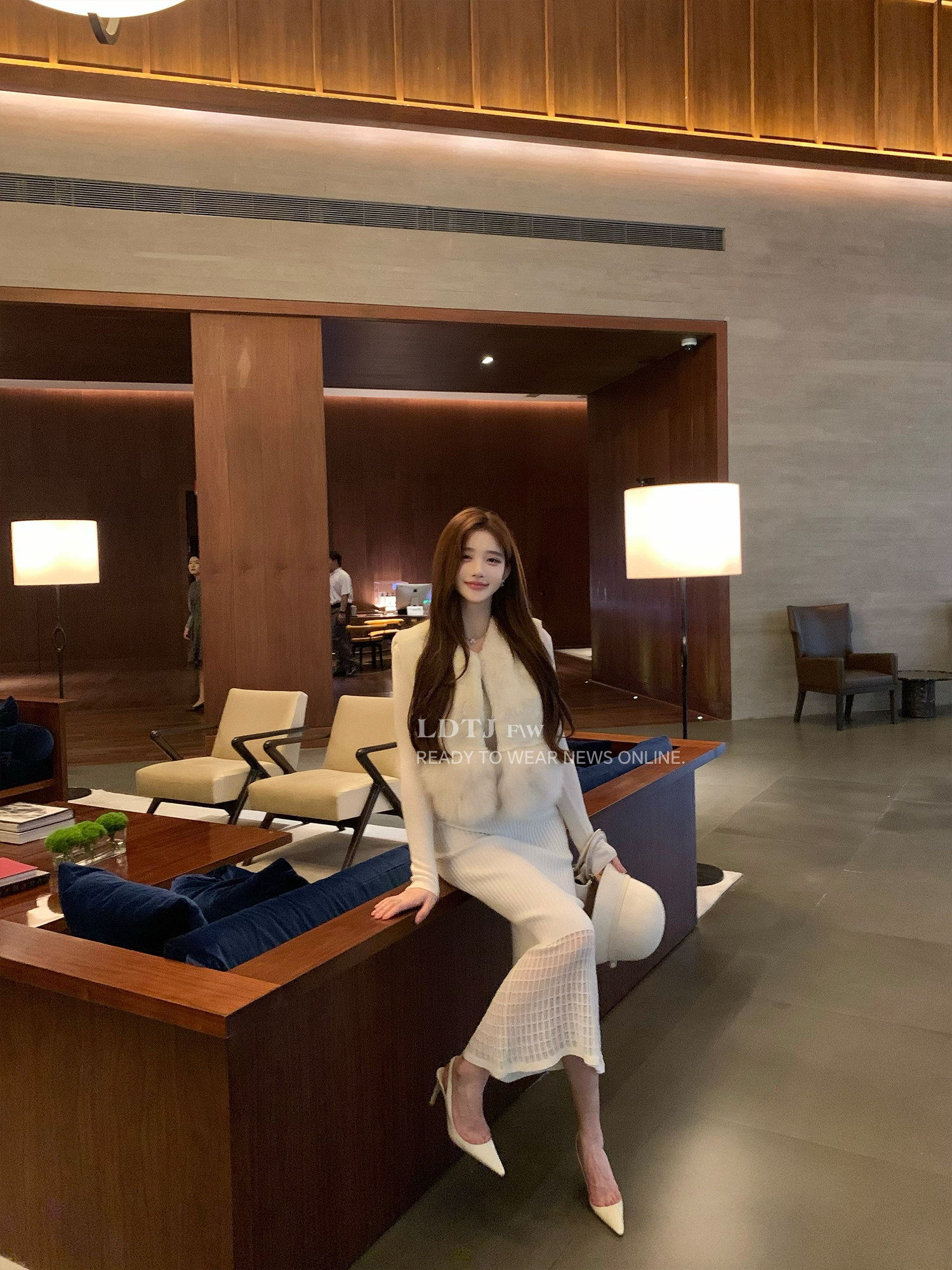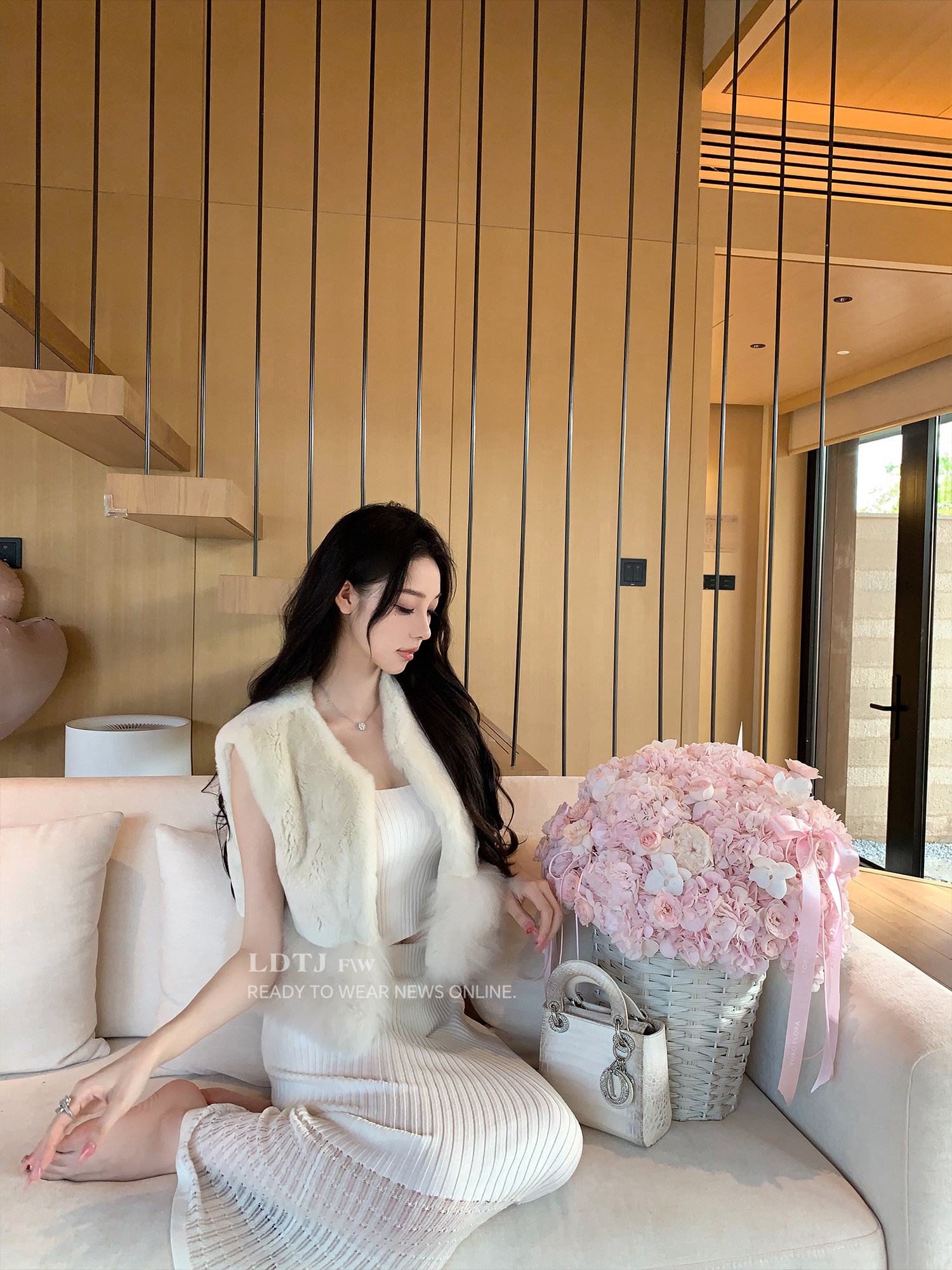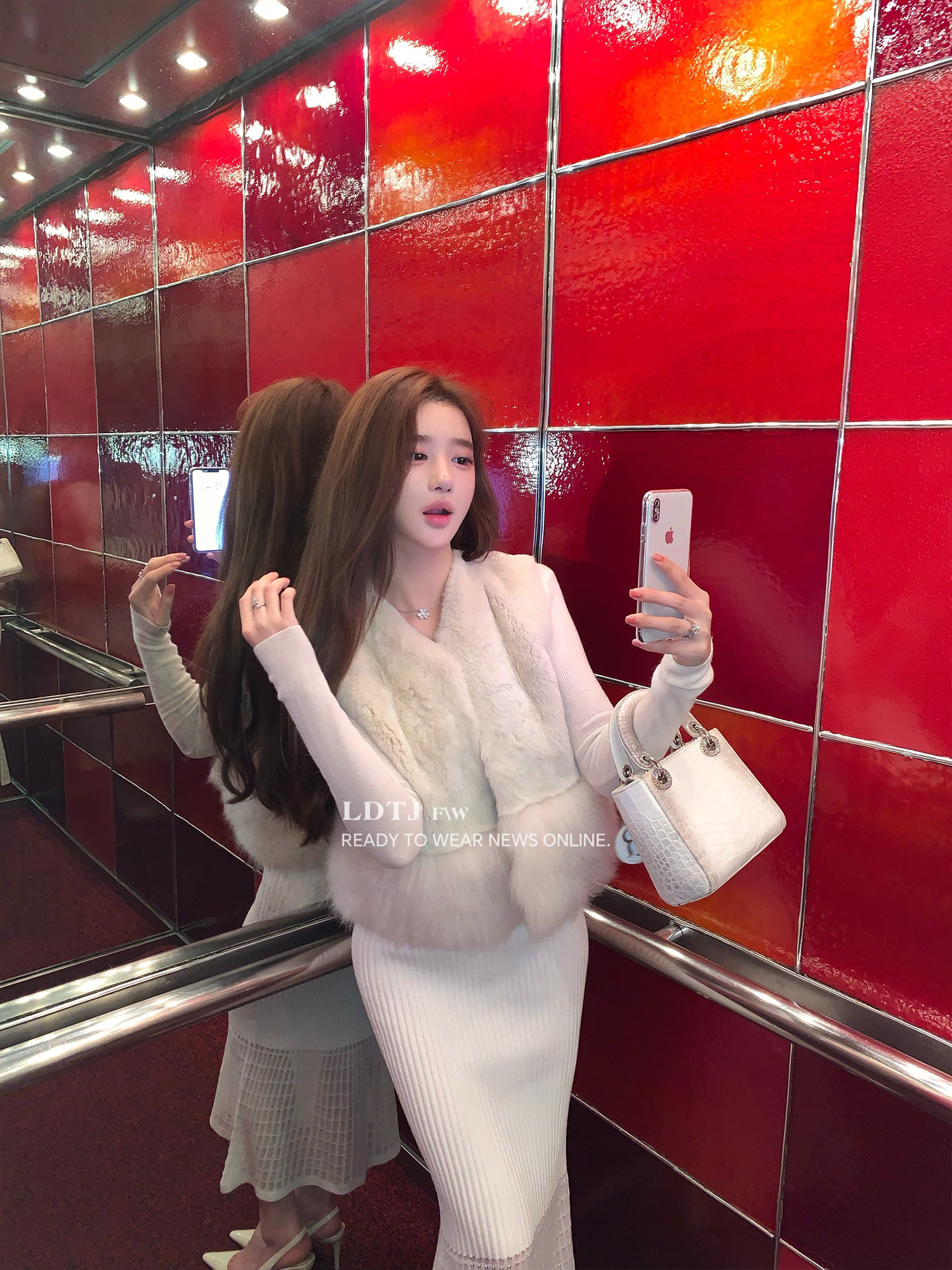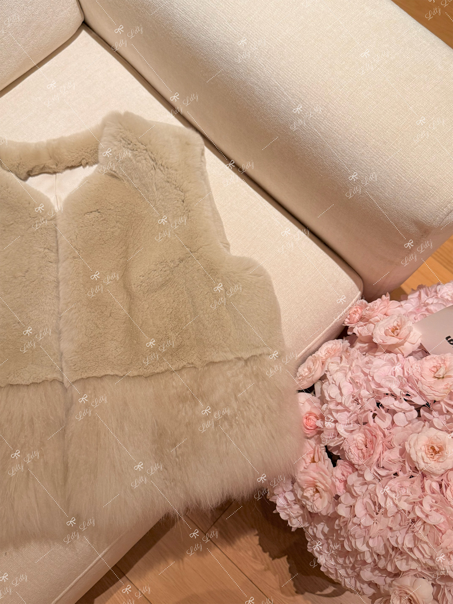 Ldtj Haute Couture "Kyoto Socialite" High-End Imported Rex Rabbit Fur and Lamb Wool Curly Fur Vest Coat
