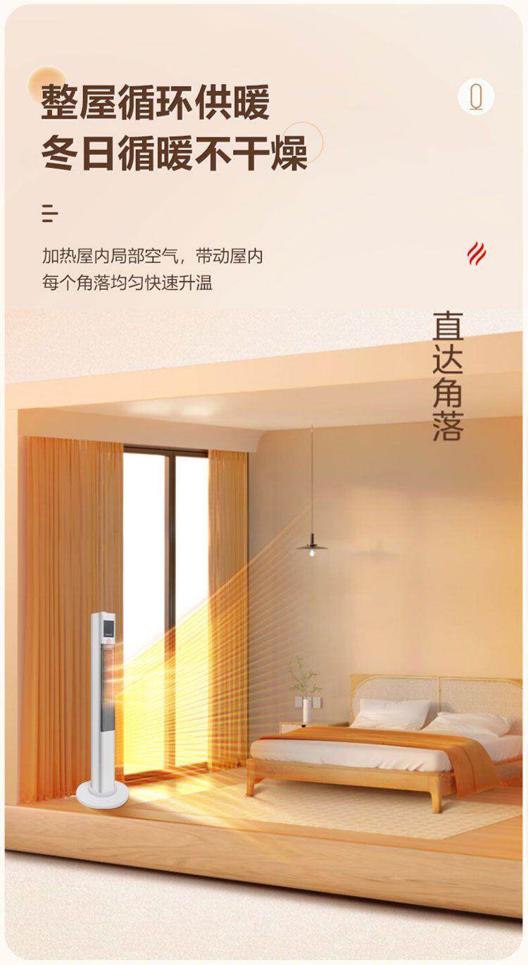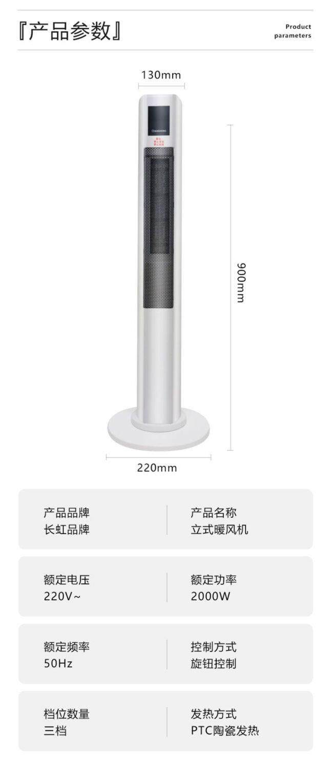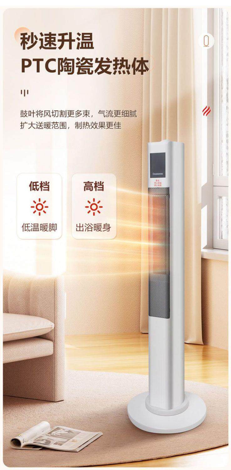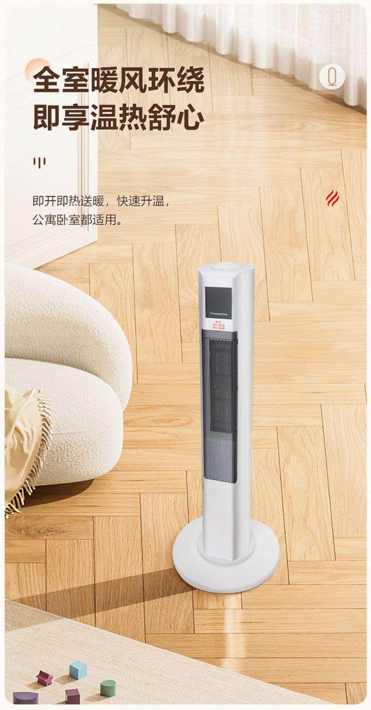 Changhong Heater for Home Use, Vertical Heater for Bathroom, Electric Heater for Bedroom, Floor-Standing Heater, Energy-Saving, Remote Control