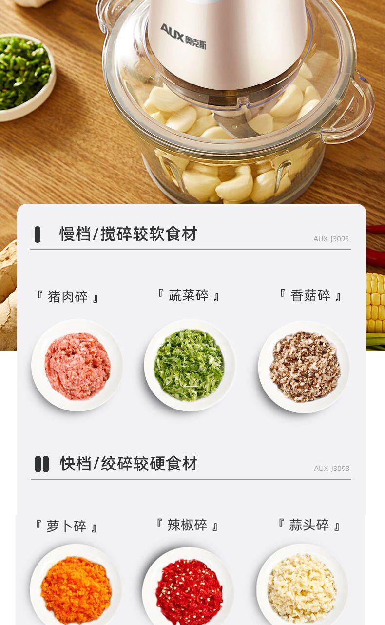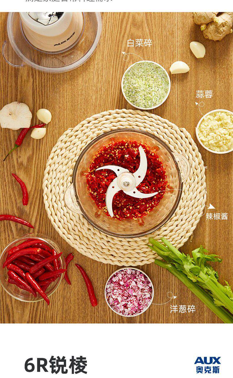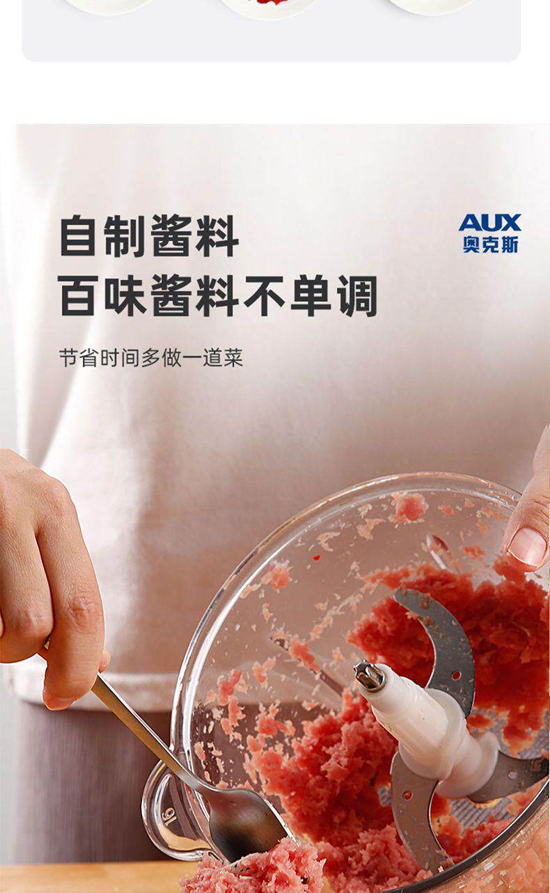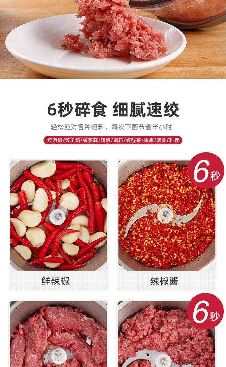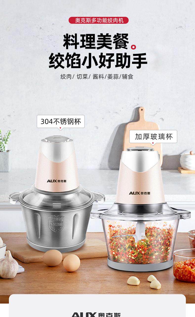 Oaks 2L Stainless Steel Four-Blade Electric Meat Grinder Multi-Functional Household Cooking and Vegetable Mixing Tool