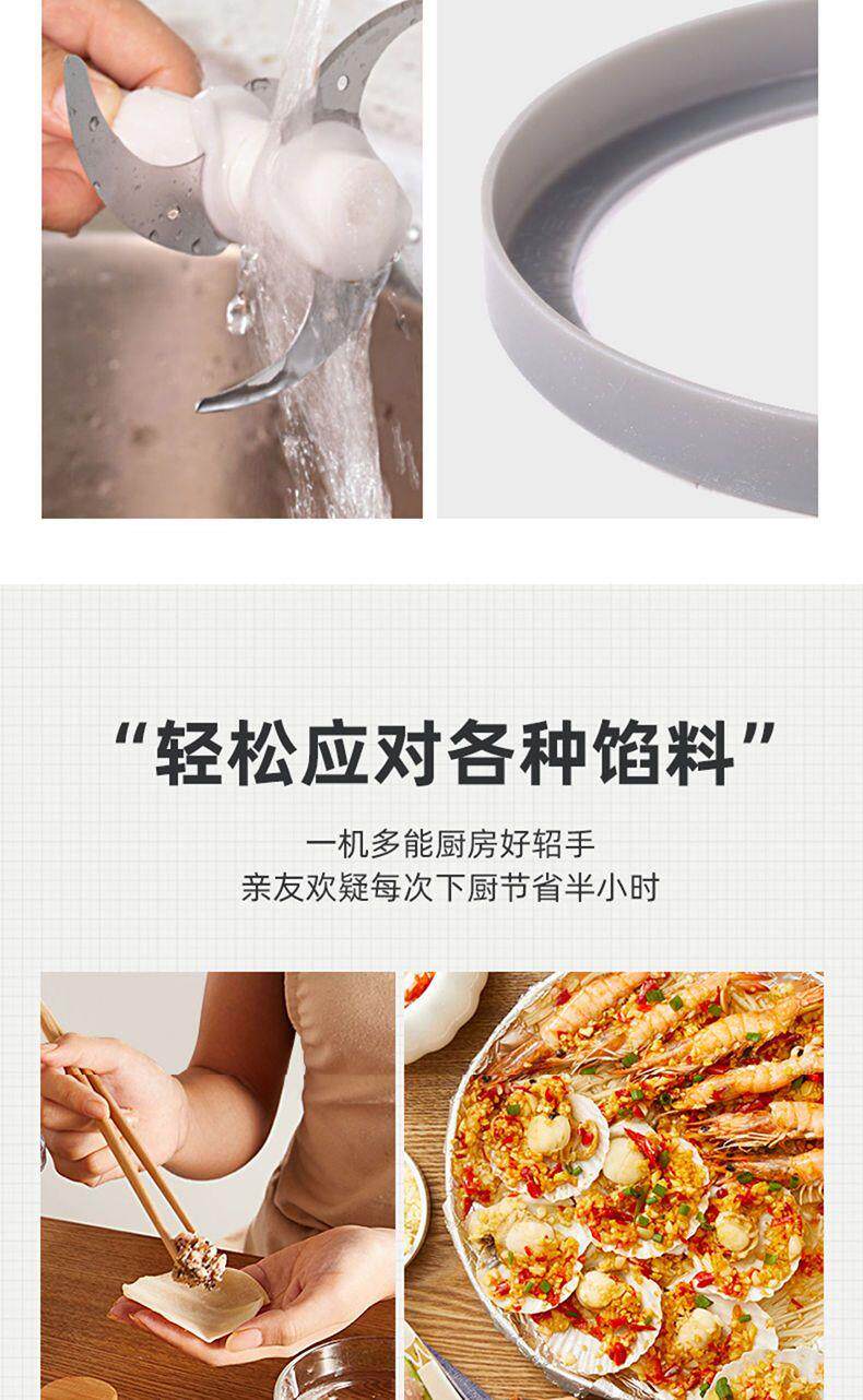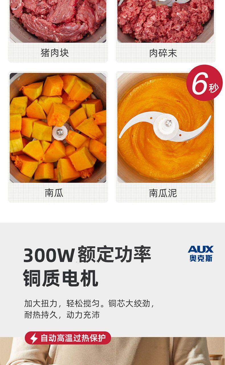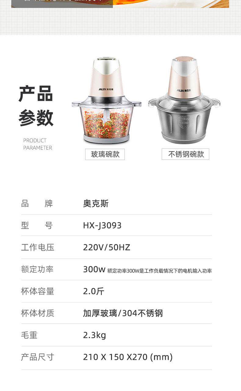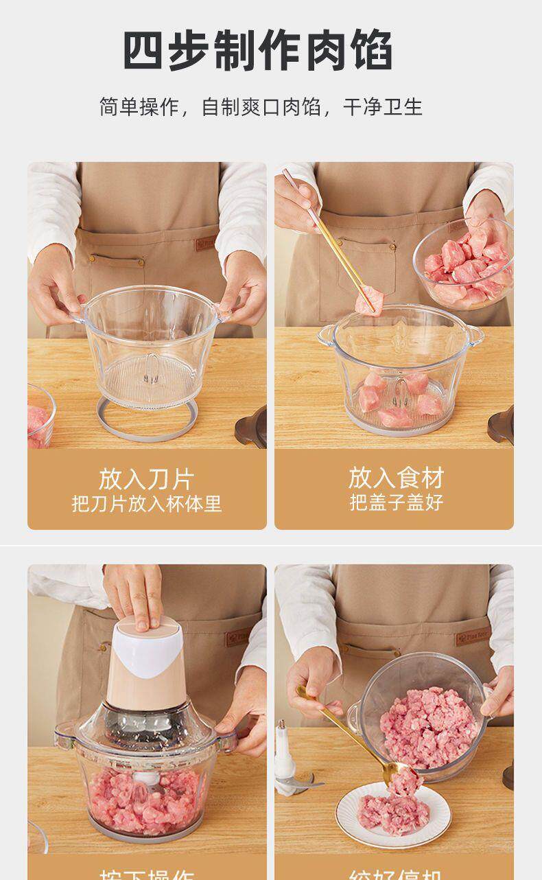 Oaks 2L Stainless Steel Four-Blade Electric Meat Grinder Multi-Functional Household Cooking and Vegetable Mixing Tool