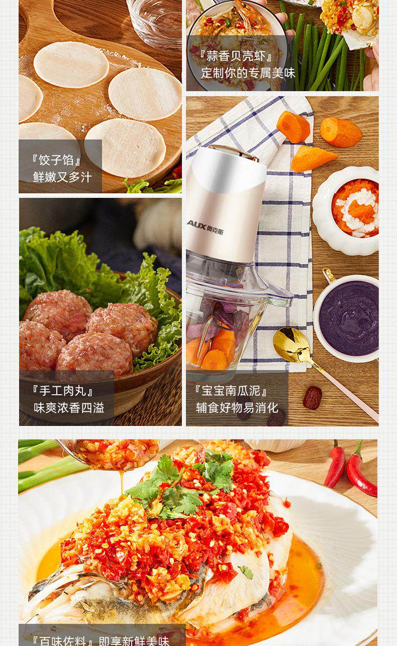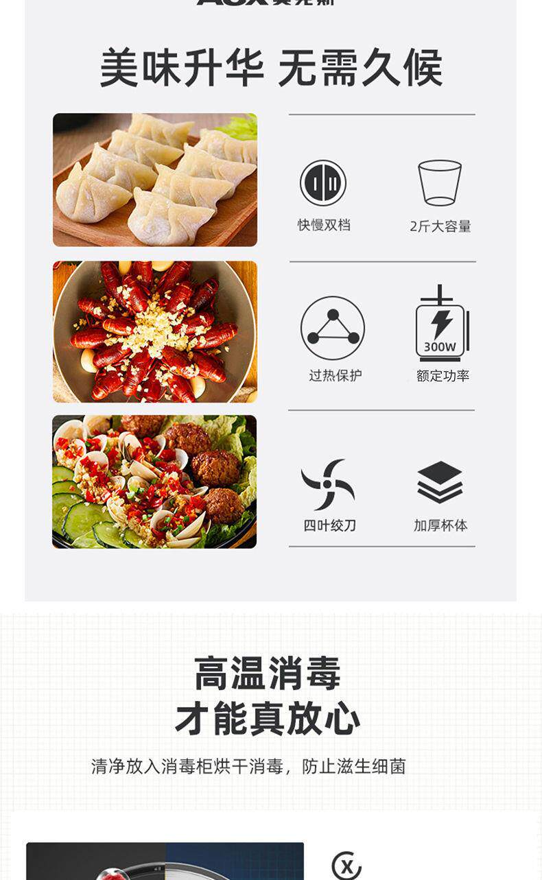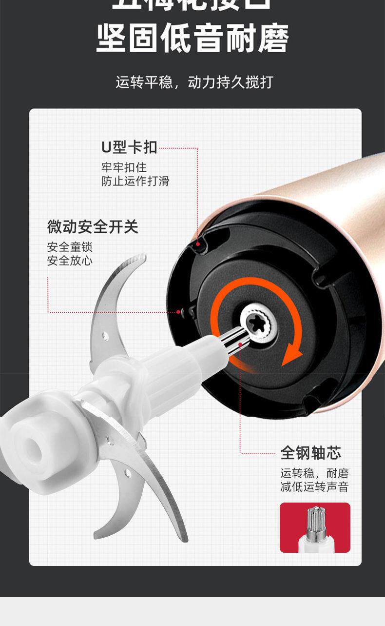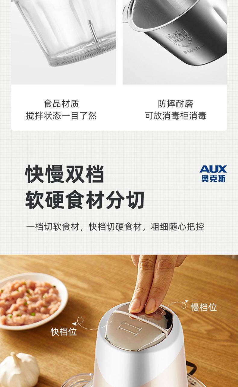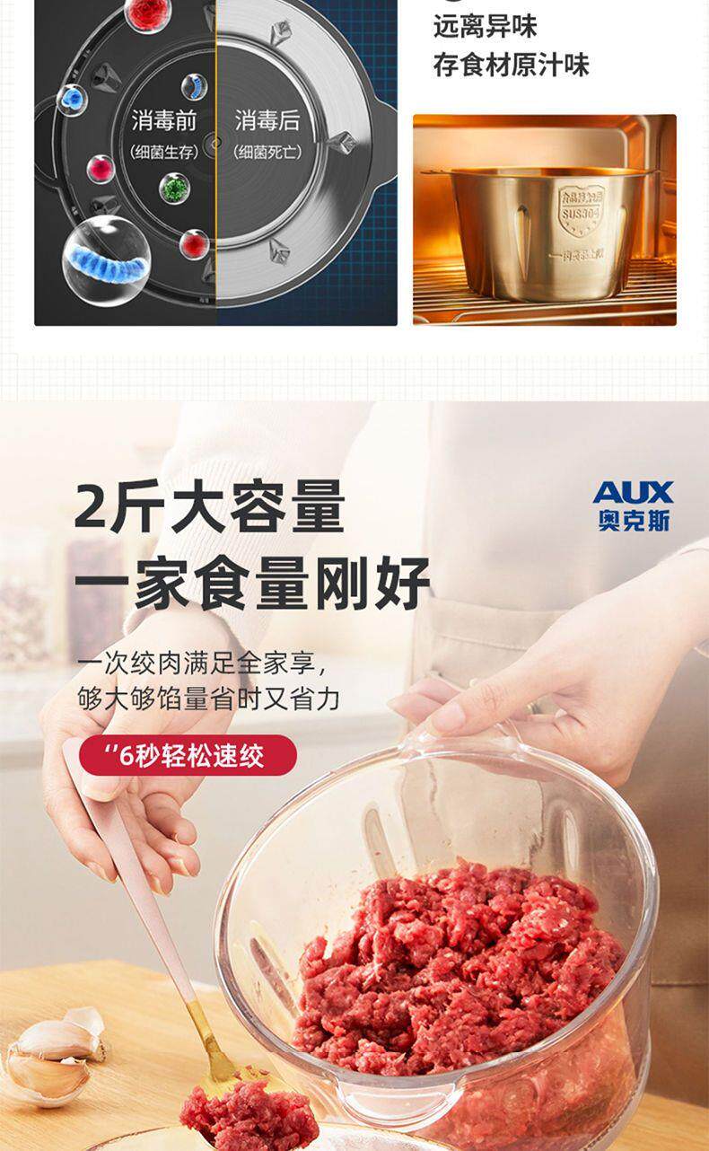 Oaks 2L Stainless Steel Four-Blade Electric Meat Grinder Multi-Functional Household Cooking and Vegetable Mixing Tool