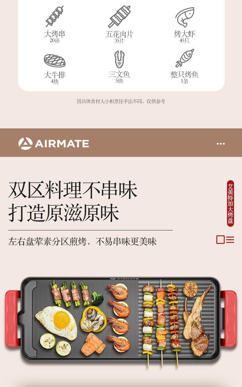 Airmate Barbecue Grill Electric Grill Barbecue Rack Household Smokeless Multi-Functional Electric Grill Pan Barbecue Machine Korean-Style Barbecue Plate