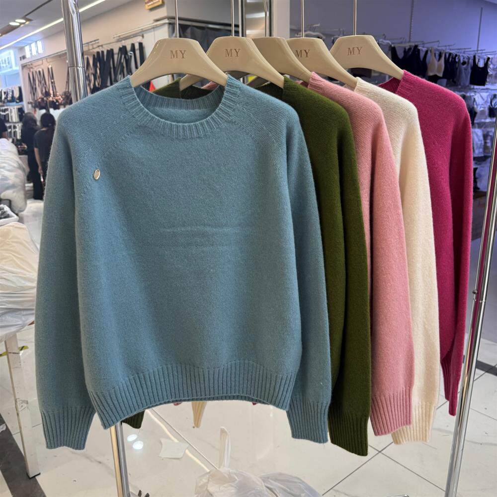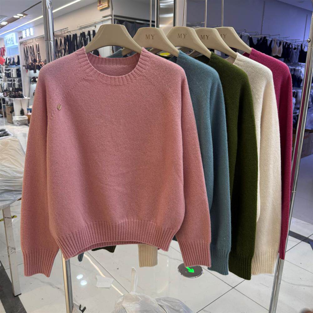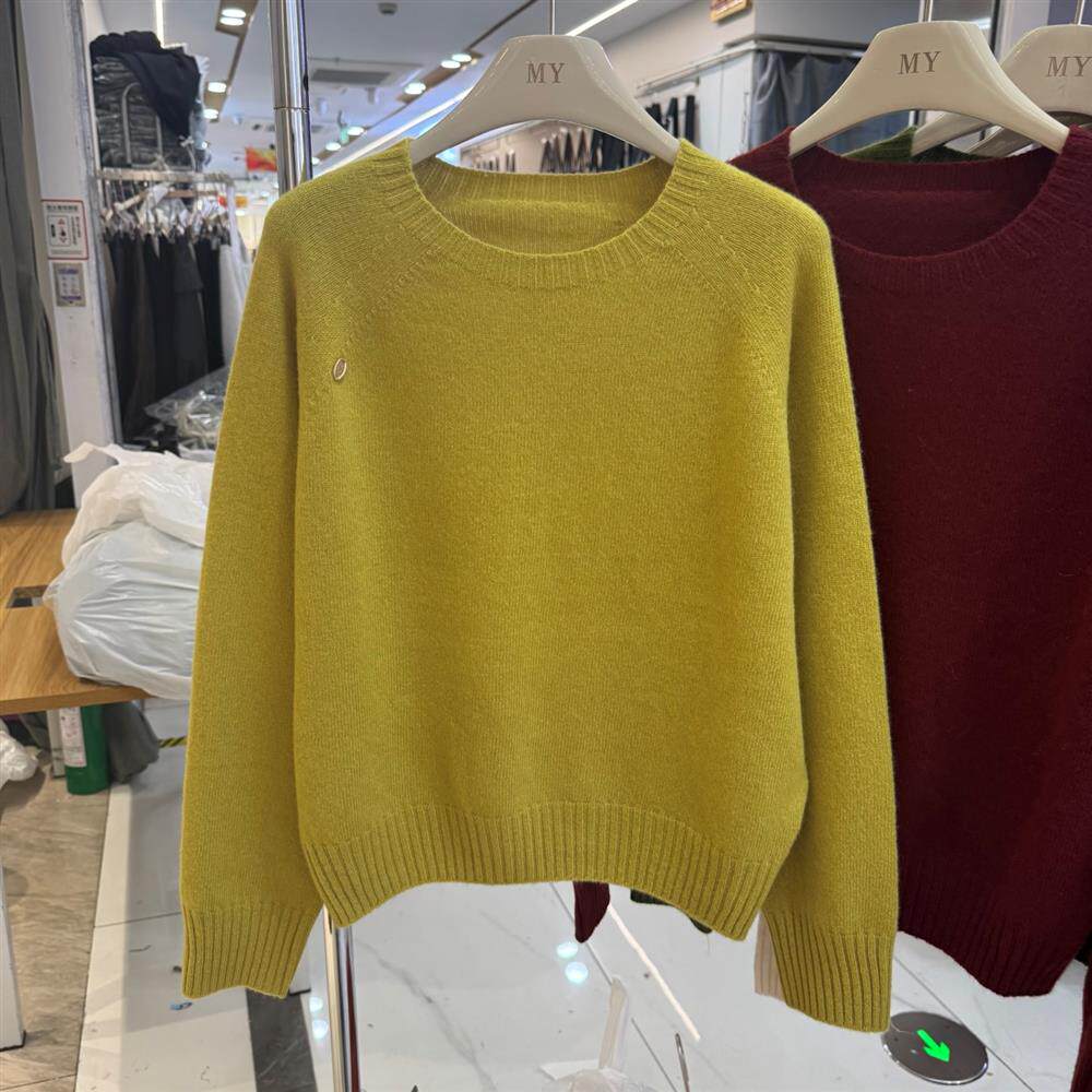 Seamless one-piece autumn and winter new women's fashionable and simple round neck pullover sweater sweater top woolen sweater soft and waxy