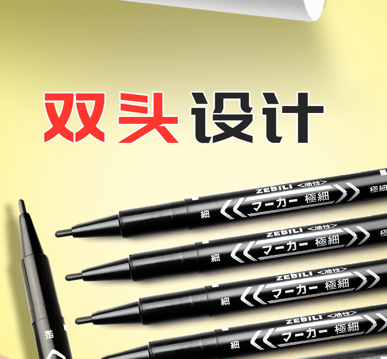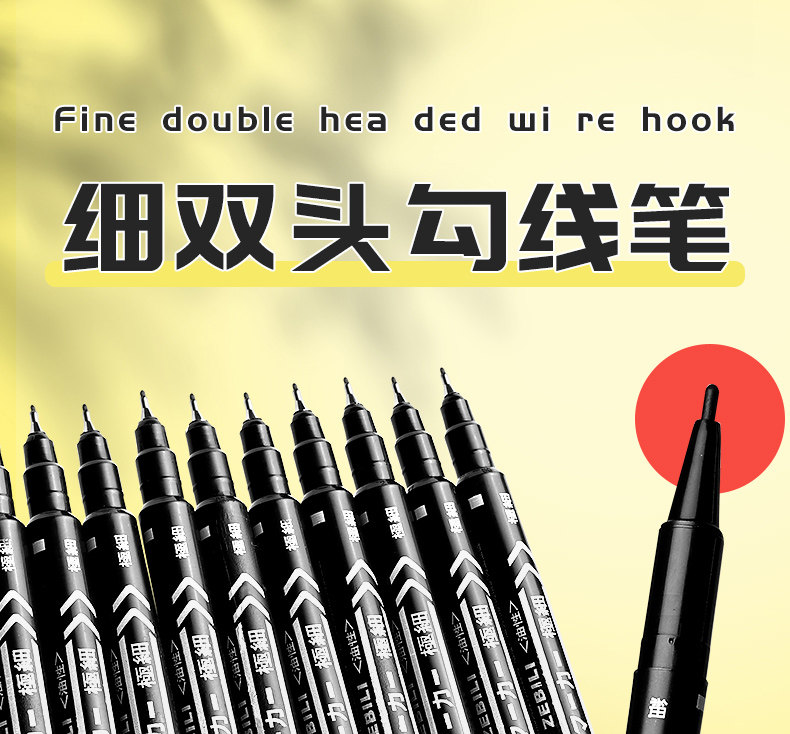 Double-Ended Marker Pen, Art-Specific, for Elementary School Students' Drawing, Black Oil-Based, Dual-Tip, Quick-Drying, Waterproof