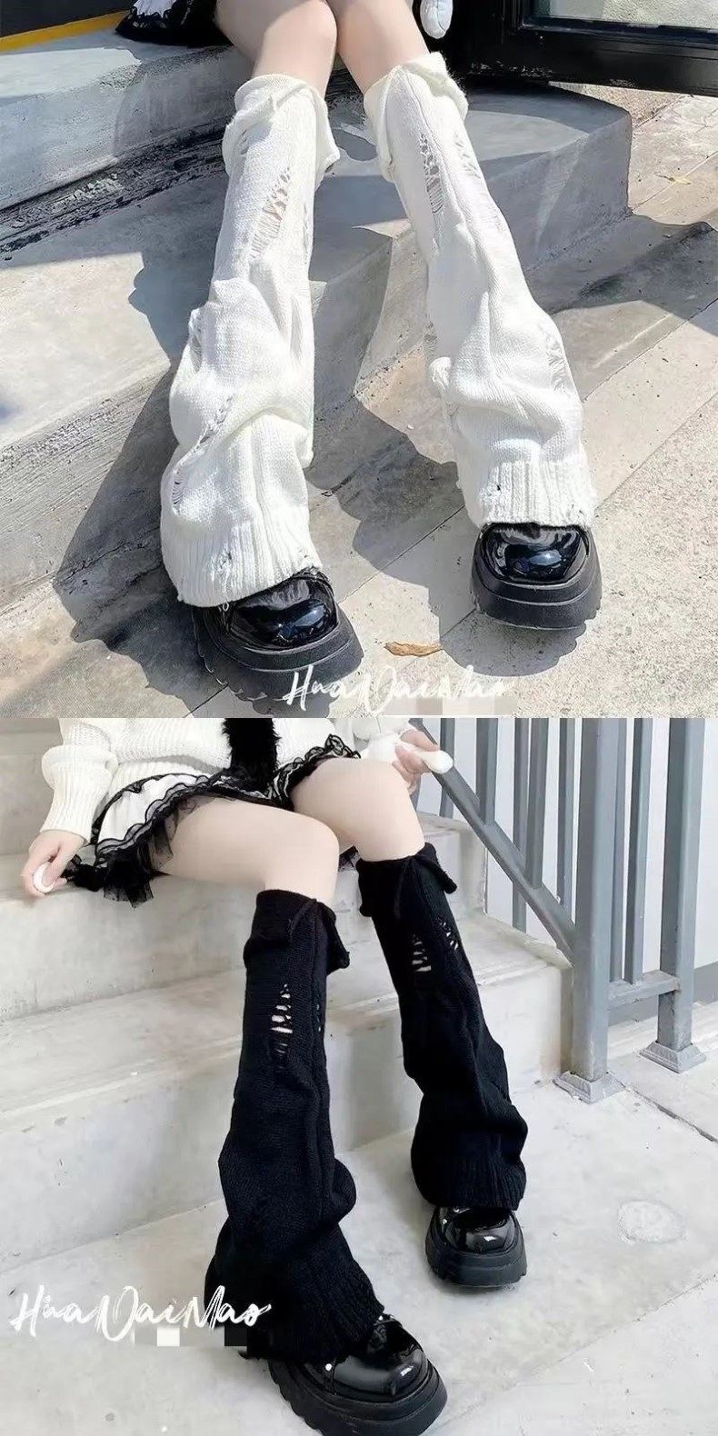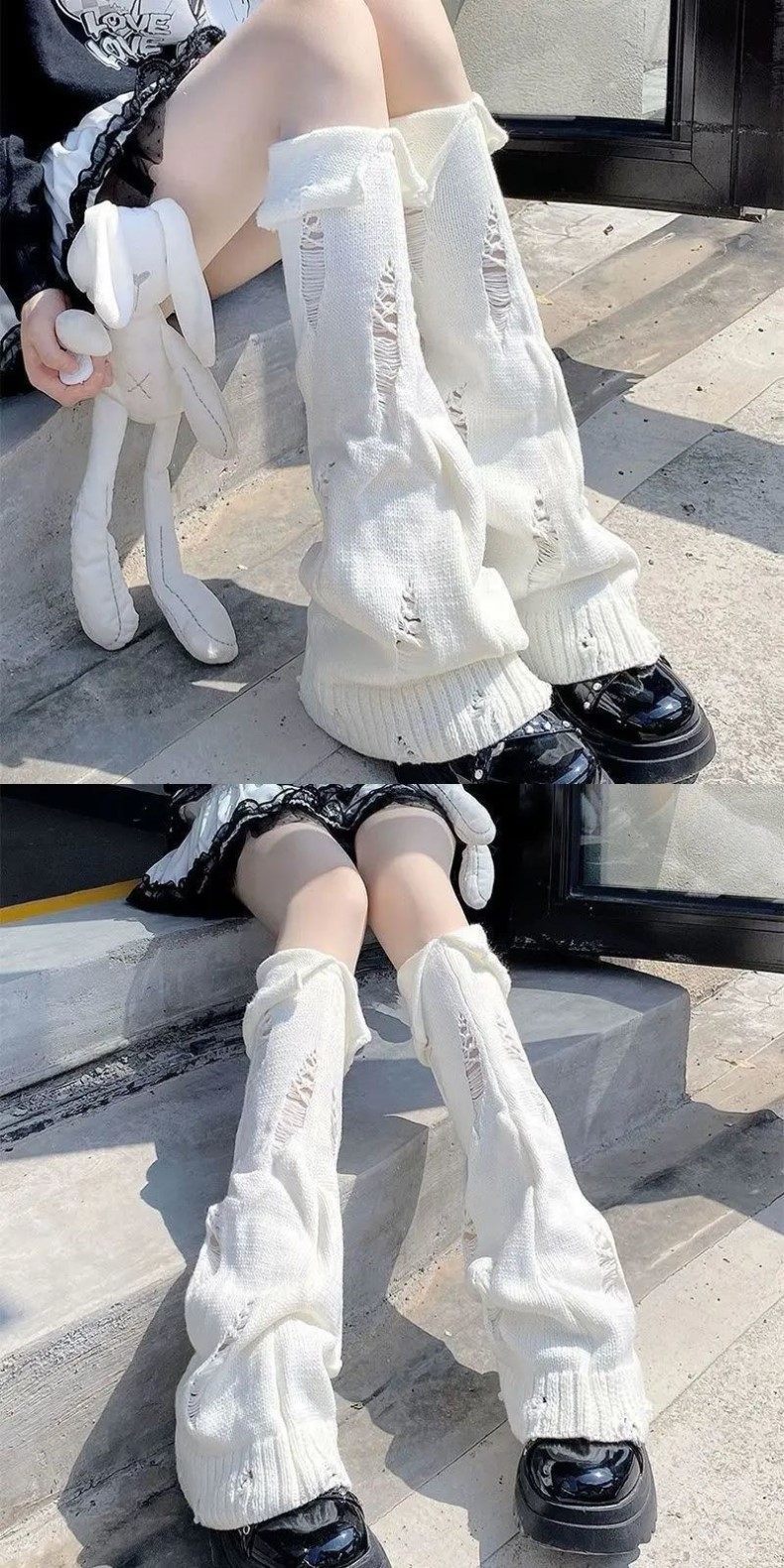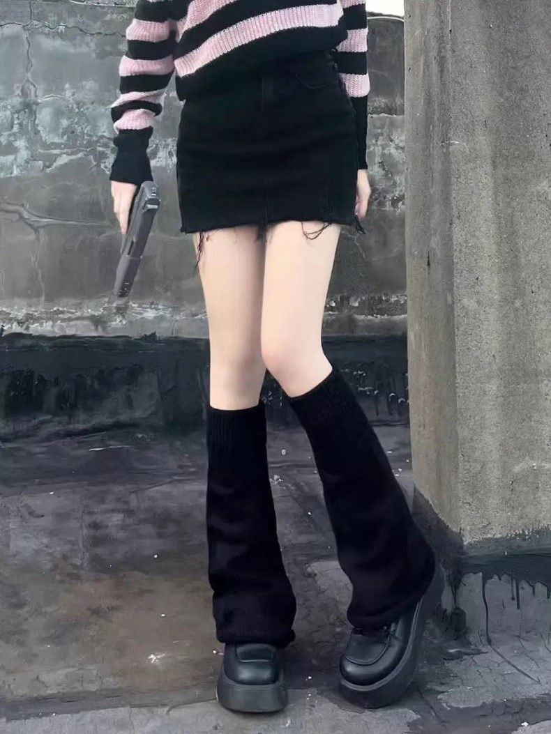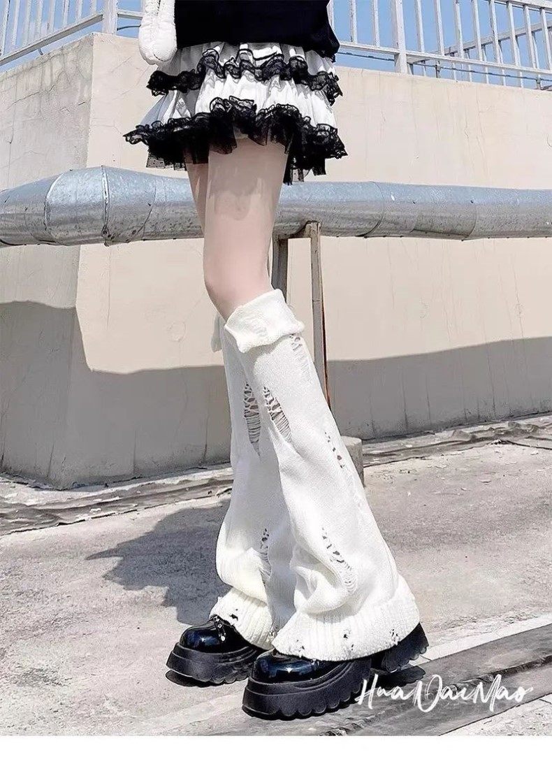 White Millennium-Style Knitted Slouch Socks for Women, Spring, Autumn, and Winter Leg Warmers, Slimming Wide-Leg Flared Calf Socks