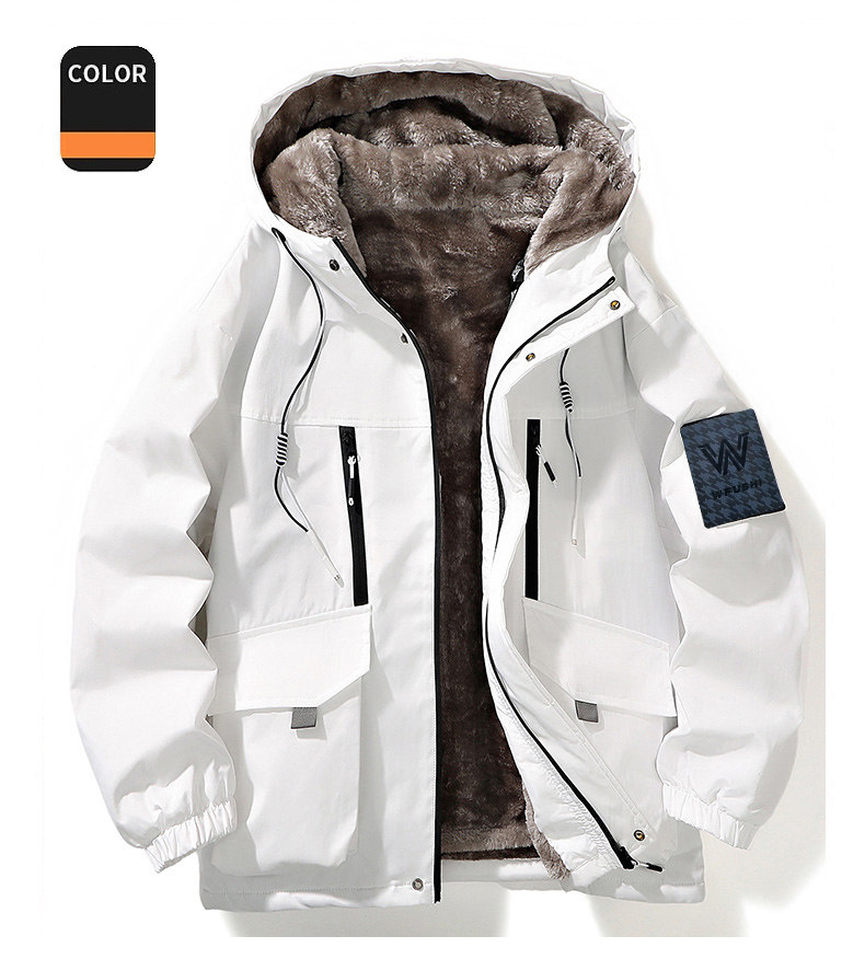 Fleece-Lined Thickened Jacket for Men, Autumn and Winter, Trendy Color-Blocking Hooded Casual Jacket for Teenagers, Warm Parka for Students