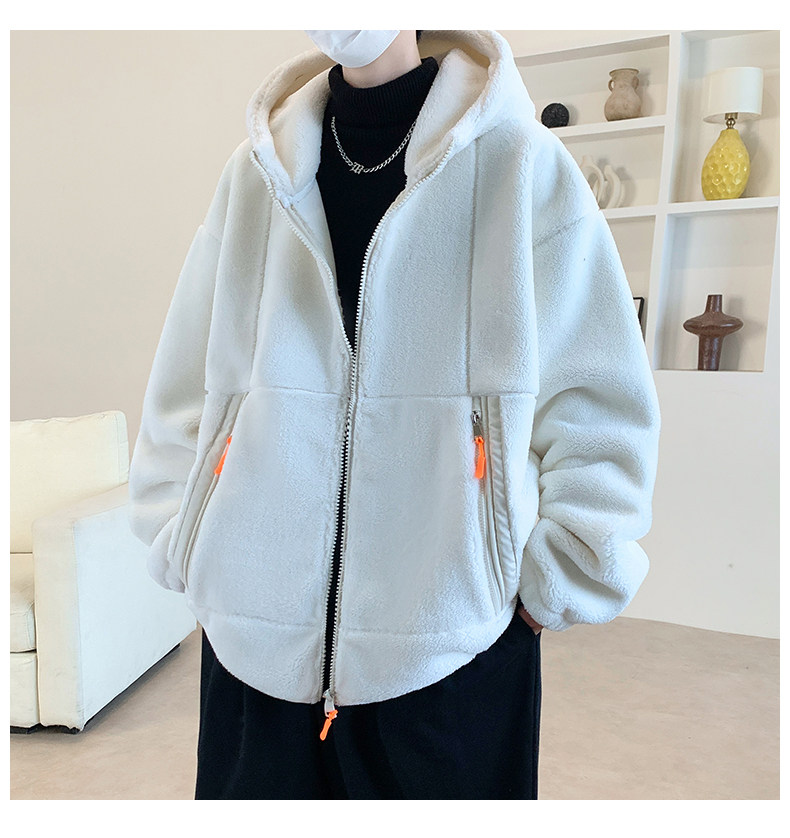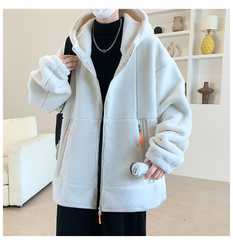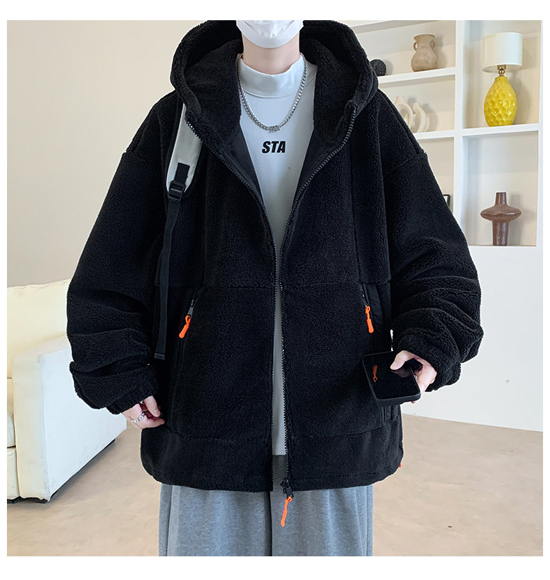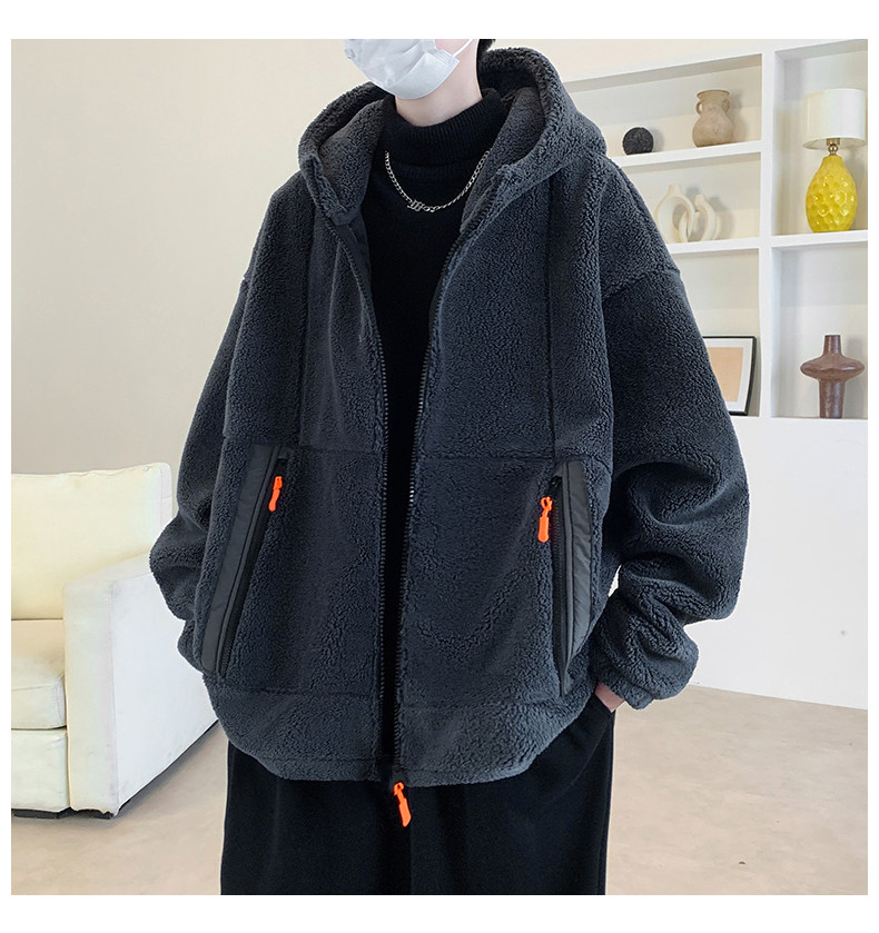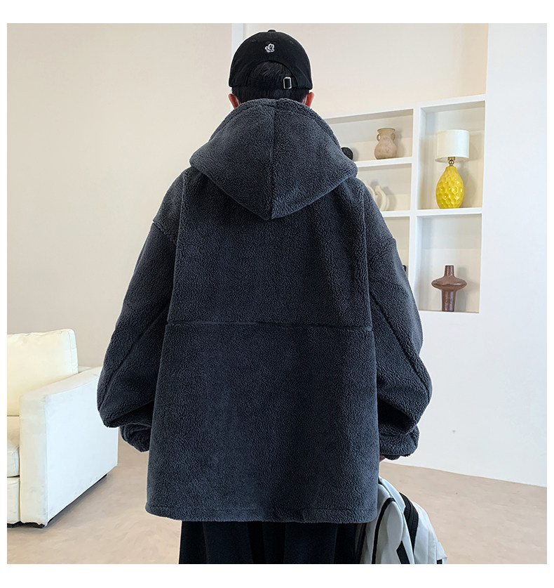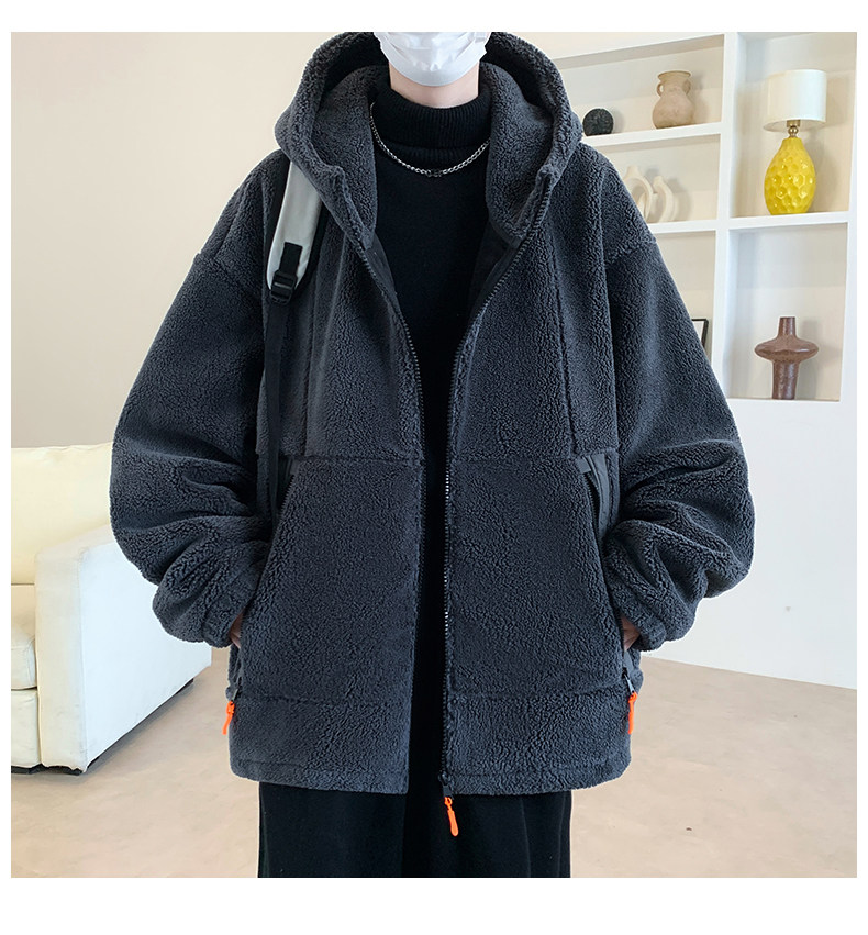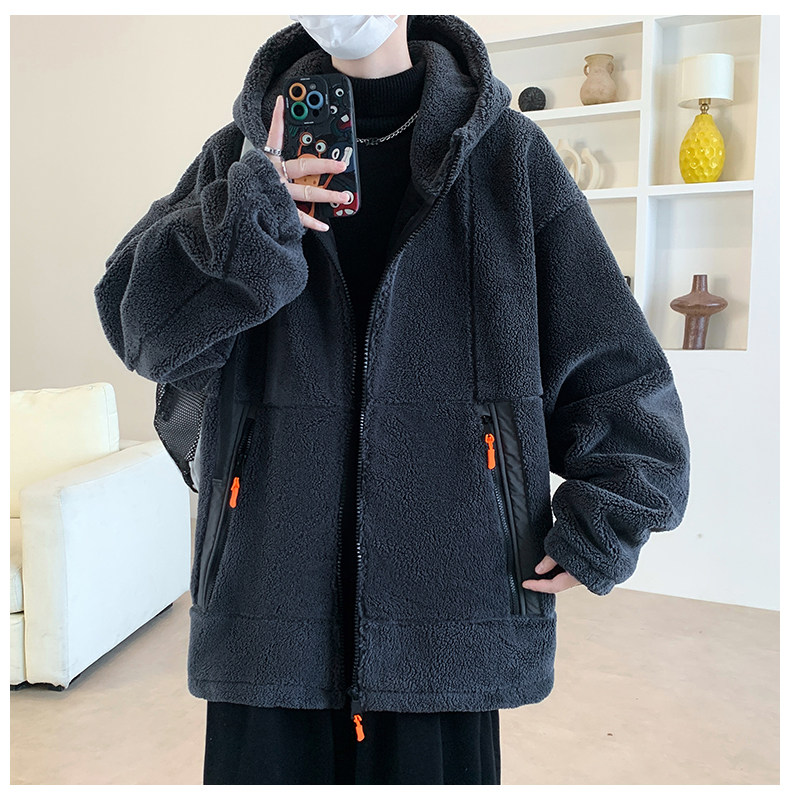 Lamb fleece jacket men's autumn and winter velvet thickened jacket cotton jacket men's hooded trendy brand warm and cold-proof clothes