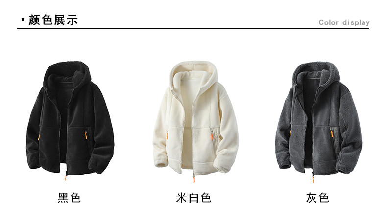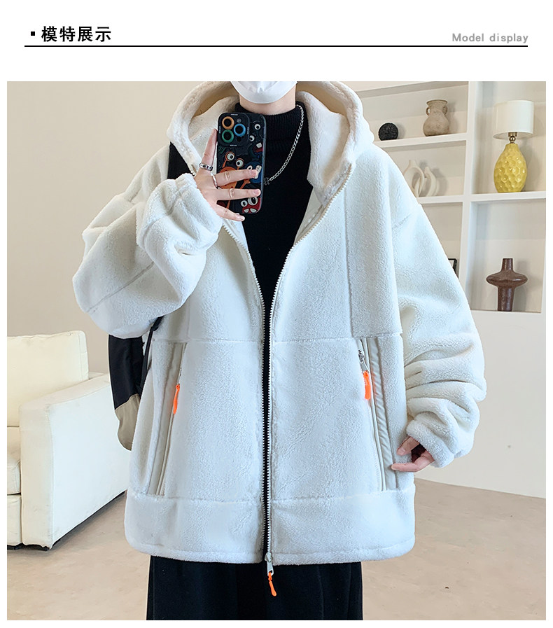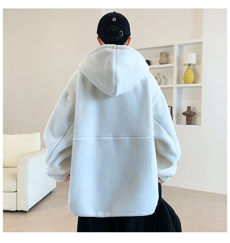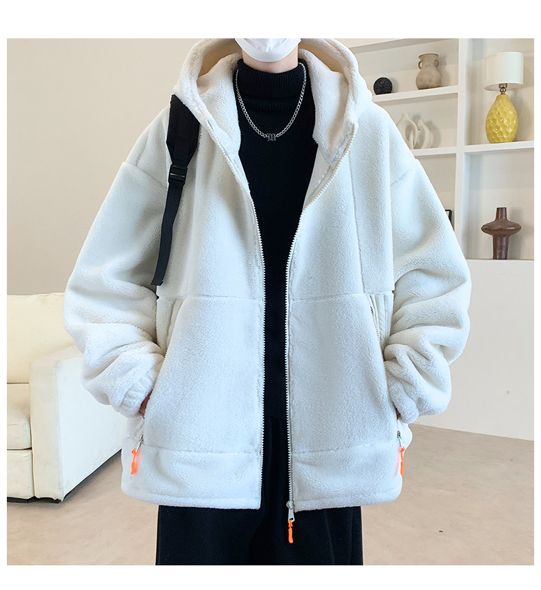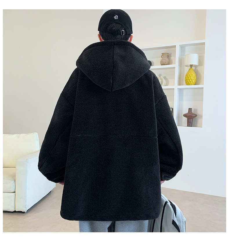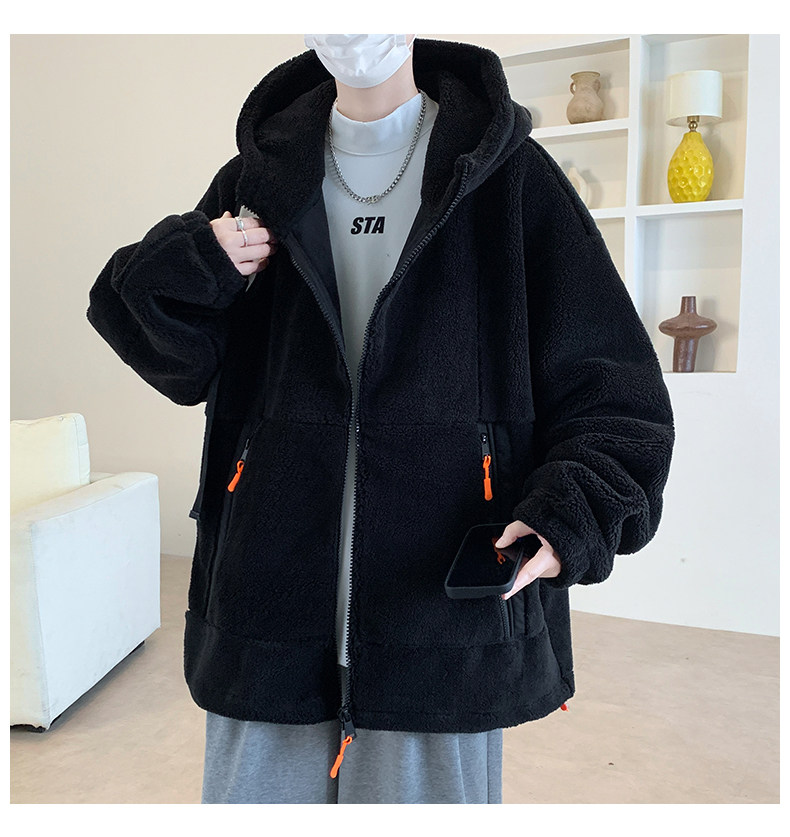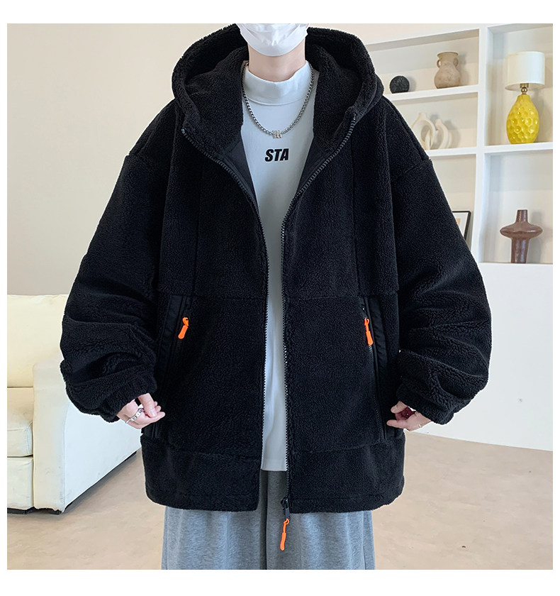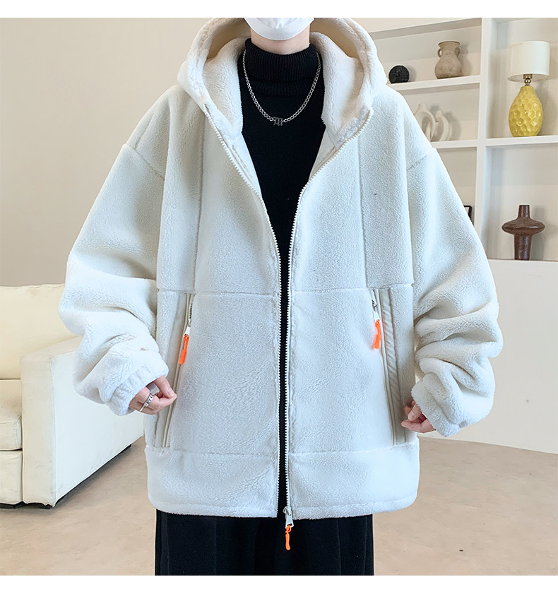 Lamb fleece jacket men's autumn and winter velvet thickened jacket cotton jacket men's hooded trendy brand warm and cold-proof clothes