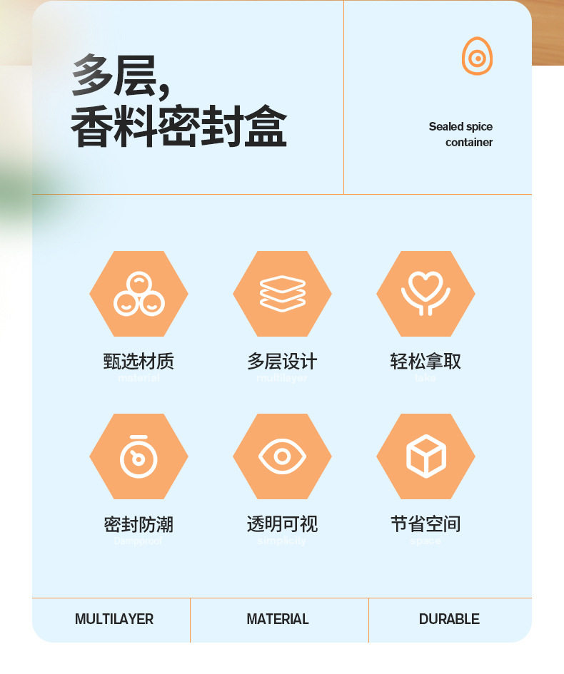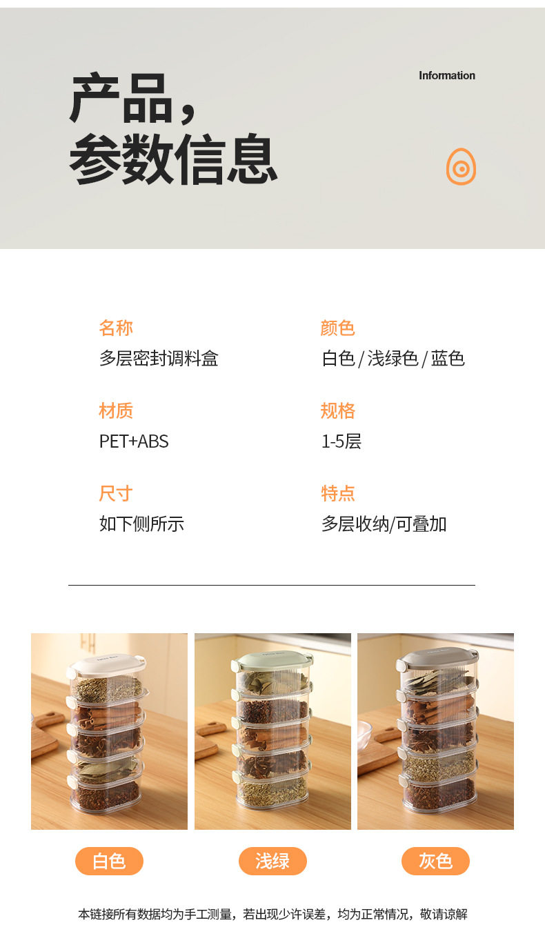Color Classification [Milky White]Single Layer Spice Box,[Milky White]Two-Layer Spice Box,[Milky White]Three-Layer Spice Box,[Milky White]Four-Layer Spice Box,[Fruit Green]Four-Layer Spice Box,[Gray Brown]Four-Layer Spice Box,[Milky White]Five-Layer Spice Box,[Fruit Green]Five-Layer Spice Box,[Gray Brown]Five-Layer Spice Box,Warm Gray 3 Layers[Stacked Storage, Sealed and Moisture-Proof],Warm Gray 4 Layers[Stacked Storage, Sealed and Moisture-Proof],Warm Gray 5 Layers[Stacked Storage, Sealed and Moisture-Proof]