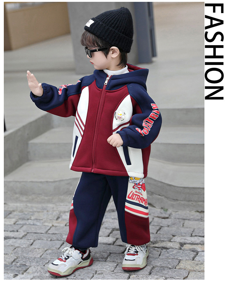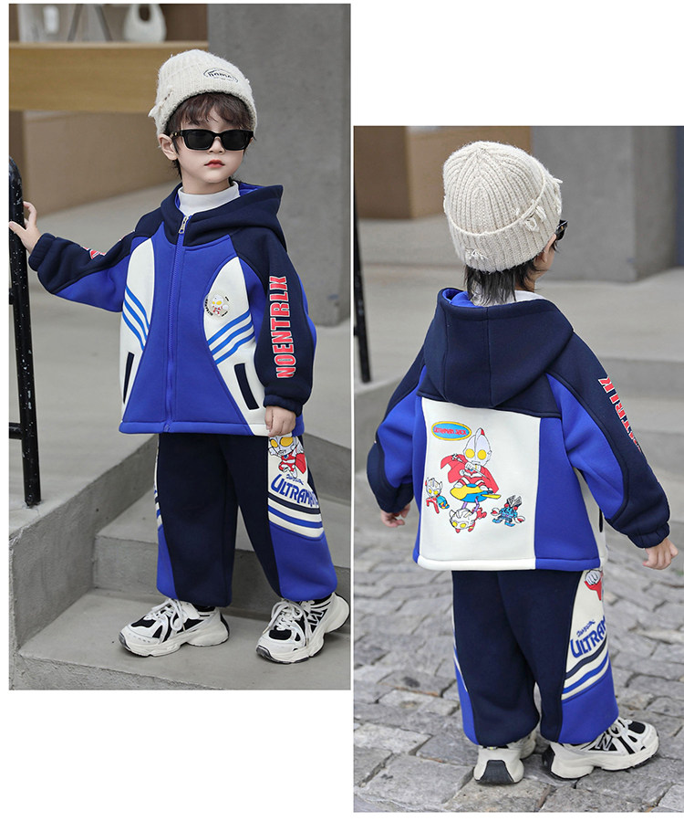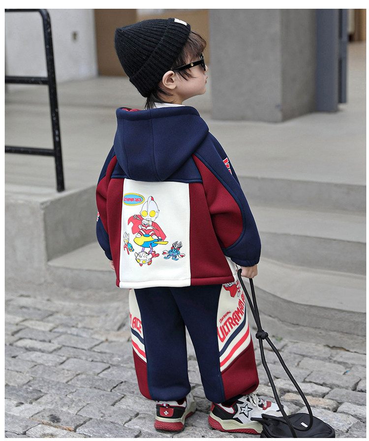 Ultraman Zero Clothing for Boys, Fleece-Lined Suit, Autumn and Winter Wear, 2025 New Model, Children's Superhero Thickened Stylish Children's Clothing