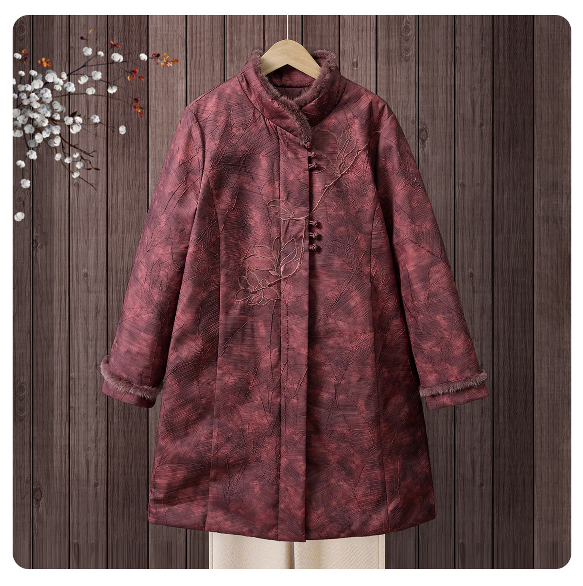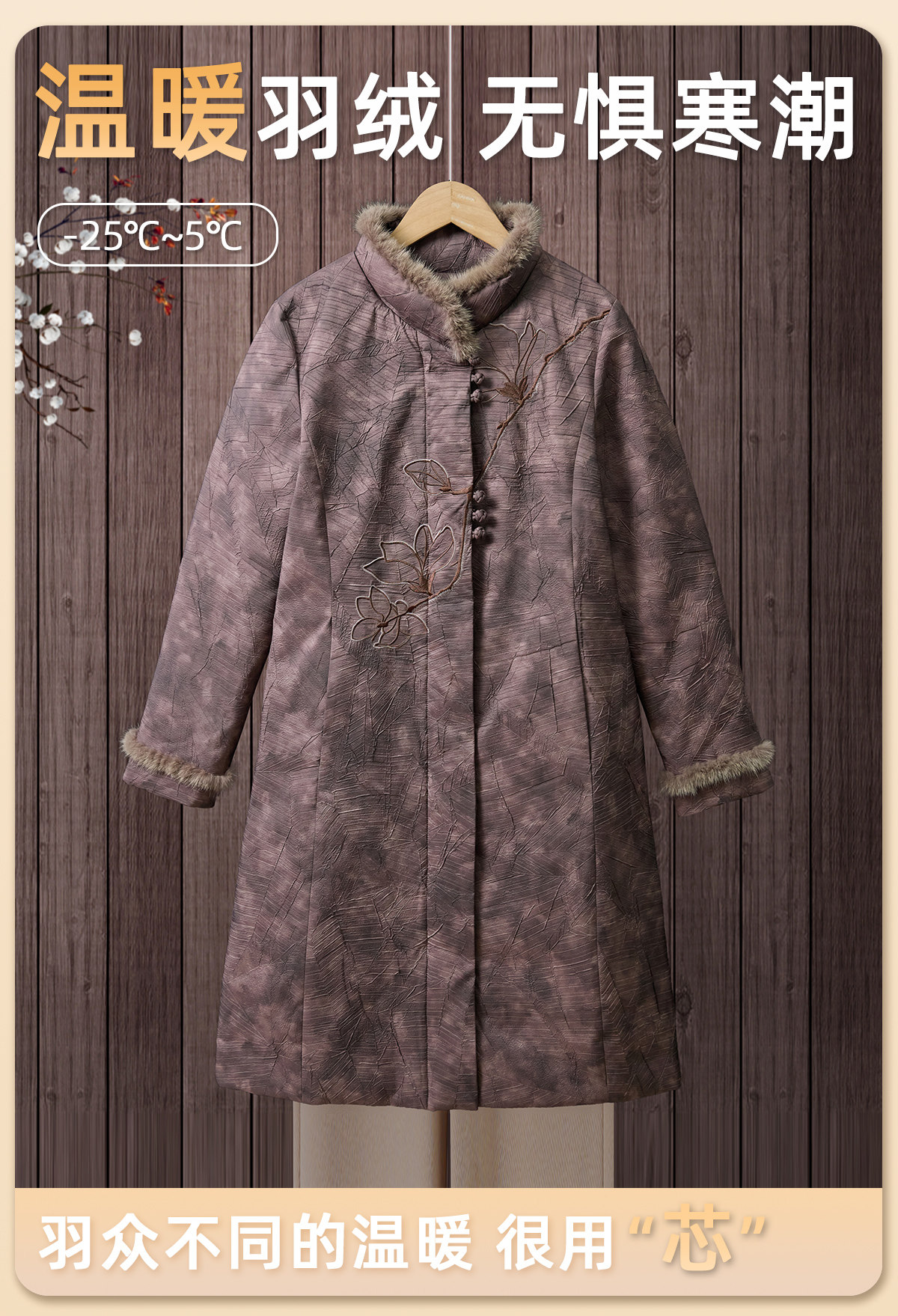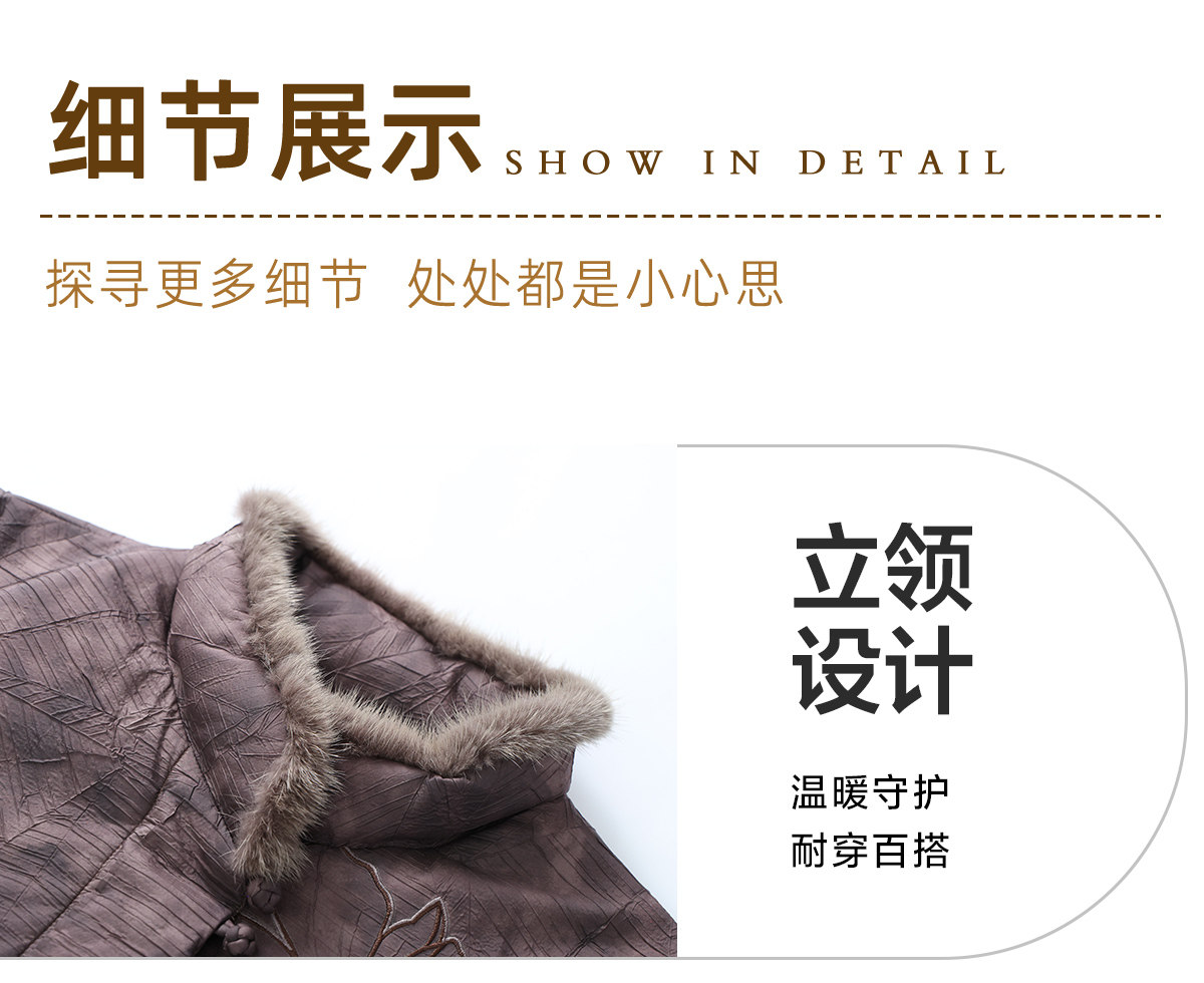 Yalu 2025 new winter style mid-length down jacket with stand collar and warm Chinese style embroidered fur collar jacket for middle-aged and elderly women