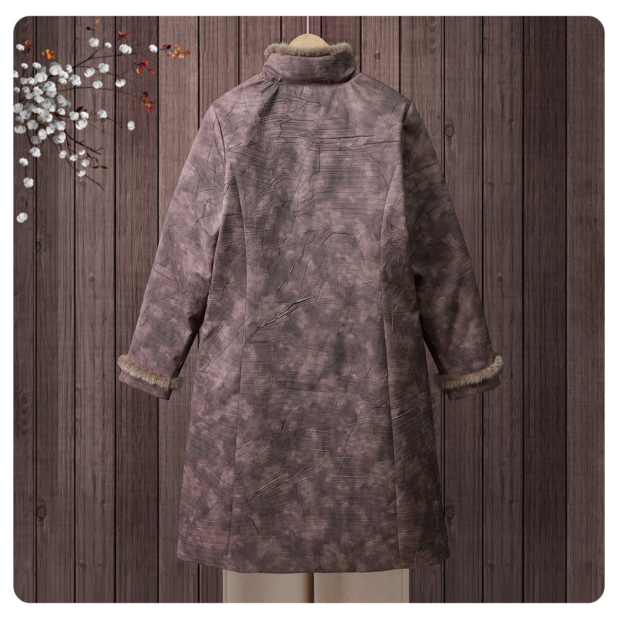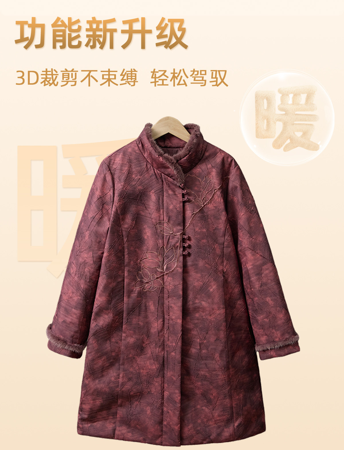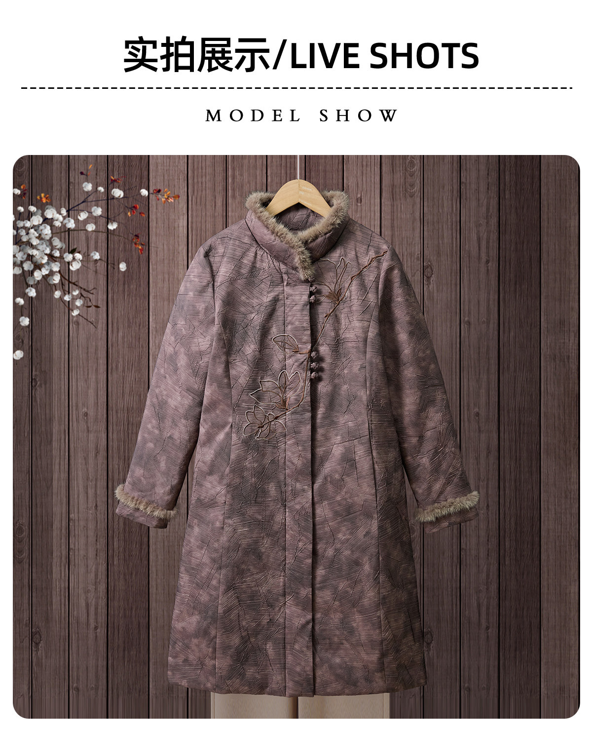 Yalu 2025 new winter style mid-length down jacket with stand collar and warm Chinese style embroidered fur collar jacket for middle-aged and elderly women