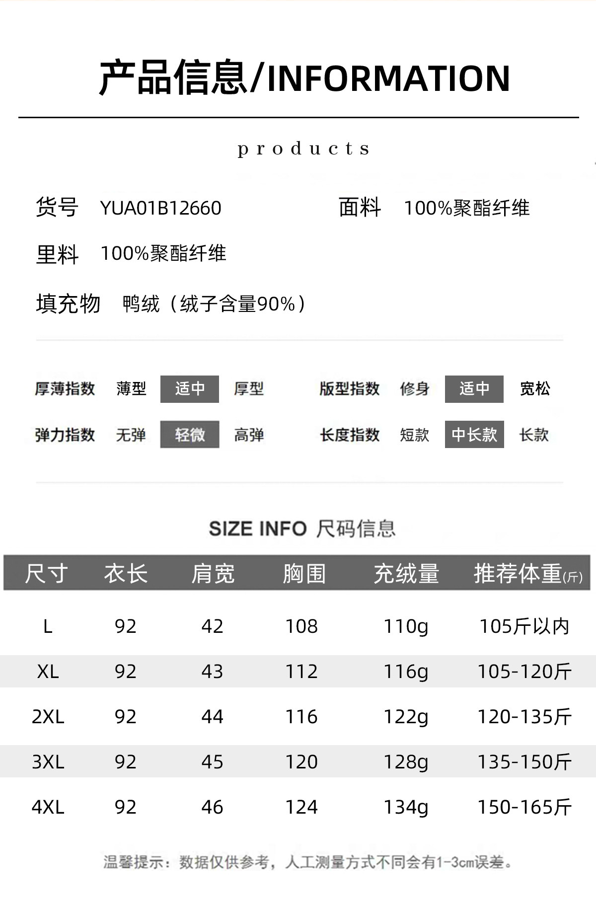Fleece filling amount (g) 145-169g
