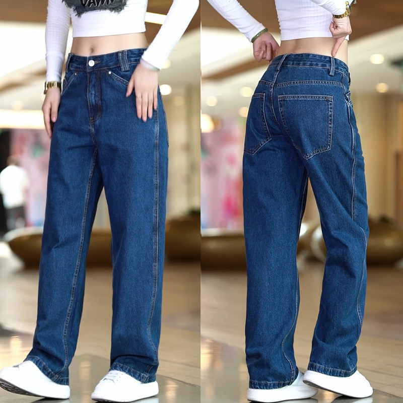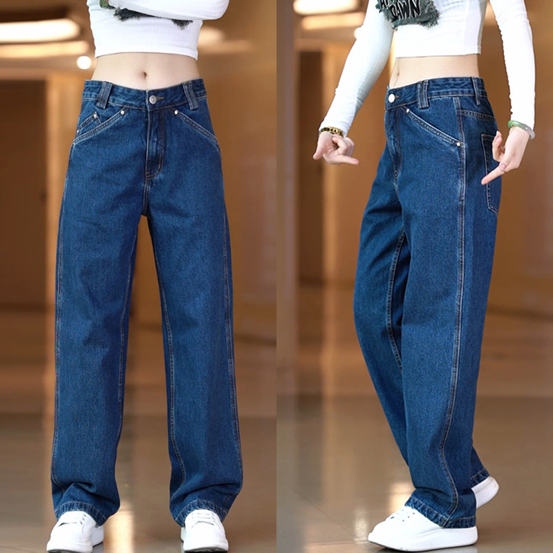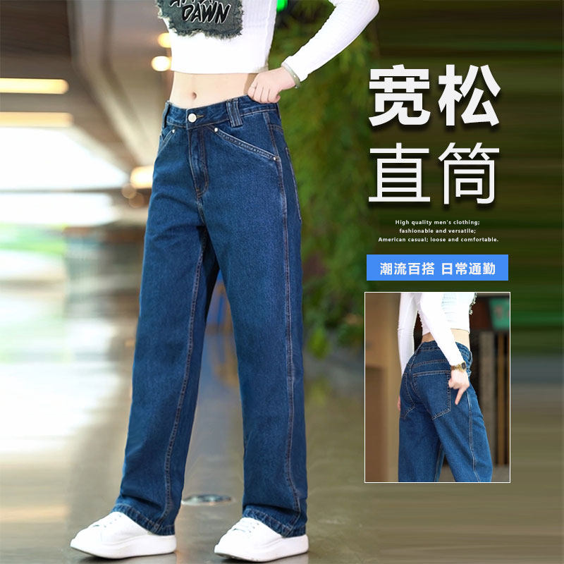 Men's jeans 2025 new cleanfit washed casual straight pants American high street loose wide leg trousers