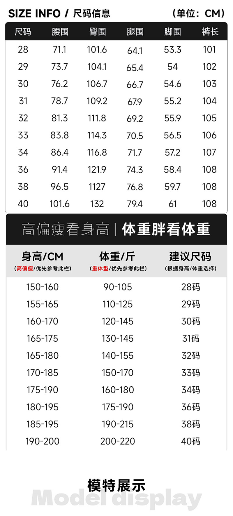 Outseam (cm) 99 cm 101.5 cm 104 cm 106.5 cm 109 cm