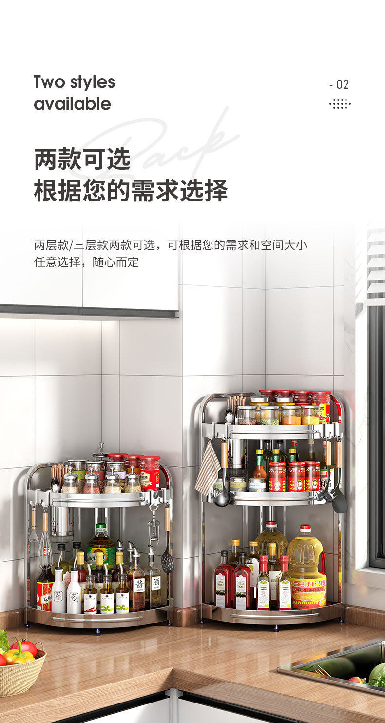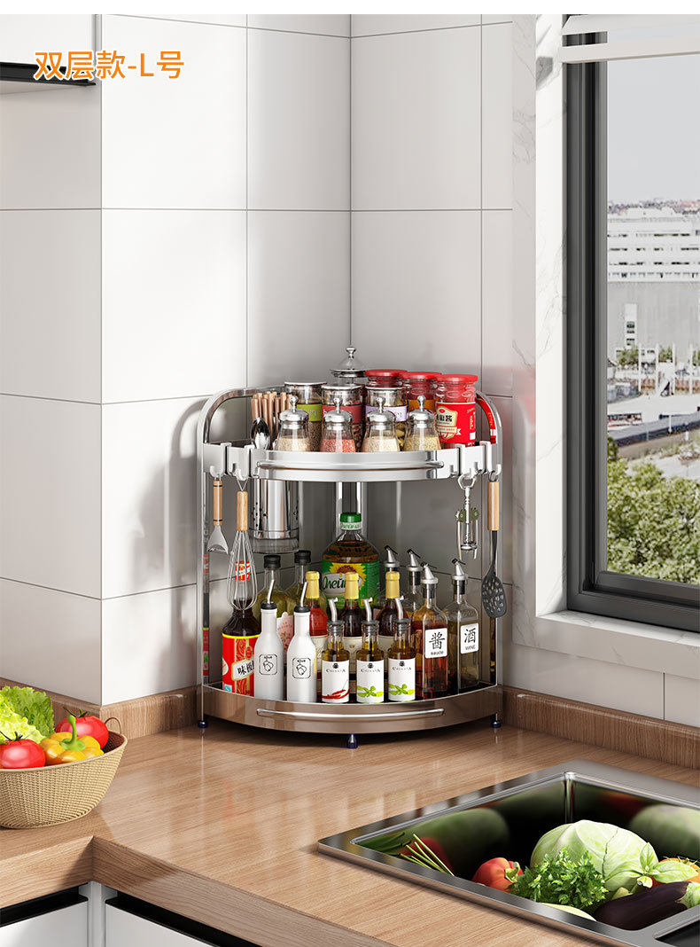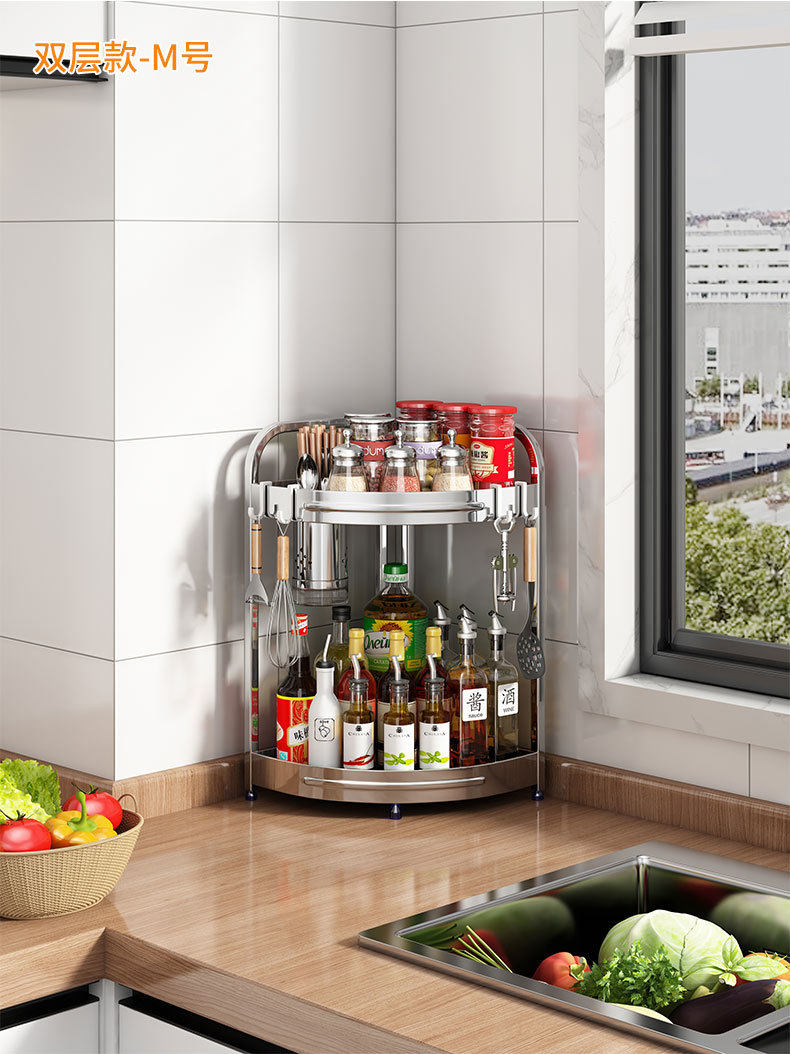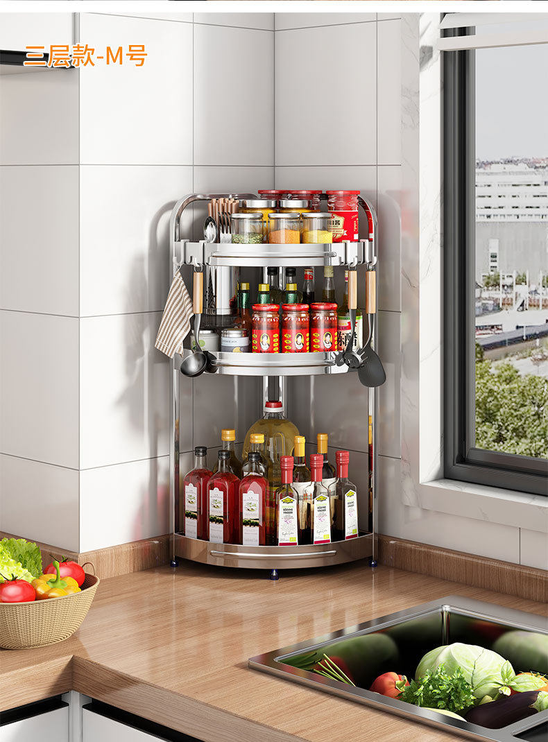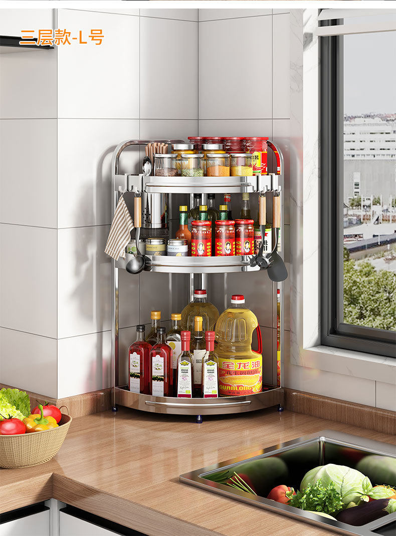 Stainless steel kitchen corner storage rack oil, salt, sauce, vinegar tripod, seasoning supplies, wall corner storage knife holder