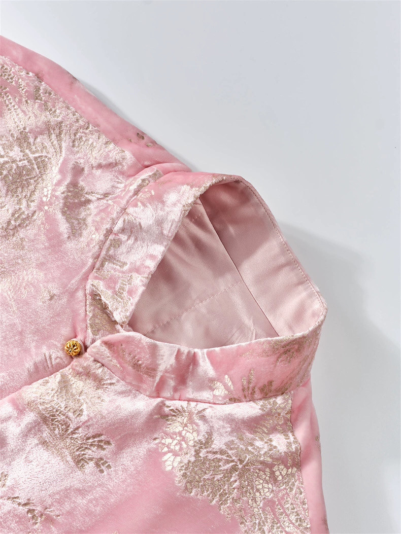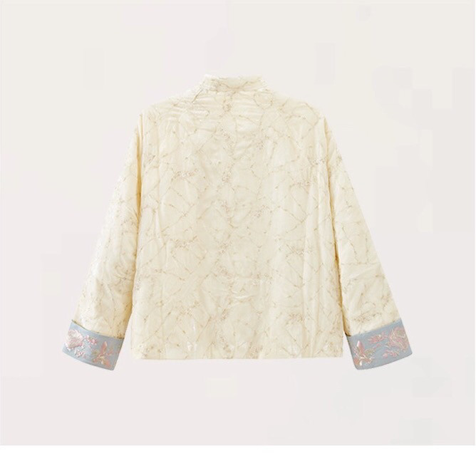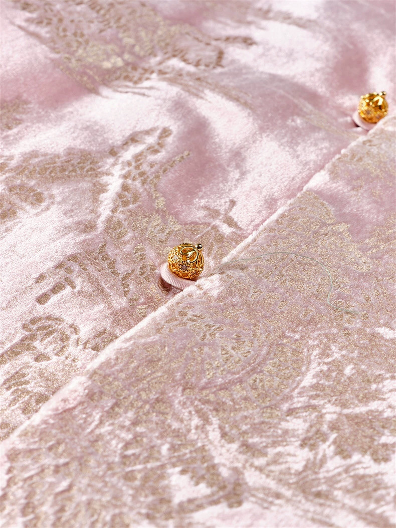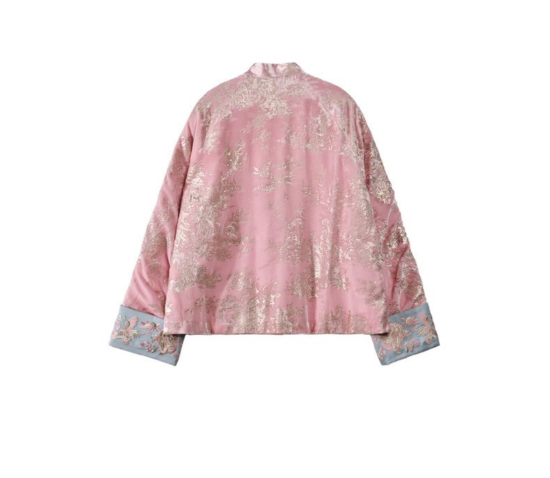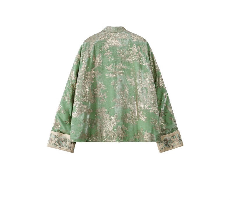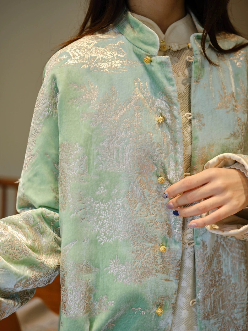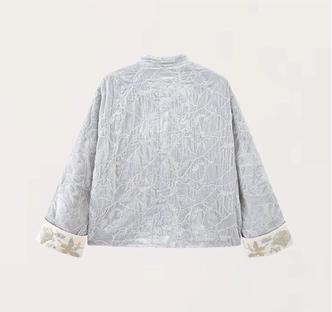 2025 Autumn/Winter New Chinese Style Poetic Oriental Gold Embossed Silk Velvet/Gold Velvet Embroidered Turn-Up Sleeve Quilted Cotton Jacket
