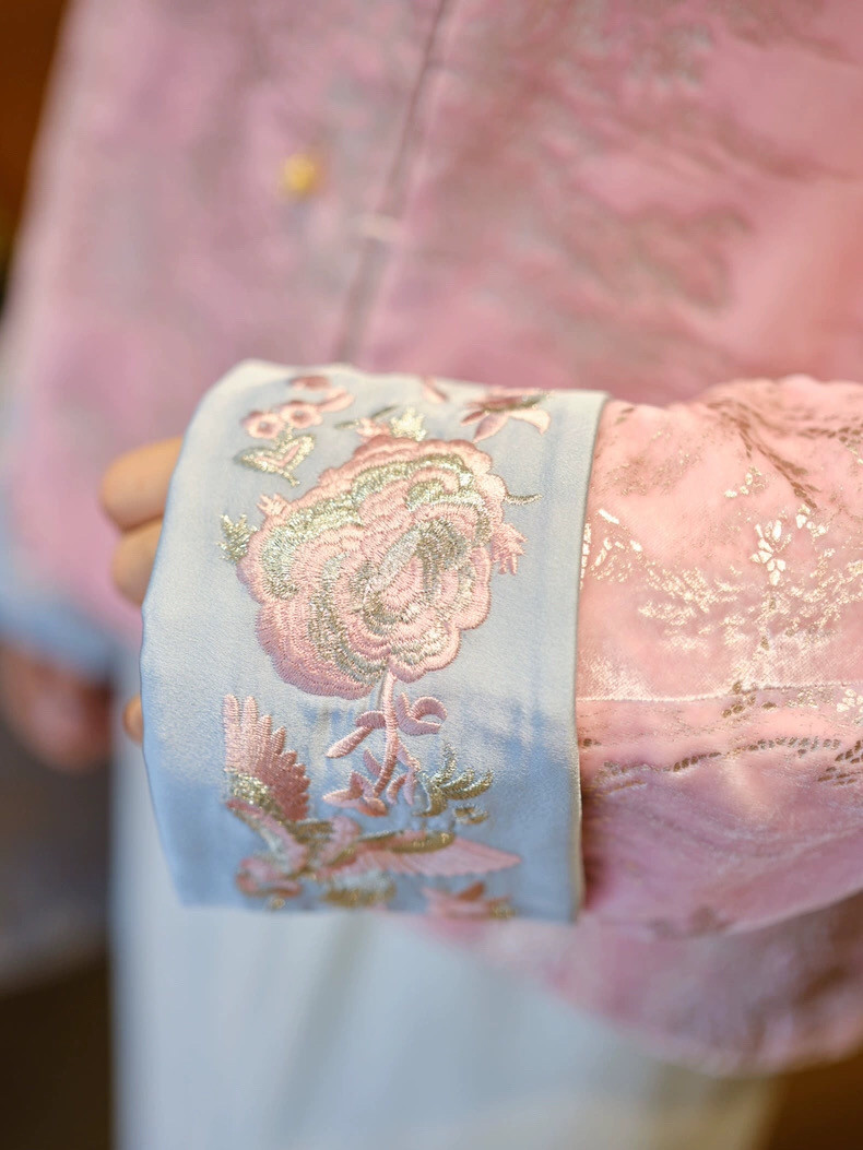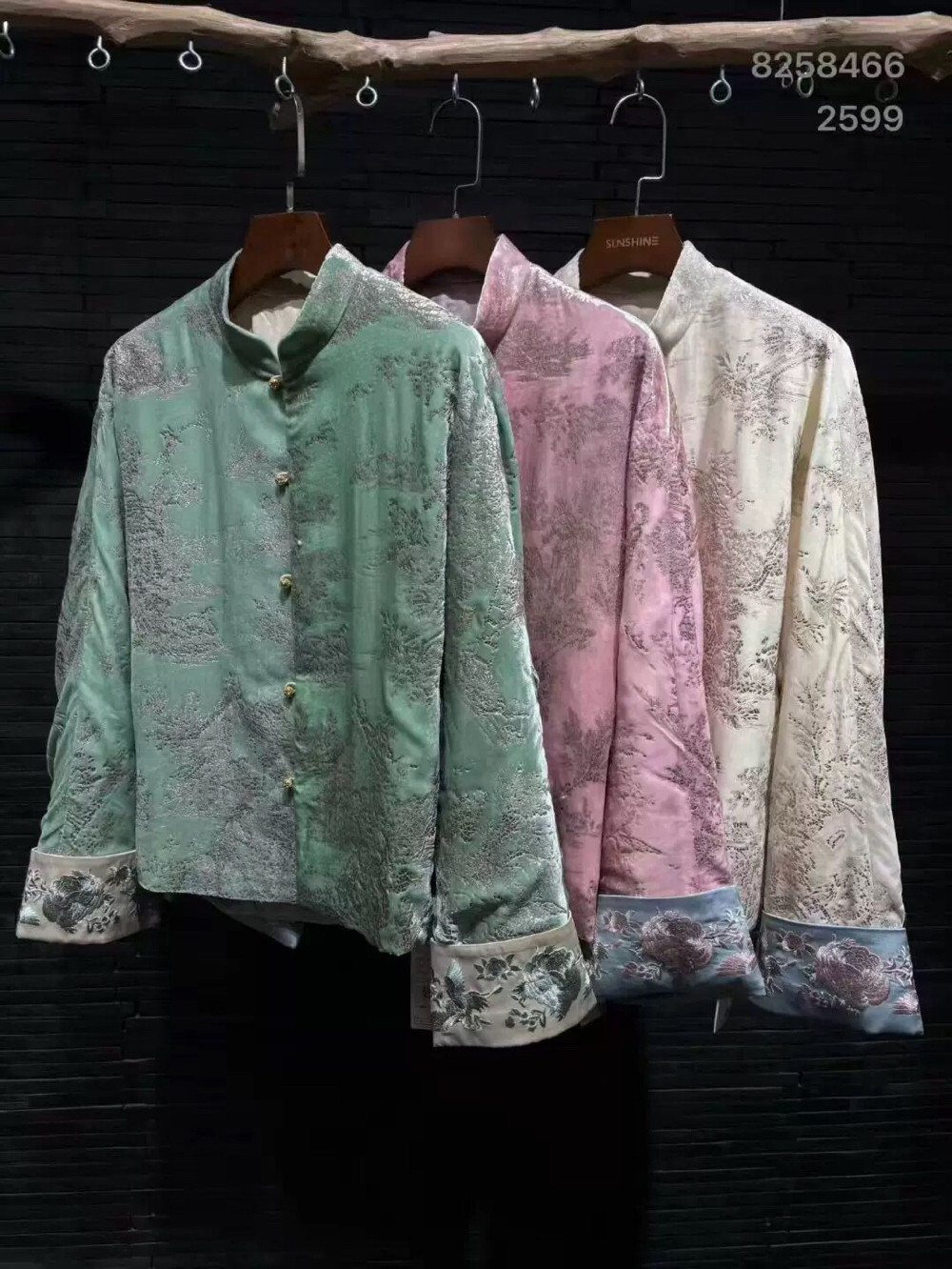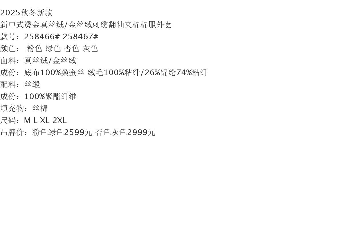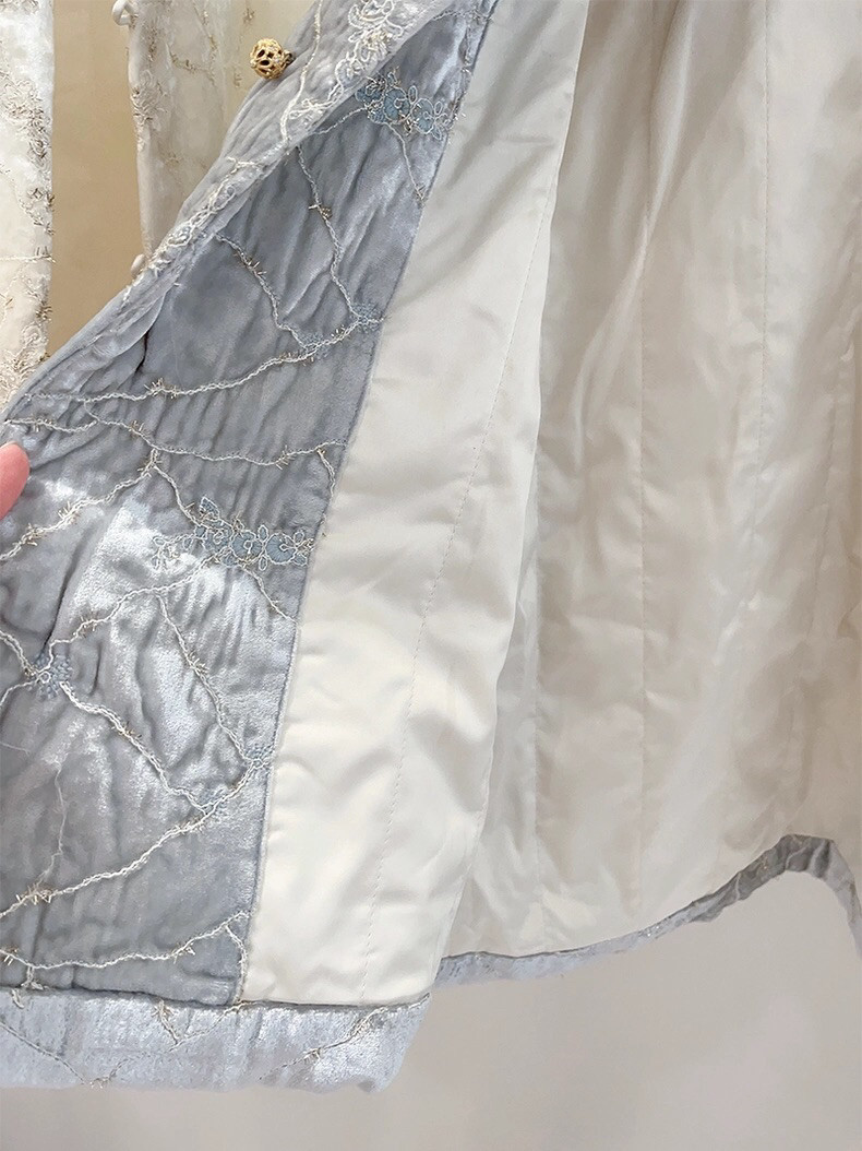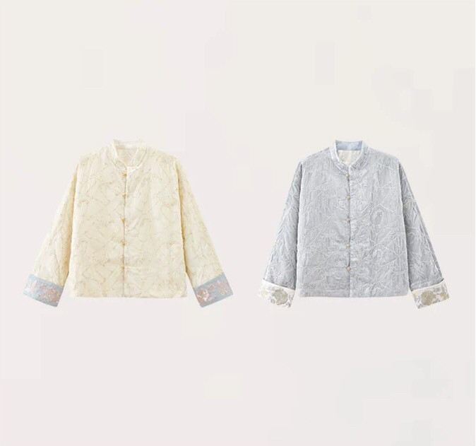 2025 Autumn/Winter New Chinese Style Poetic Oriental Gold Embossed Silk Velvet/Gold Velvet Embroidered Turn-Up Sleeve Quilted Cotton Jacket
