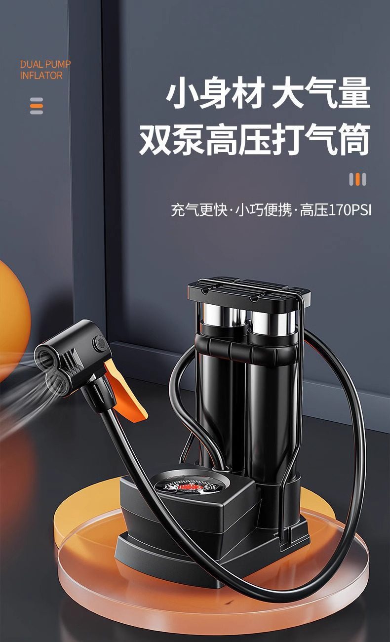 Foot-Operated Pump for Bicycles, Cars, Multi-Functional High-Pressure Air Pump for Home Use, Electric Motorcycles, Portable