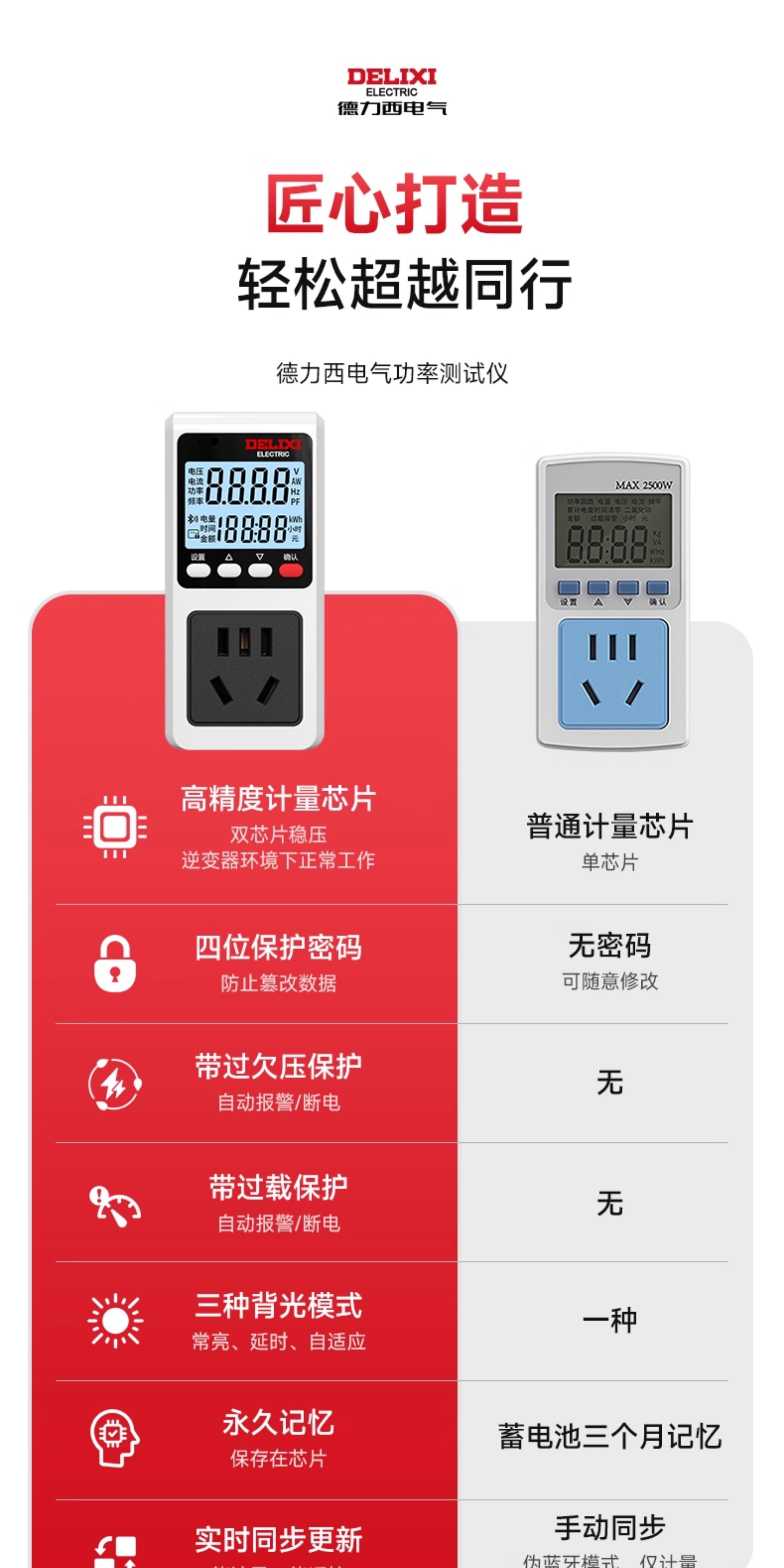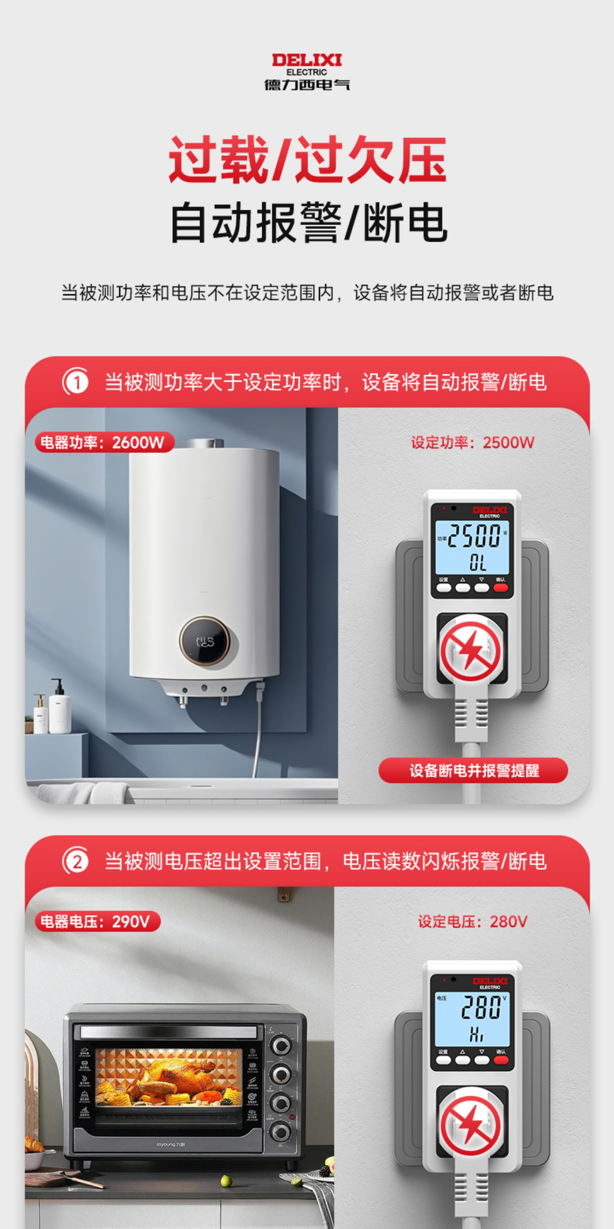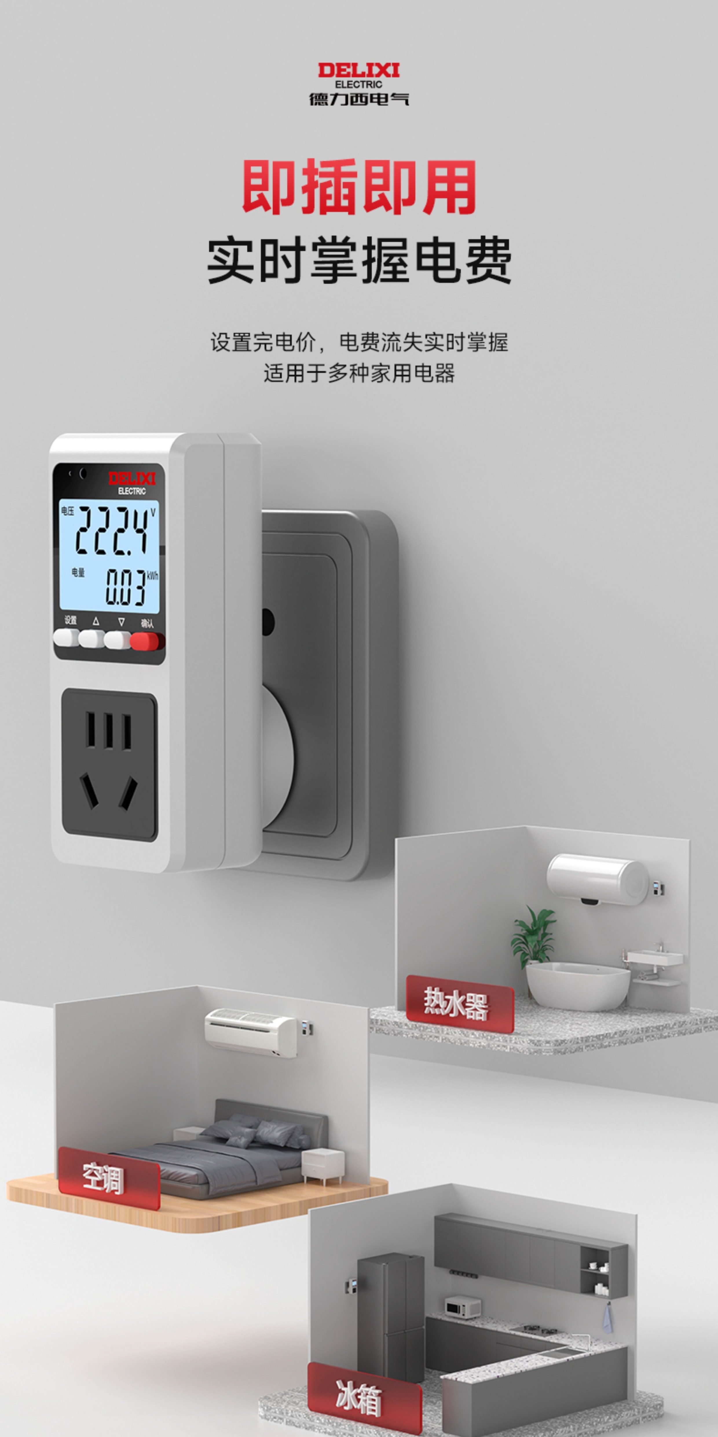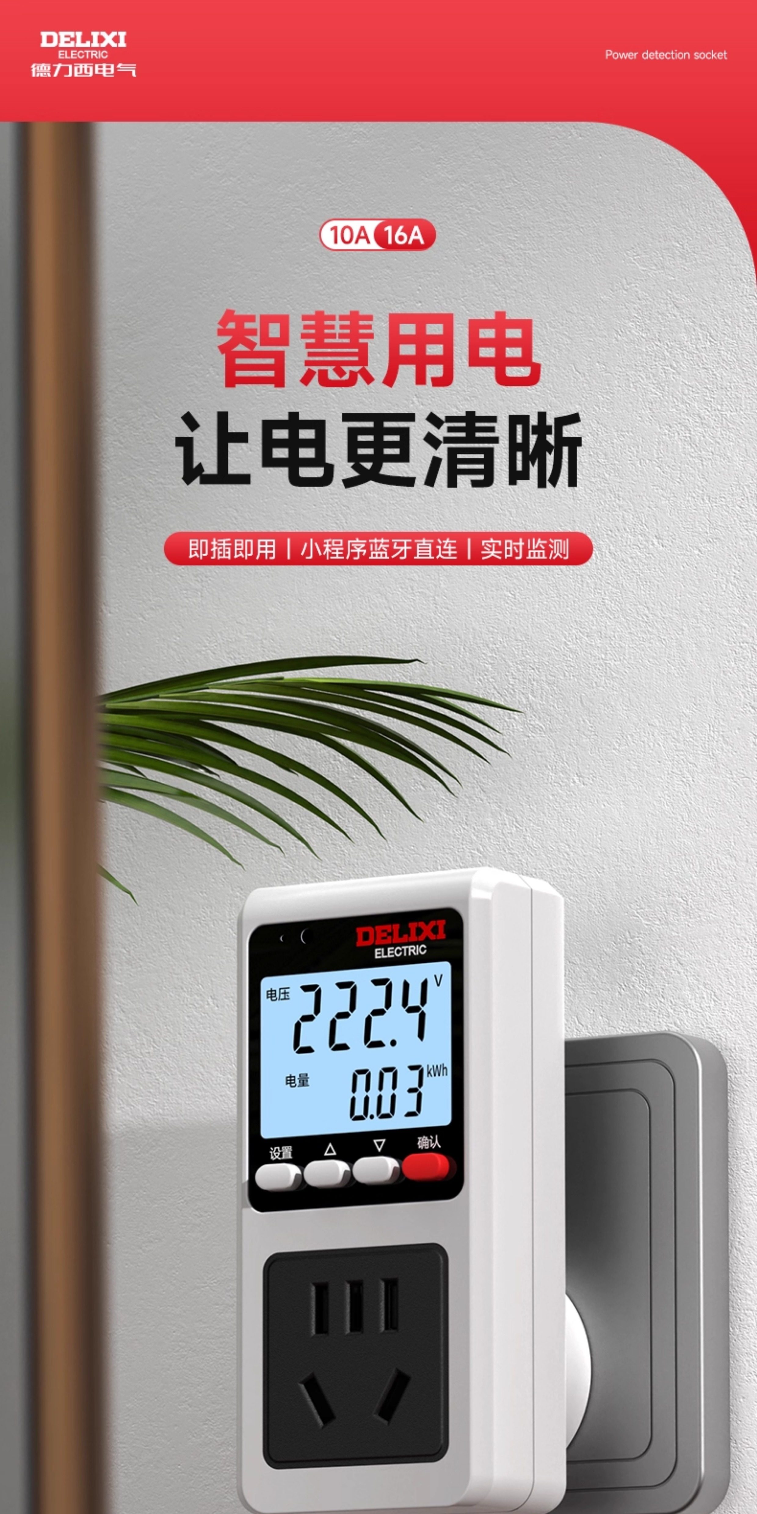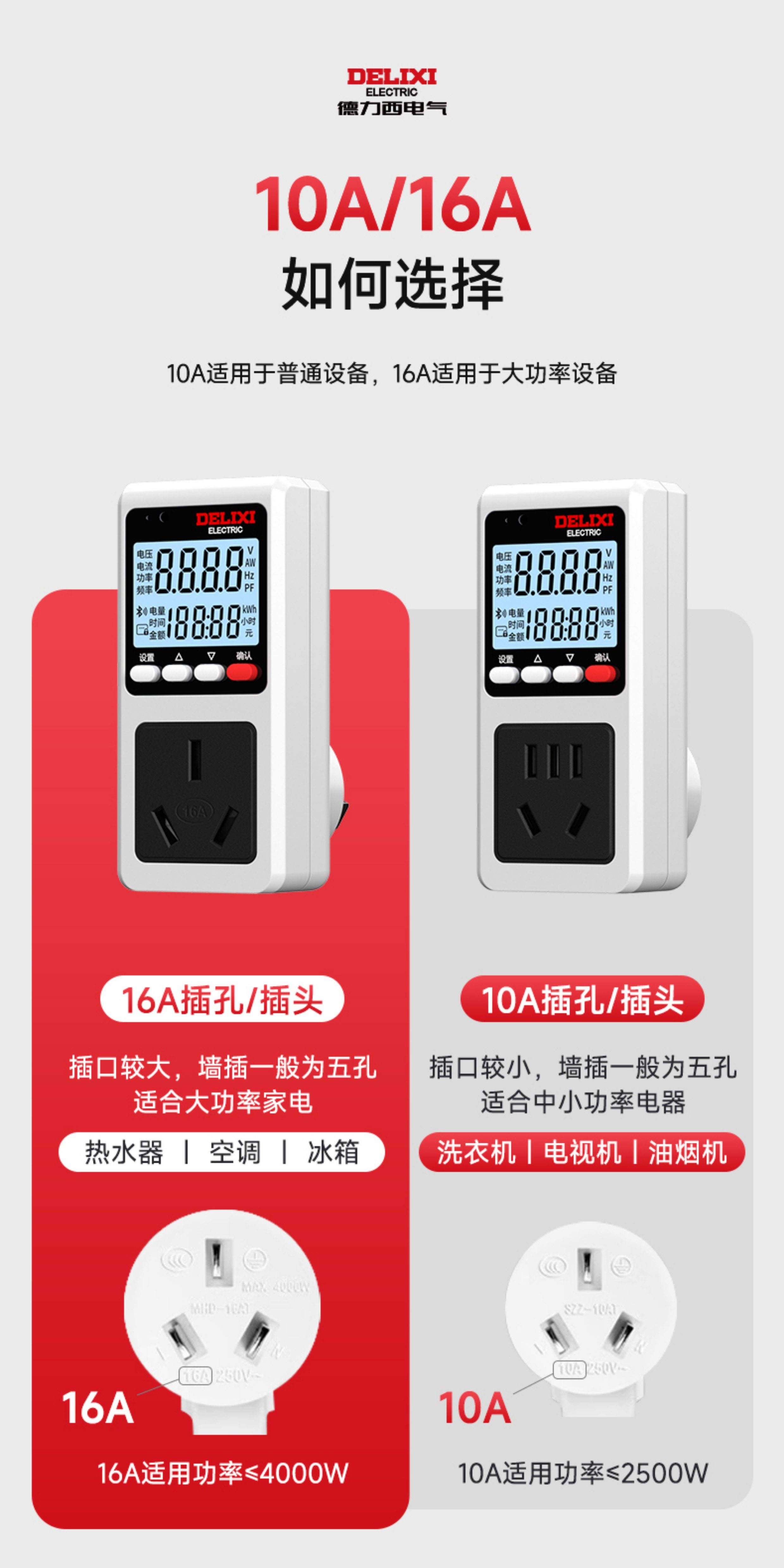 Delixi Electricity Metering Socket Electricity Meter Household Electricity Meter Monitoring Air Conditioner Power Consumption Power Tester