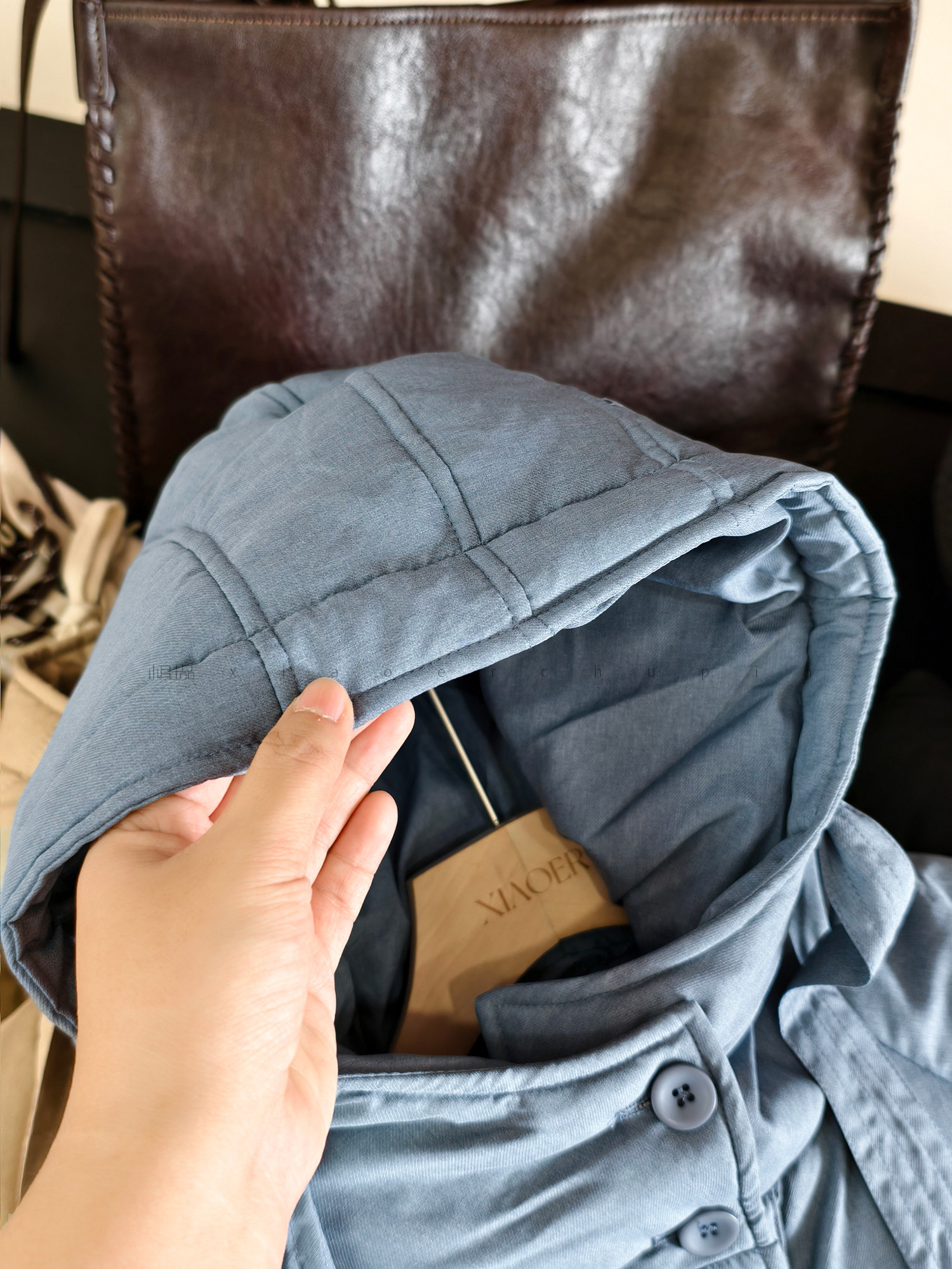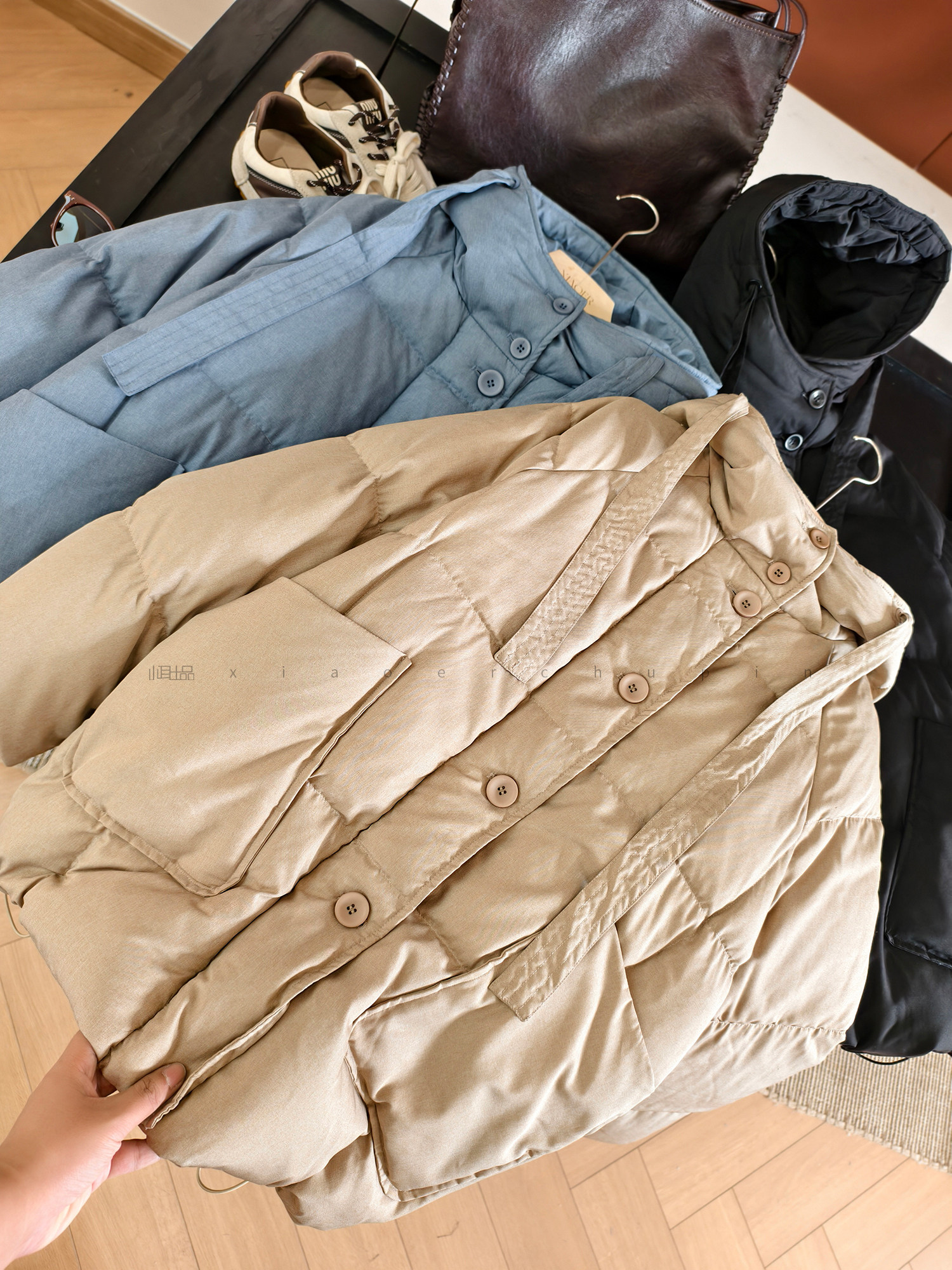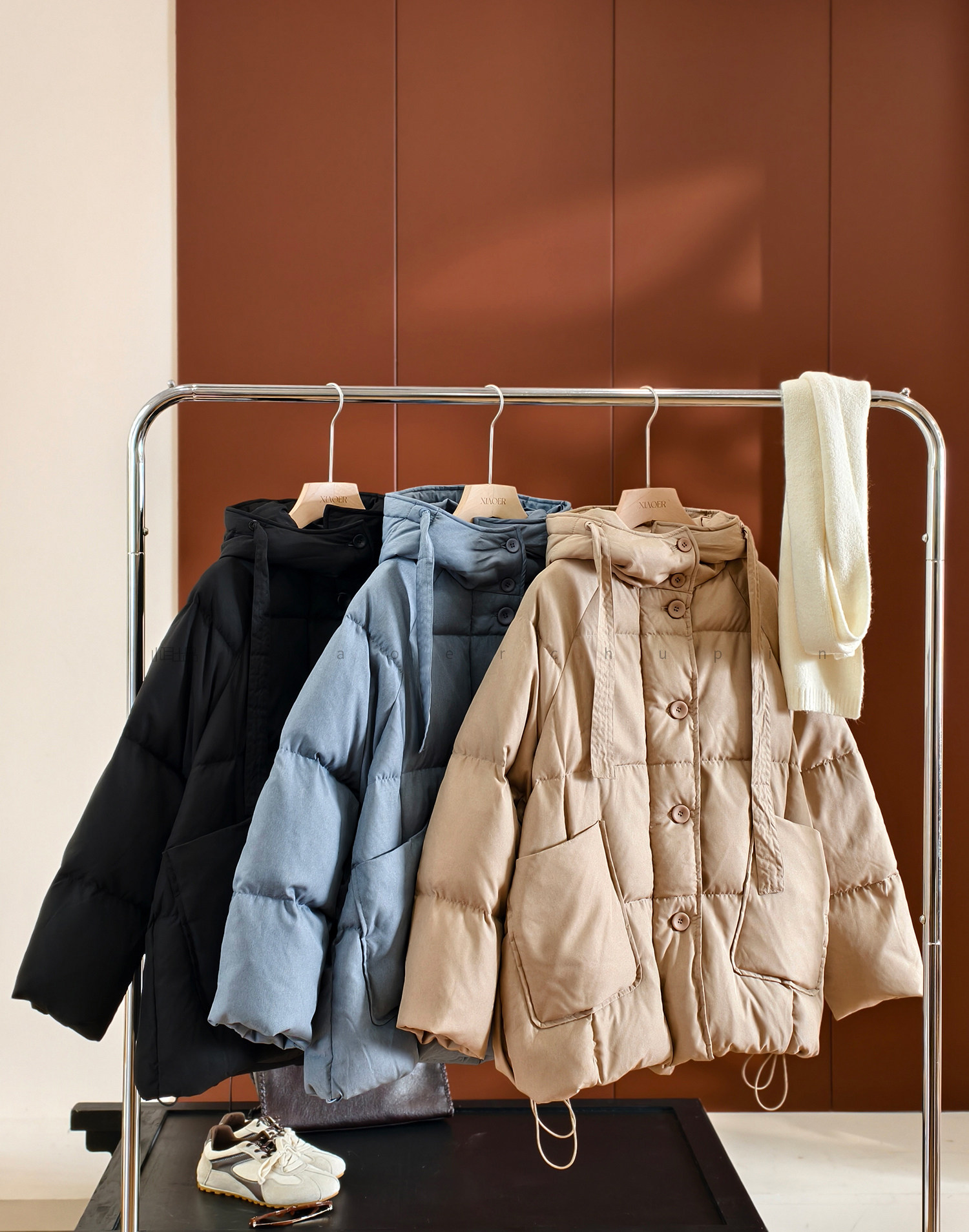 Produced by Xiaoer, thickened cotton-feel windproof fabric/90 white duck down/raglan sleeves, hooded drawstring down jacket with large pockets