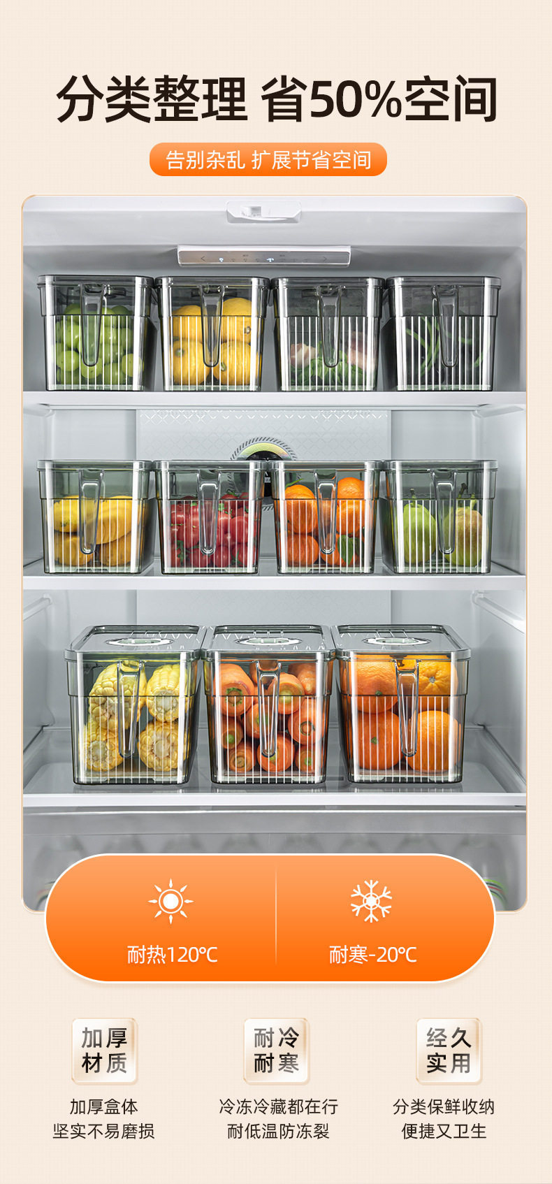 Food-Grade Refrigerator Storage Box, Fresh-Keeping Box, Special Organizer for Kitchen Vegetables and Fruits, Frozen Egg and Dumpling Box