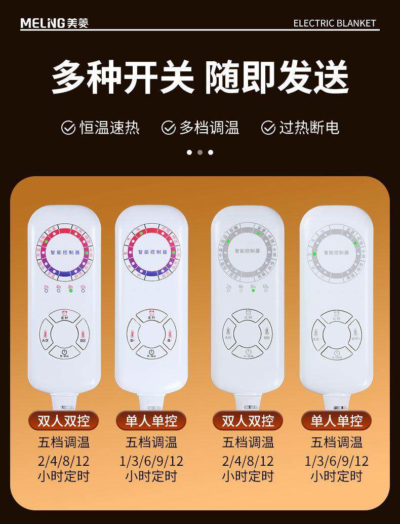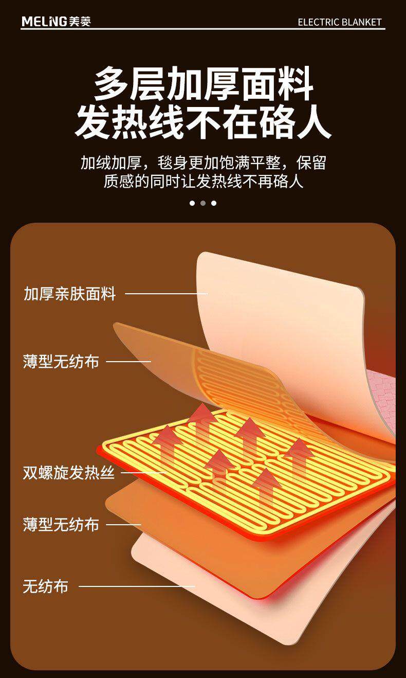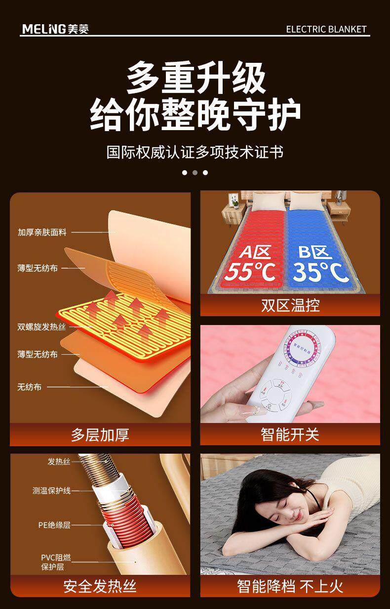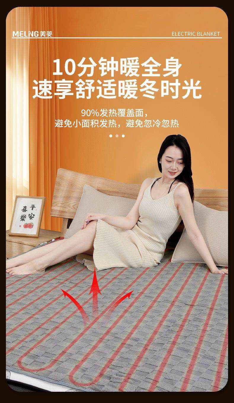Meiling Electric Blanket Single/Double Dual-Control Electric Mattress Pad Enlarged 2m Beauty Bed Student Dormitory Heated Seat Cushion