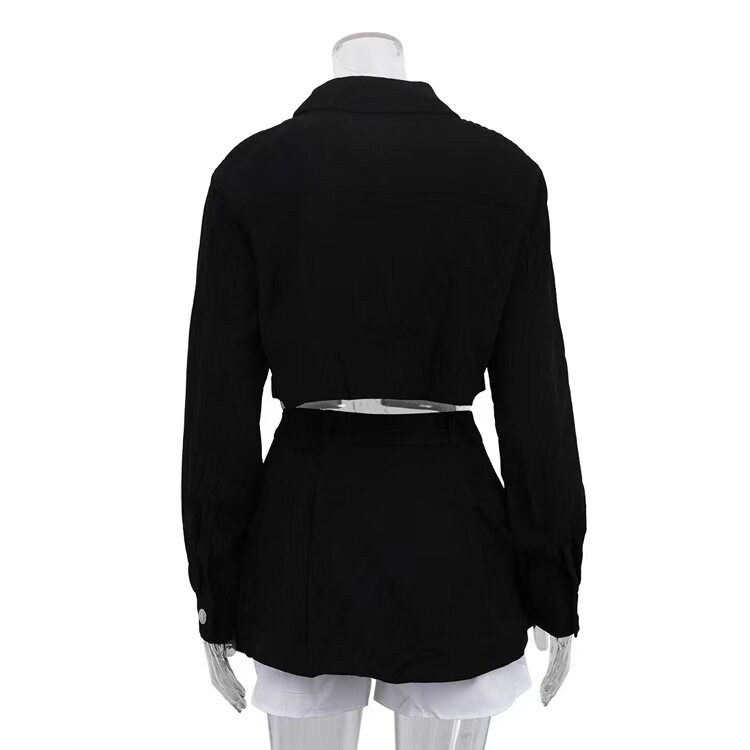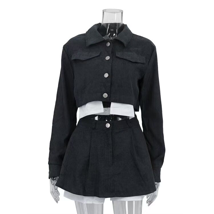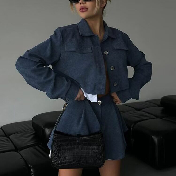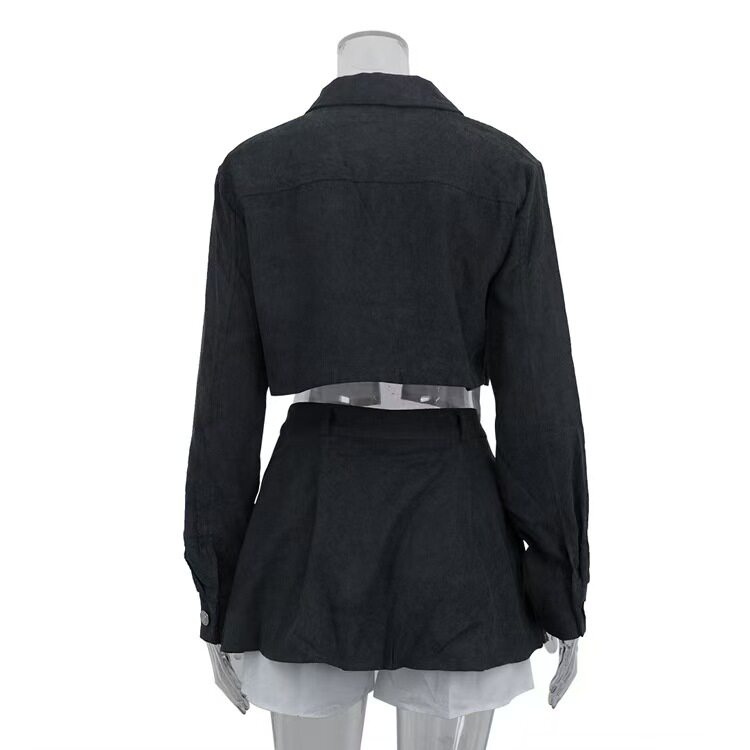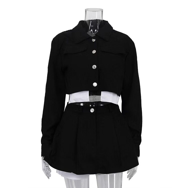 European and American Style New Fashion Lapel Short Top and Color-Blocked Skirt Two-Piece Set