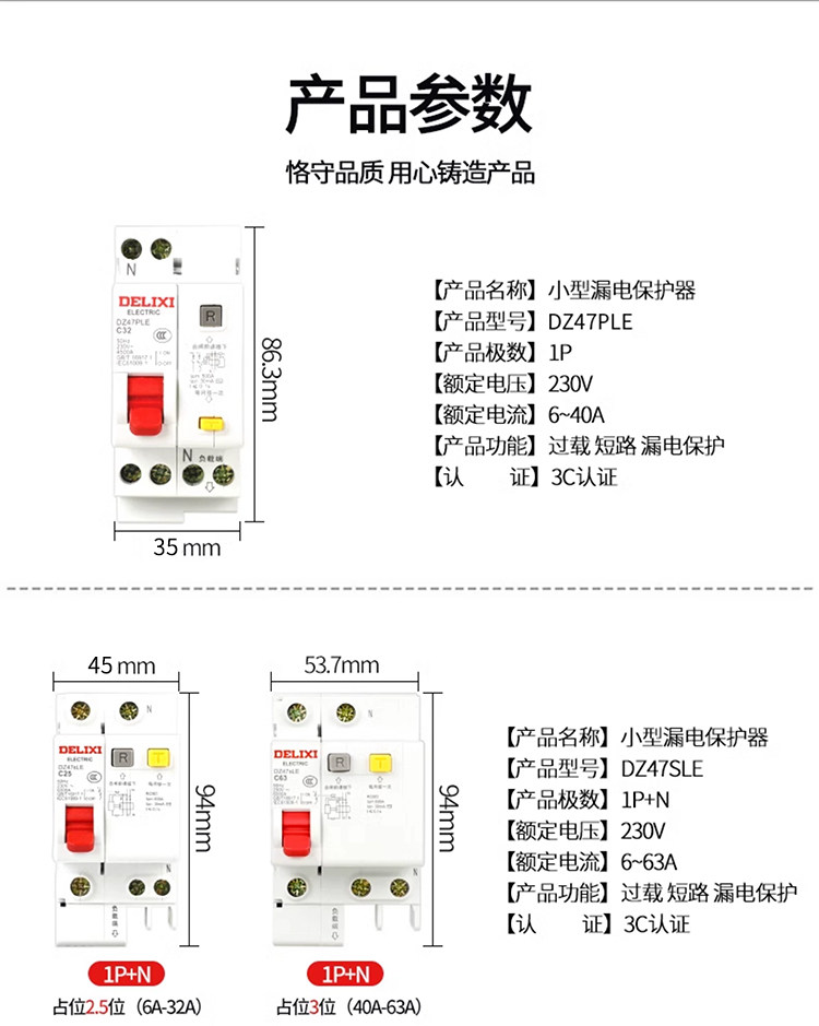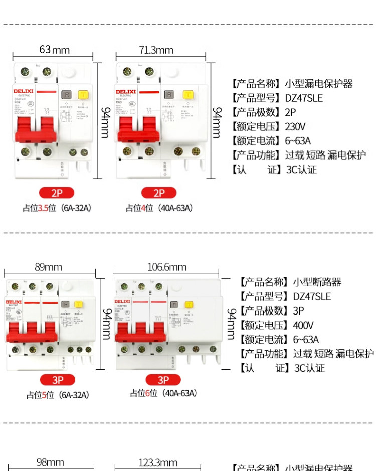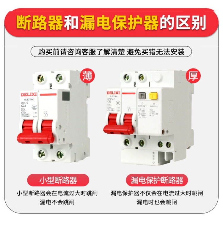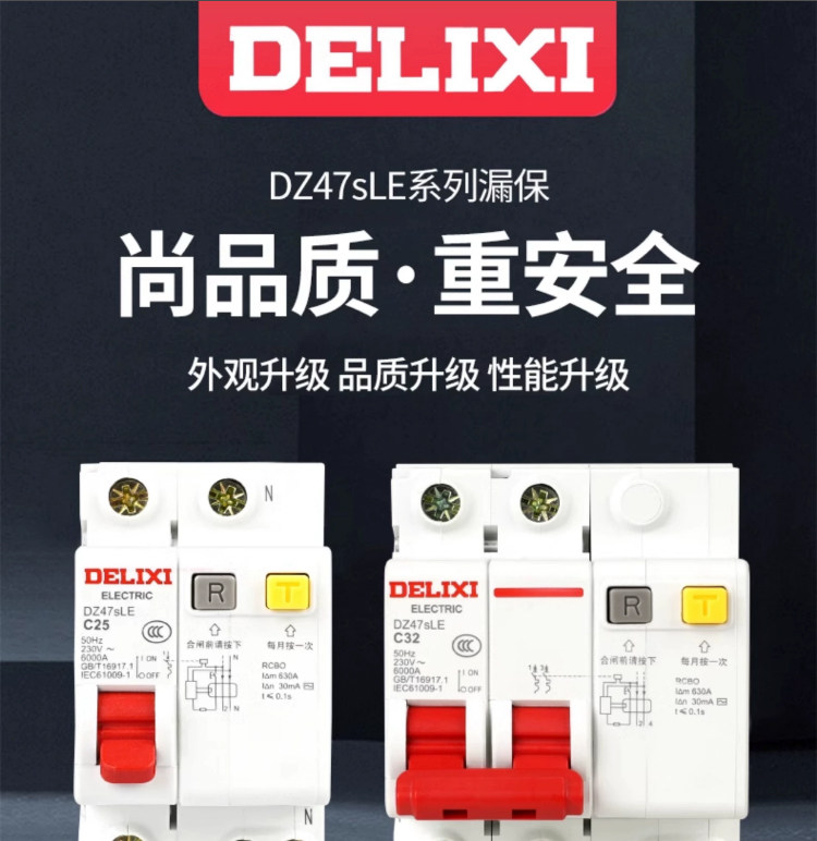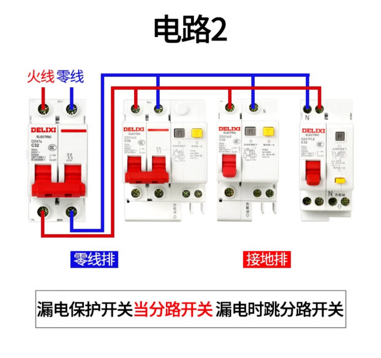 Delixi 2P Circuit Breaker D-Type Leakage Protection Switch 63A Circuit Breaker Leakage Protection 2P 32A Protector for Home Use 220V