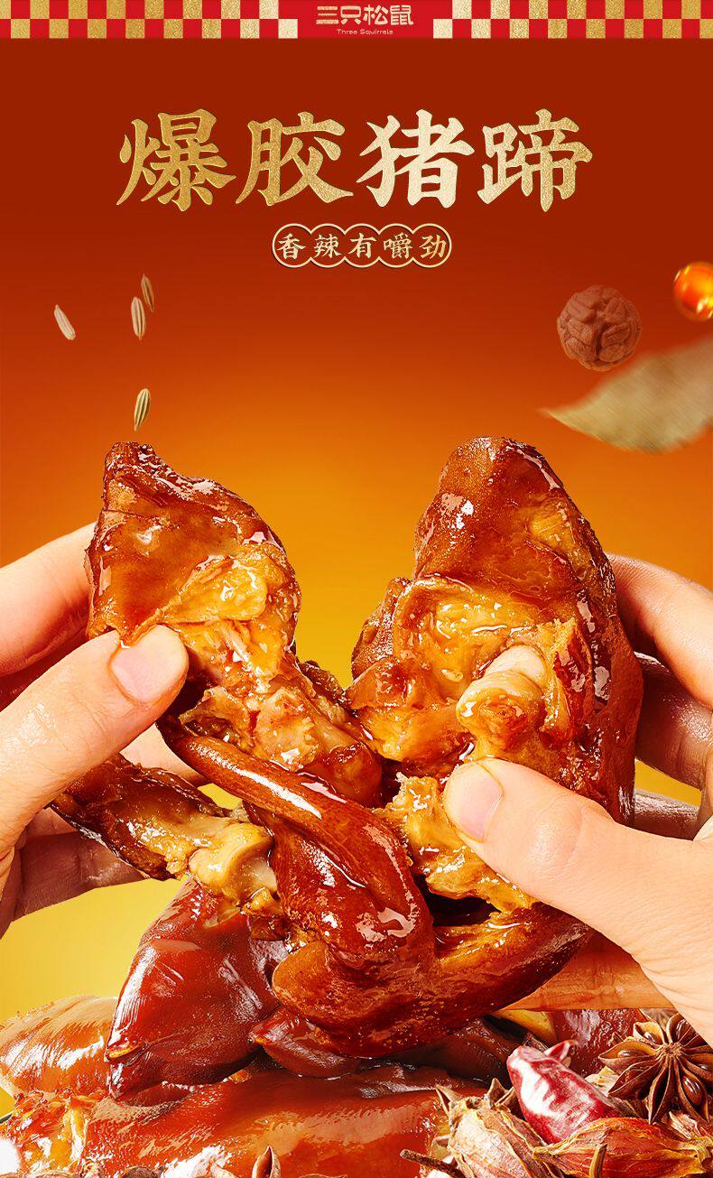 Three Squirrels Spicy Pork Trotters 200g Spicy Flavor Snack Specialty Snack Ready-To-Eat Braised Food Dormitory Late Night Snack
