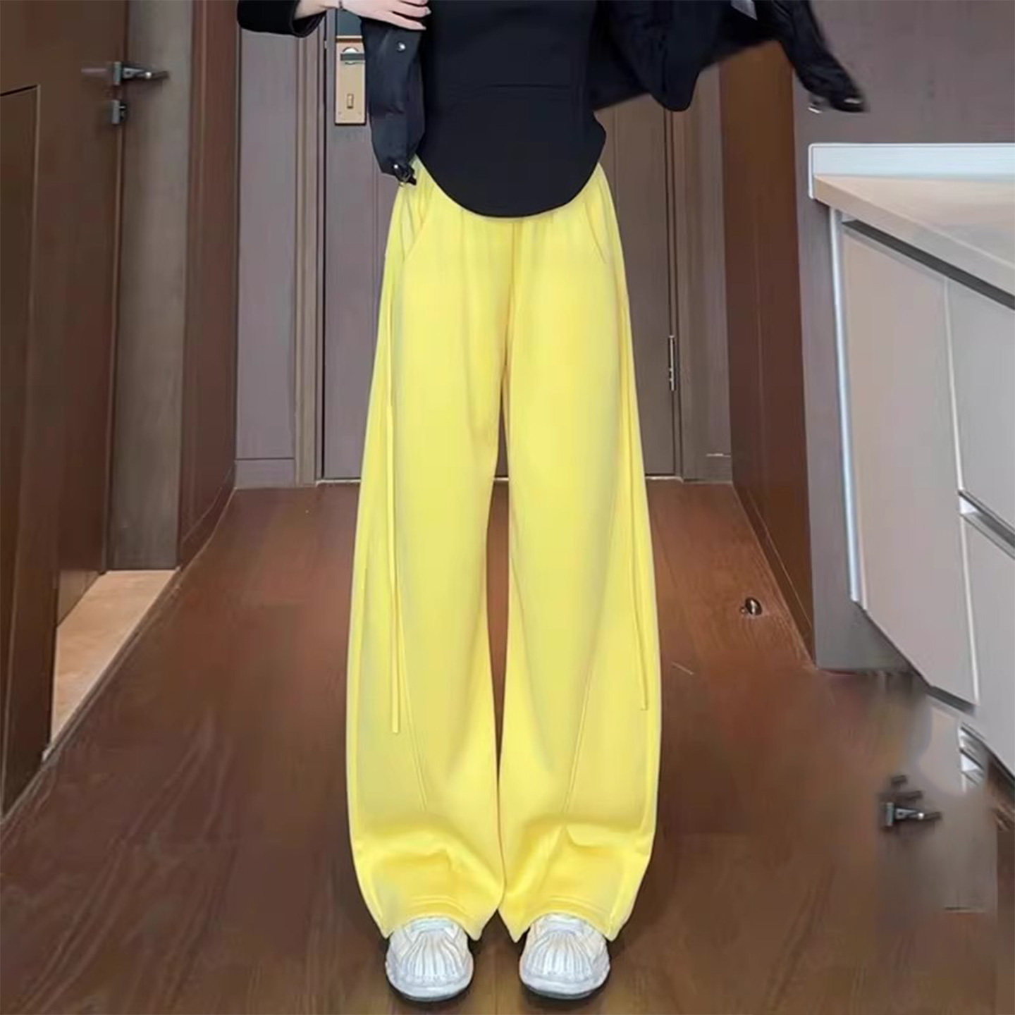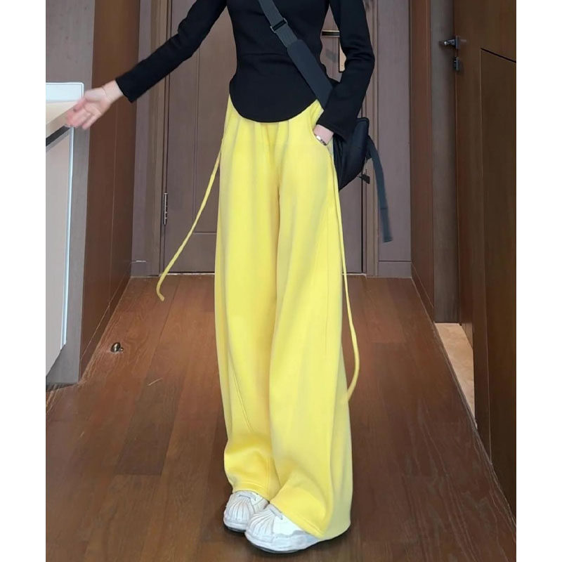 Super Popular Yellow Casual Sports Pants for Women, Spring 2026 New Style, Plus Size, High-Waisted, Slimming, Wide-Leg Banana Pants