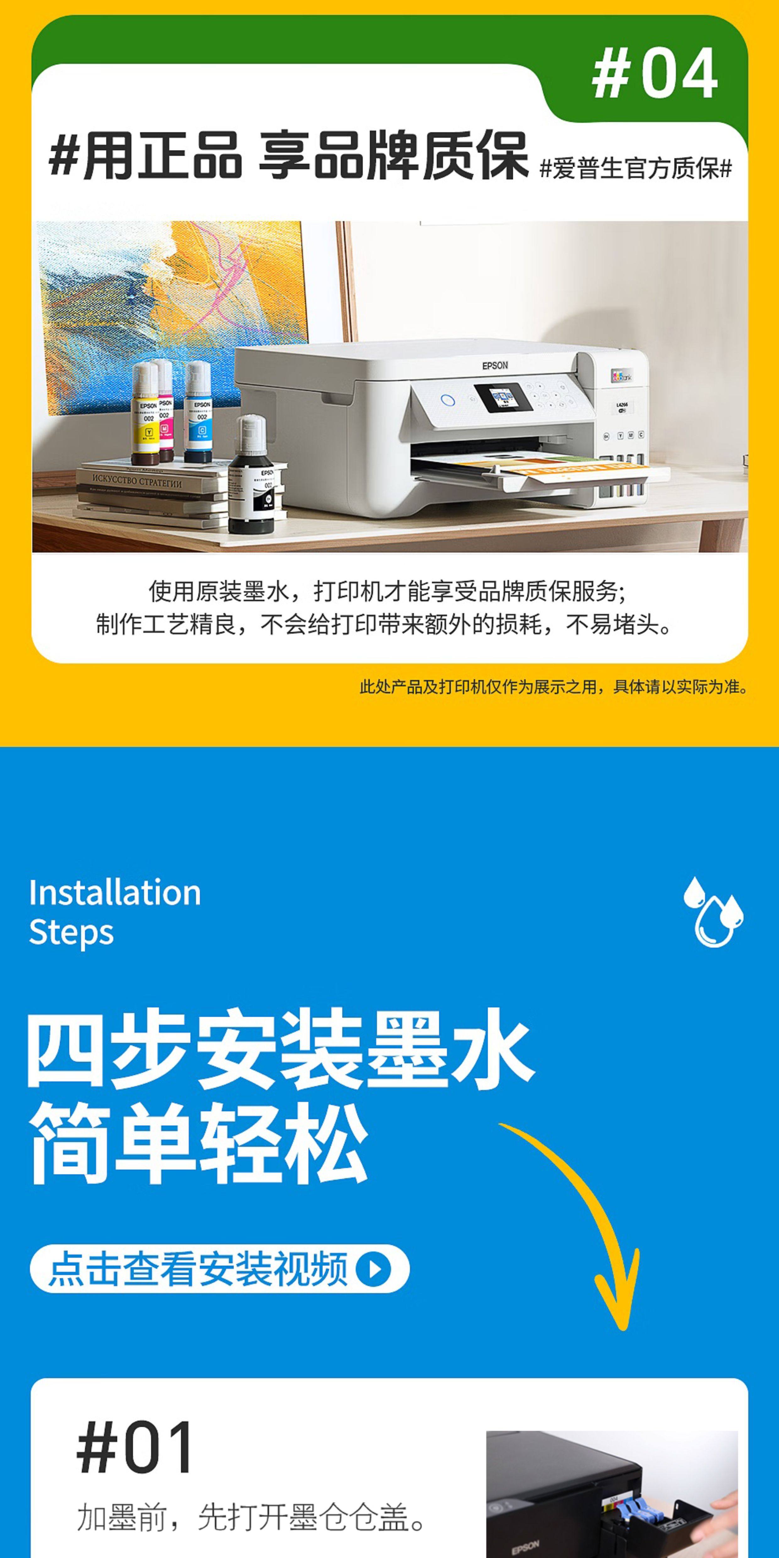 Epson 004 Original Ink Is Suitable for Models L3258L3251L3218L3219L3158L3169L3558