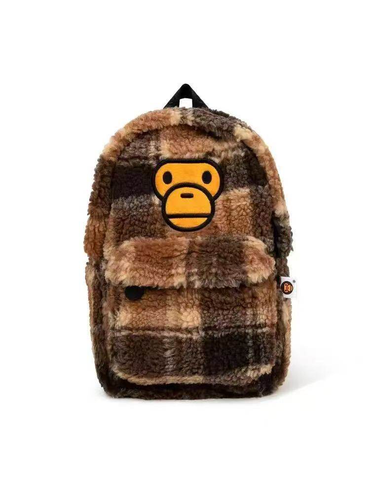 Plaid Cartoon Monkey Bag Autumn and Winter Plush Casual Travel Outing Student Backpack School Bag
