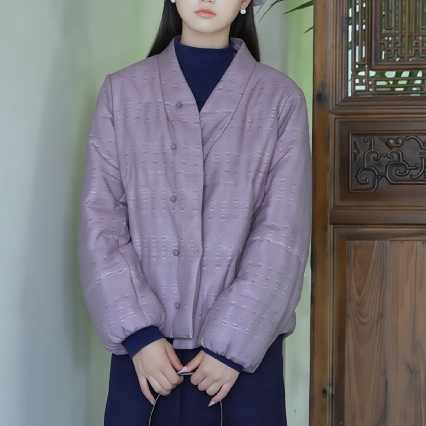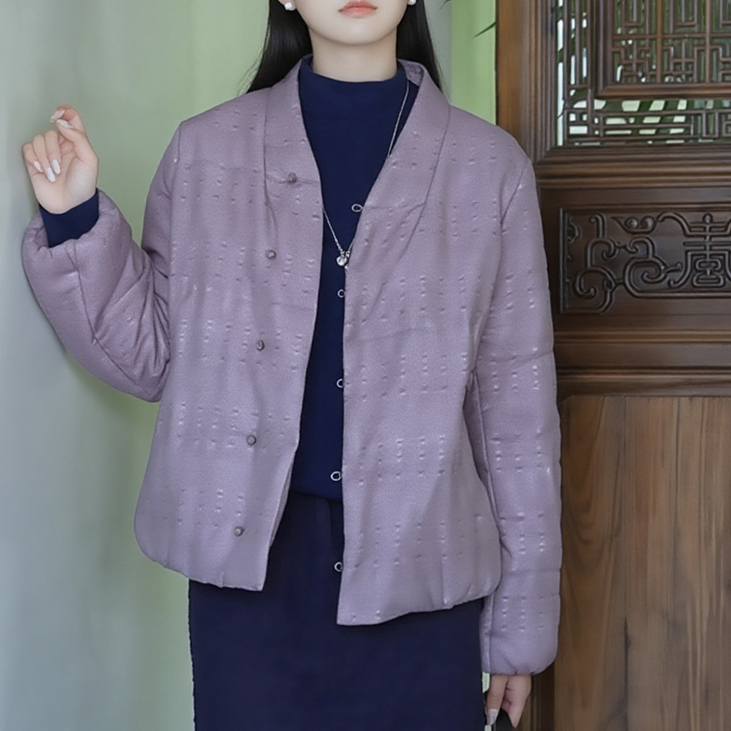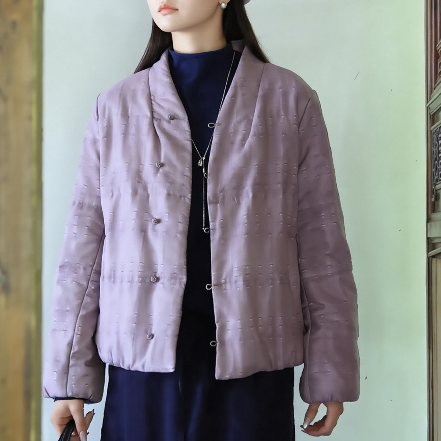 New Chinese style button-down cotton coat, large size women's clothing for fat MM, 2026 spring new stand-up collar, long-sleeved purple loose cotton coat
