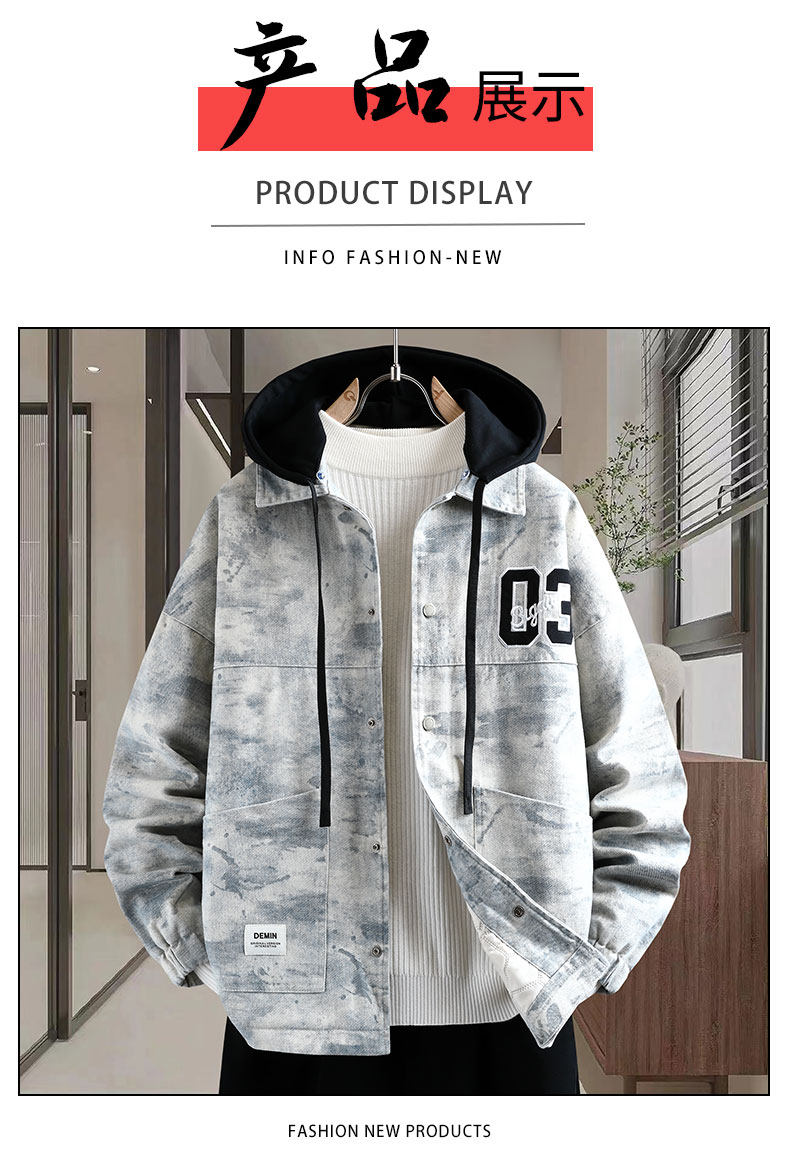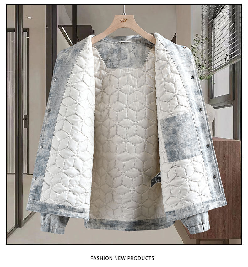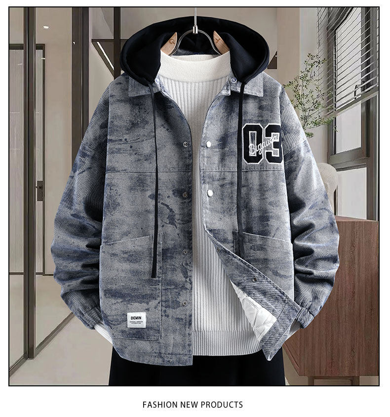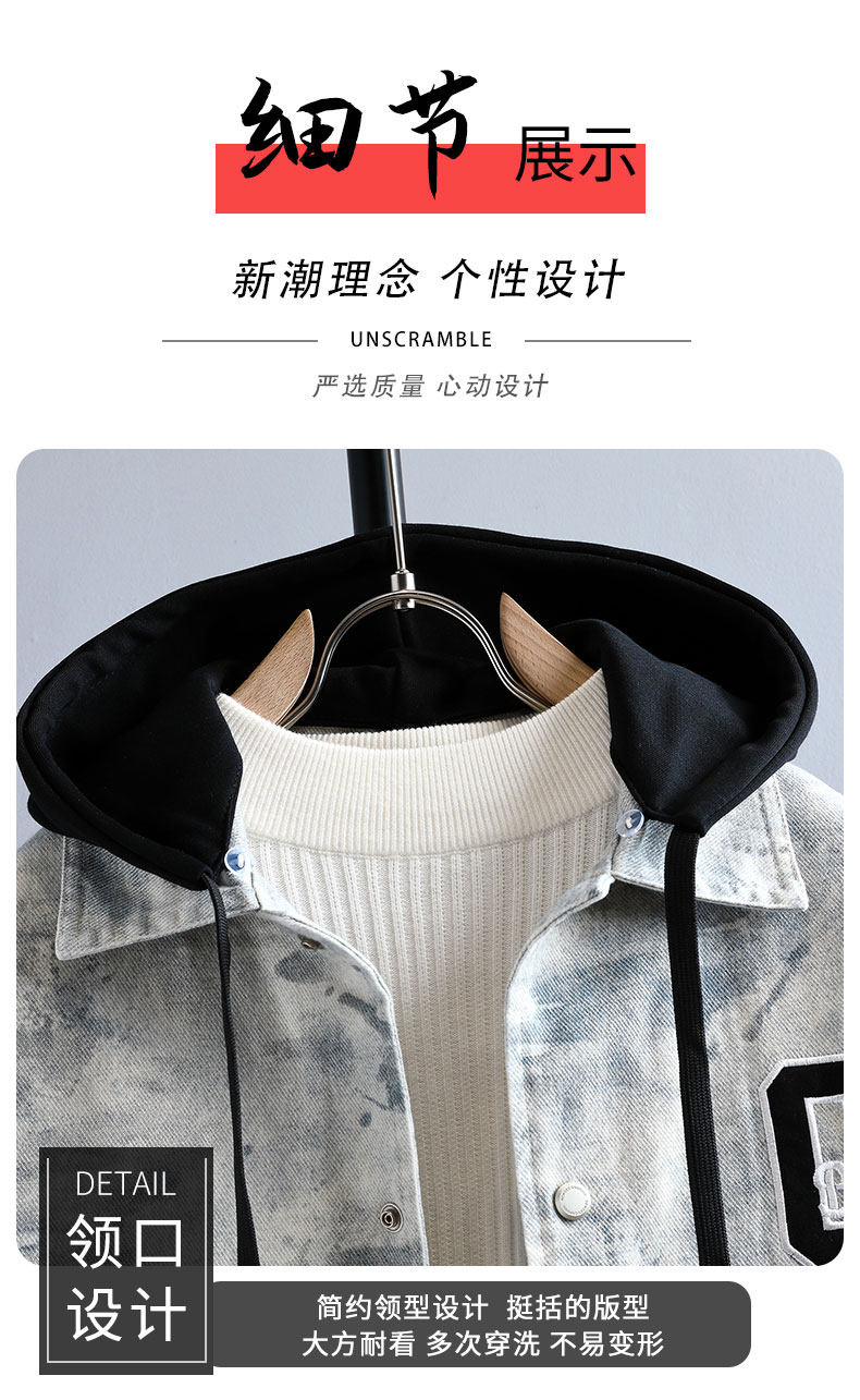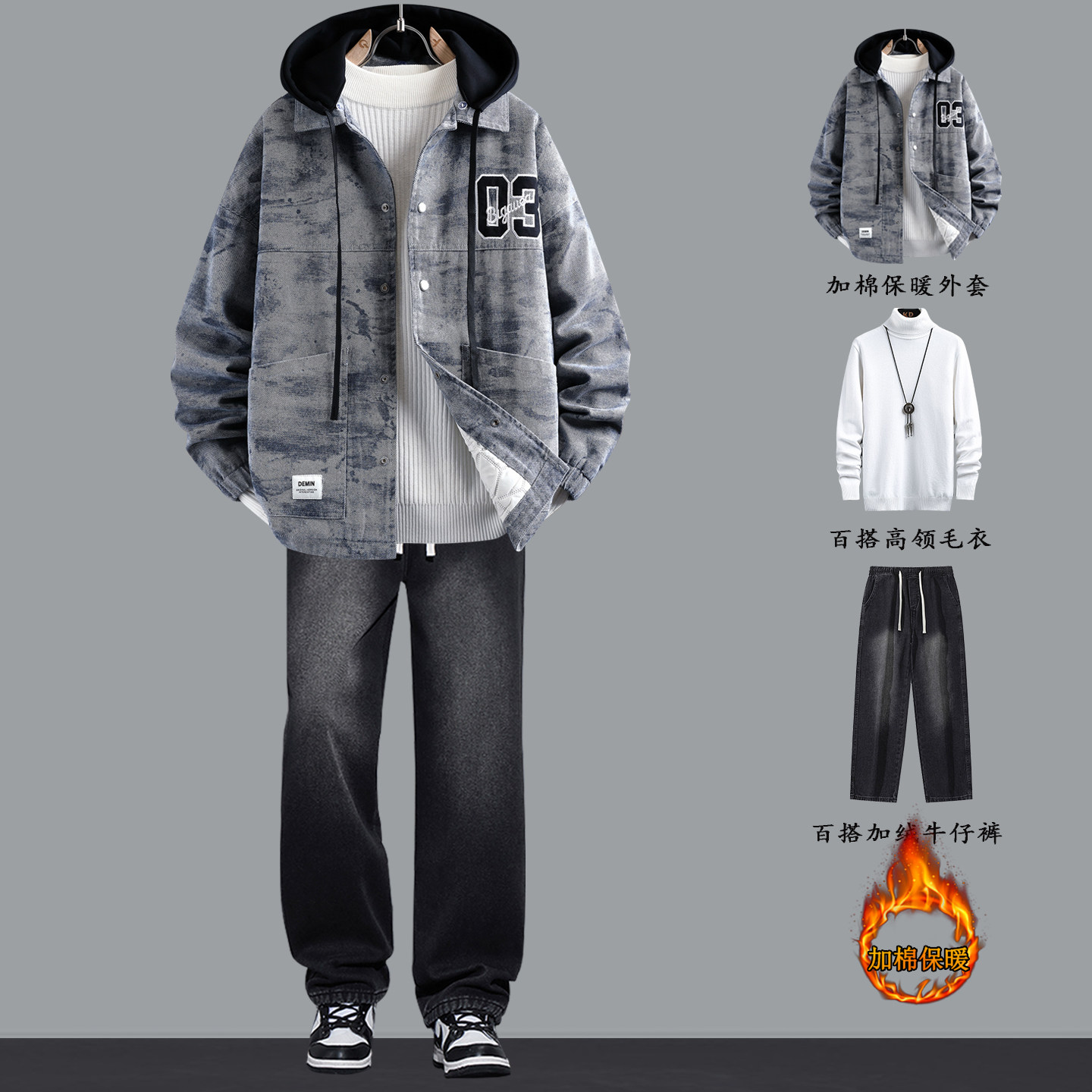 Teenagers' autumn and winter jackets, thickened denim jackets, boys' junior and high school students' trendy matching suits, handsome cotton clothes